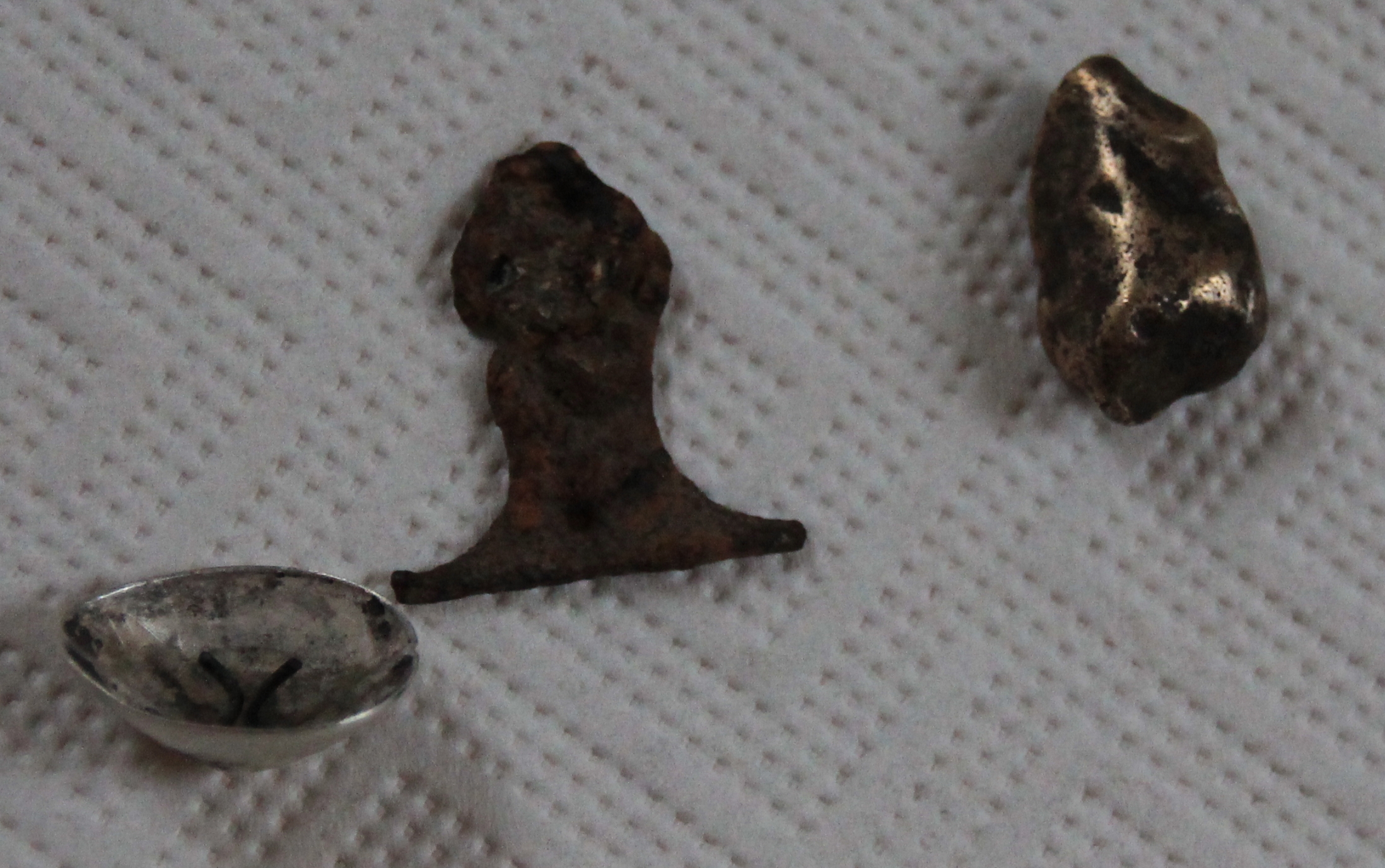 Klumpen: Nicht magnetisch, glänzt nachdem er gereinigt wurde. Extrem schwer. Heißt aber nichts, ich weiß...