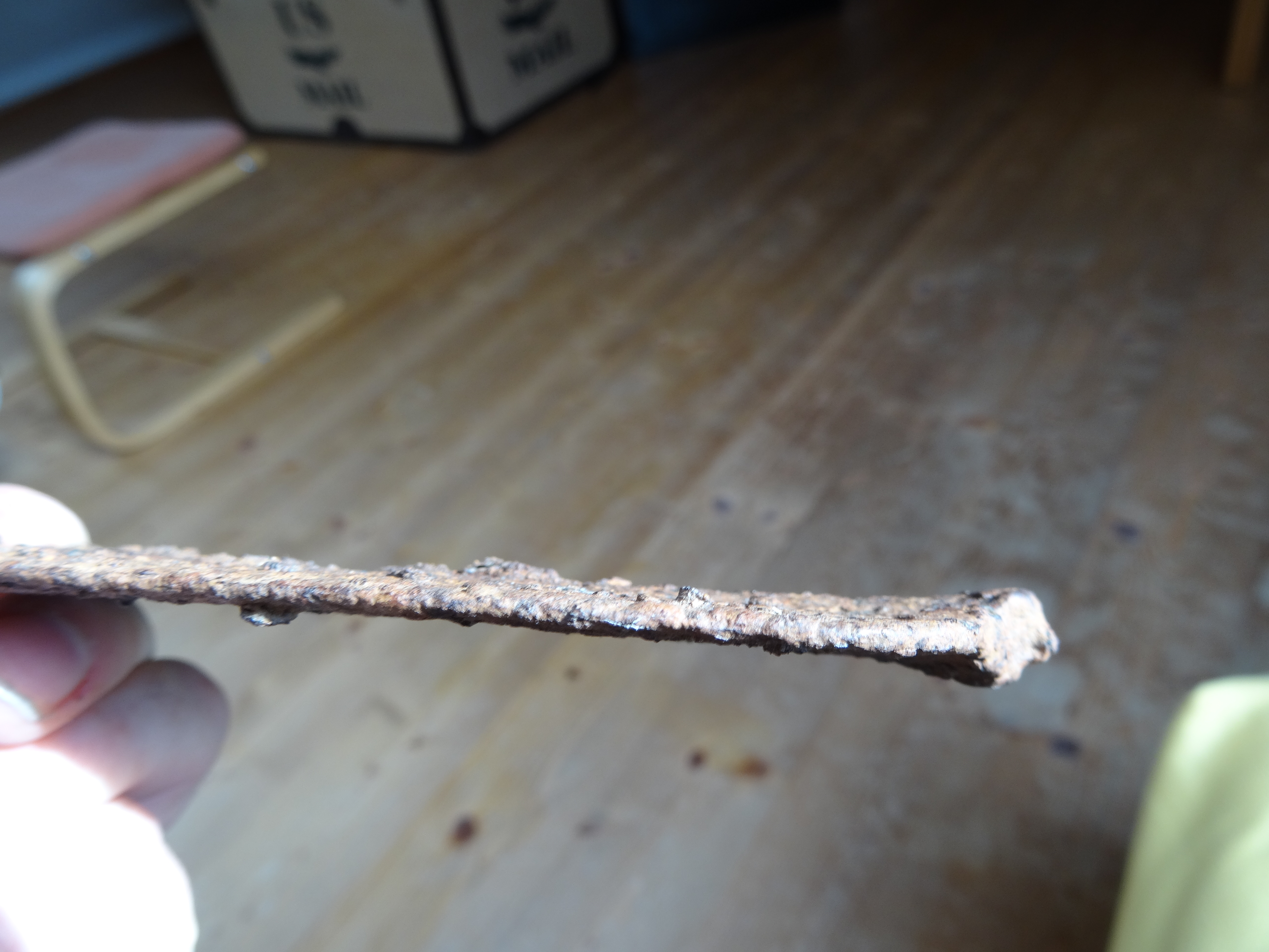 Mittig ist´s das Blatt etwas dicker rund 3mm, an den Rändern etwas dünner ca. 2mm so gut wie man das mit den Rostbläschen eben messen kann