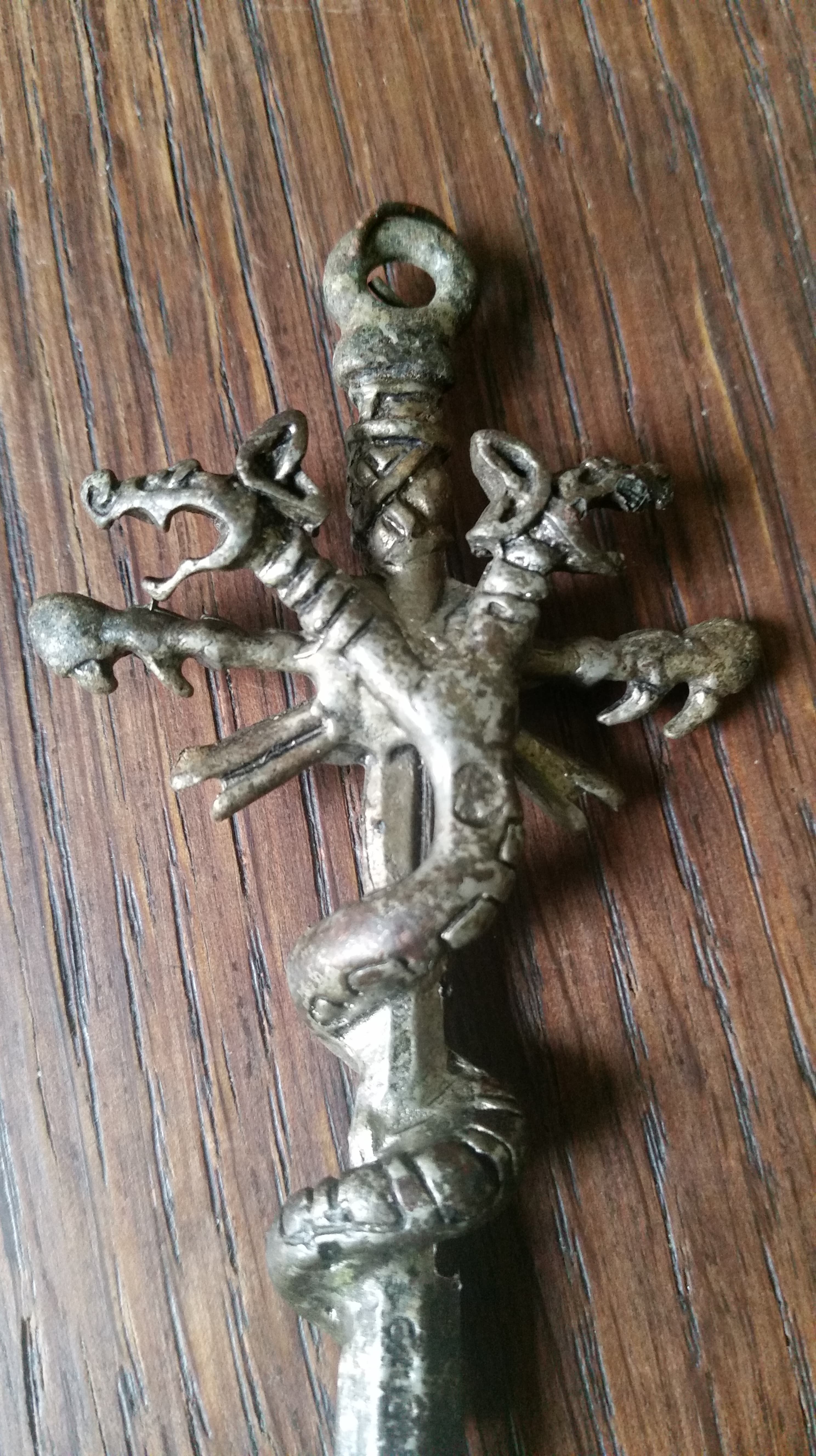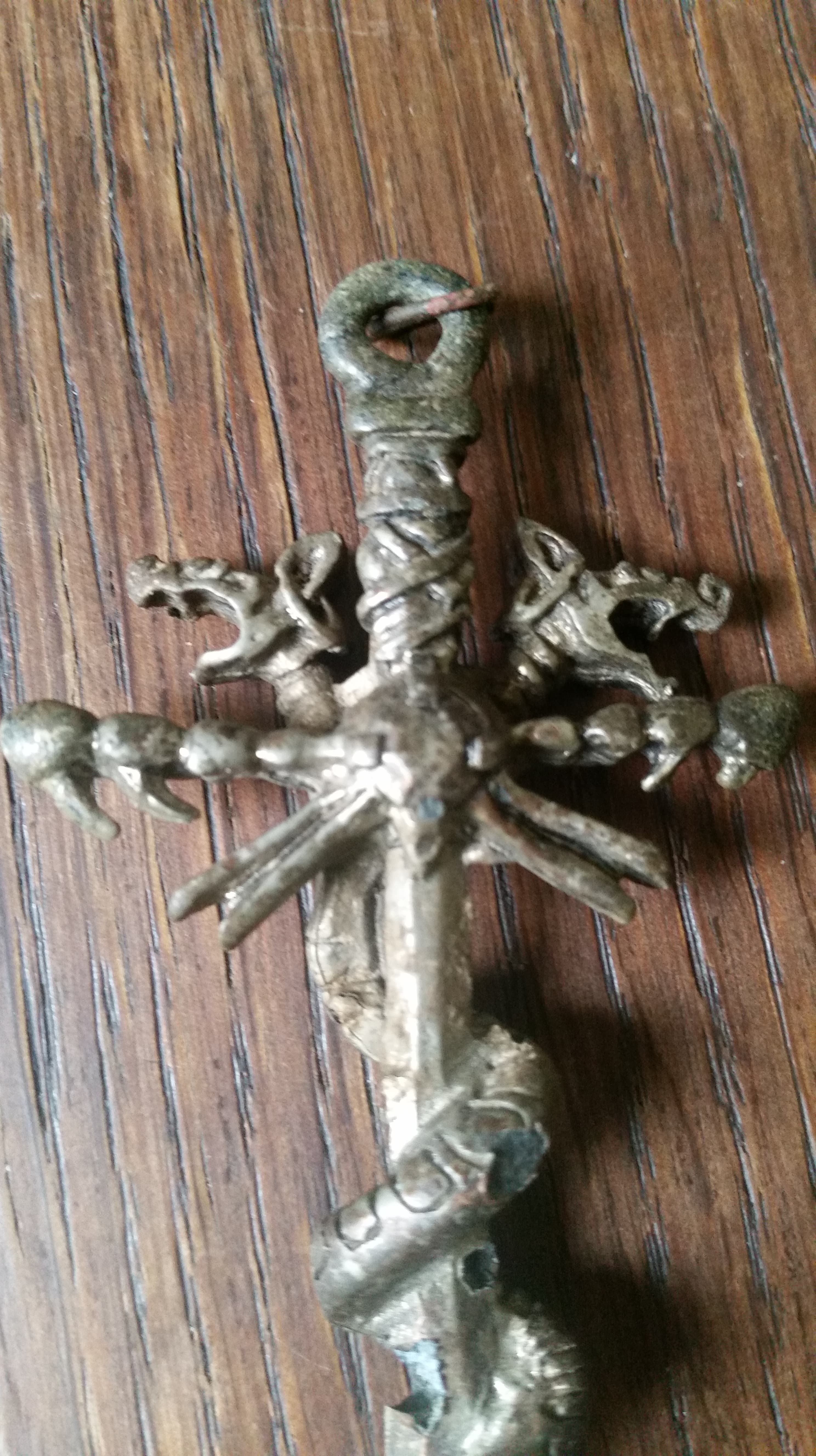 ich bin absoluter Sondel-Anfänger und habe gestern mit meinem Freund zusammen einen großen Anhänger in Form eines Kreuzes mit zwei sich windenden Schlangen/Drachenköpfen im Wald gefunden.