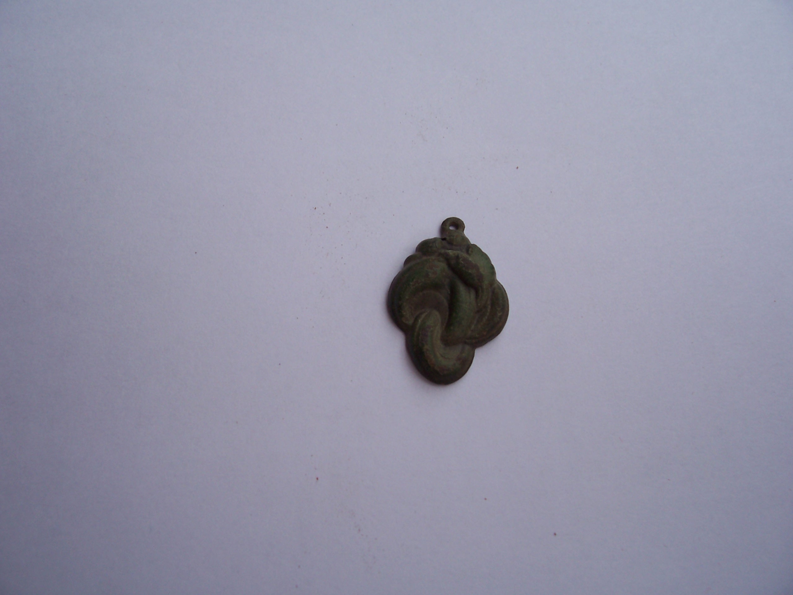 dürfte innen hohl sein und auf der Rückseite angelötete Drahtbügelhalterung oder deren Reste, an der Öse hing an kurzer Kette meist kleiner "Bommel" u an sich ist das Ganze Ohrring gewesen :winken: