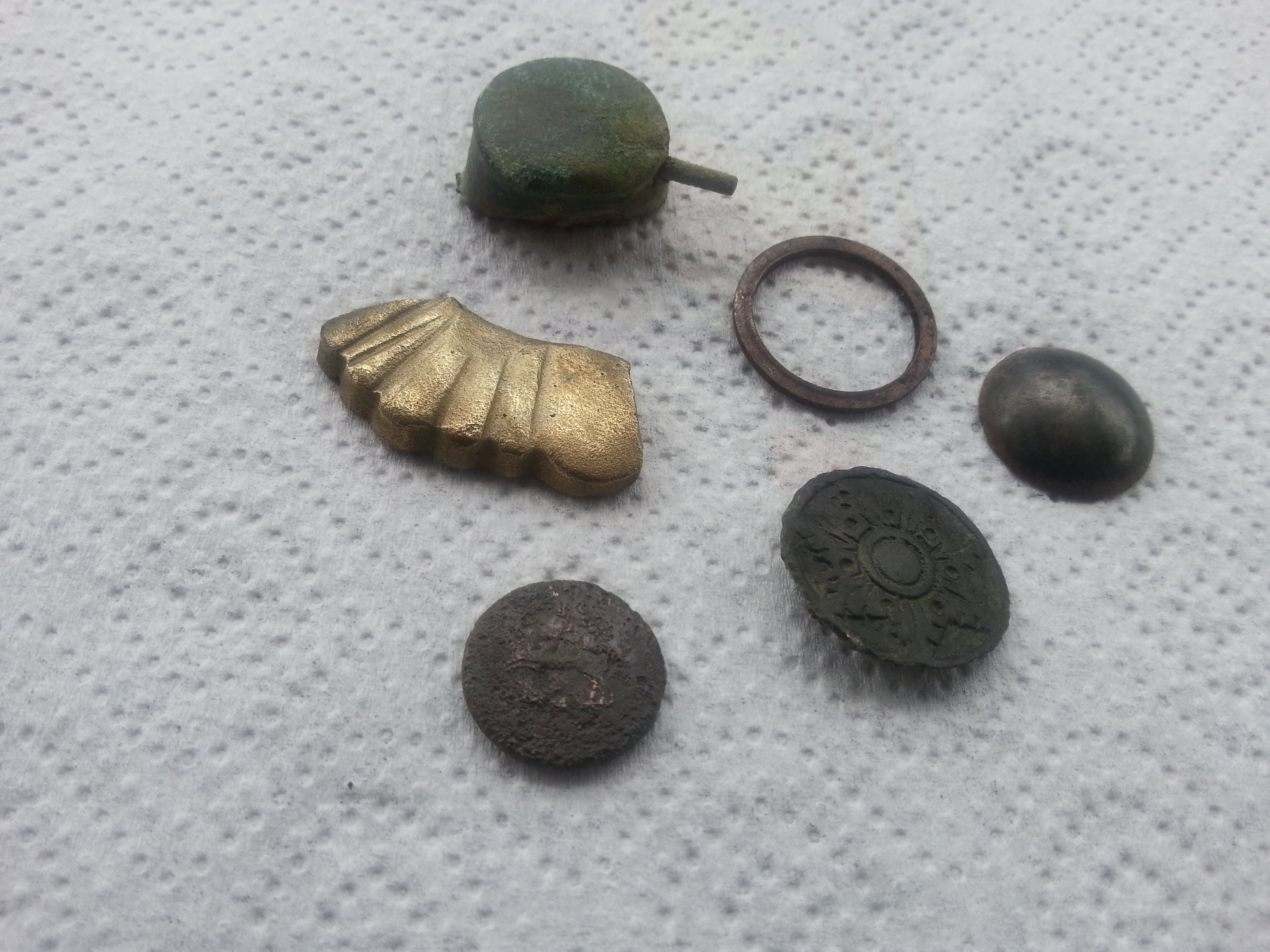 Die Knöpfe und ein unbekanntes Bruchstück habe ich eingestellt, ebenso den Rest einer Zündnadelpatrone.