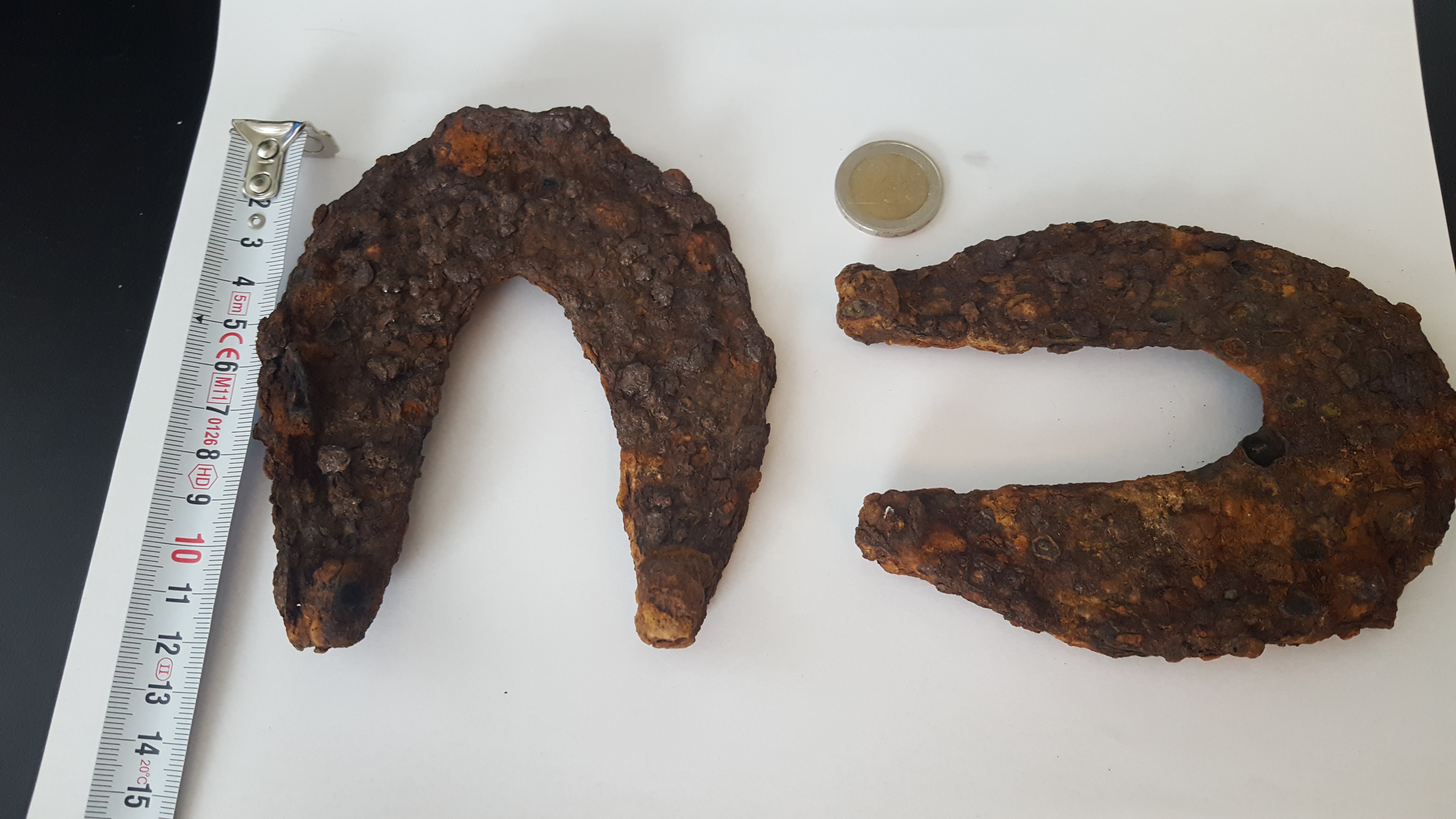 Hier das"Beweisfoto" :) Könnte mir vorstellen, dass es sich dabei um Hufeisen eines Ochsen handelt oder gar um ein araber Pferd, welche z.B zu Napoleons Zeiten voll in Mode waren..?! ;)