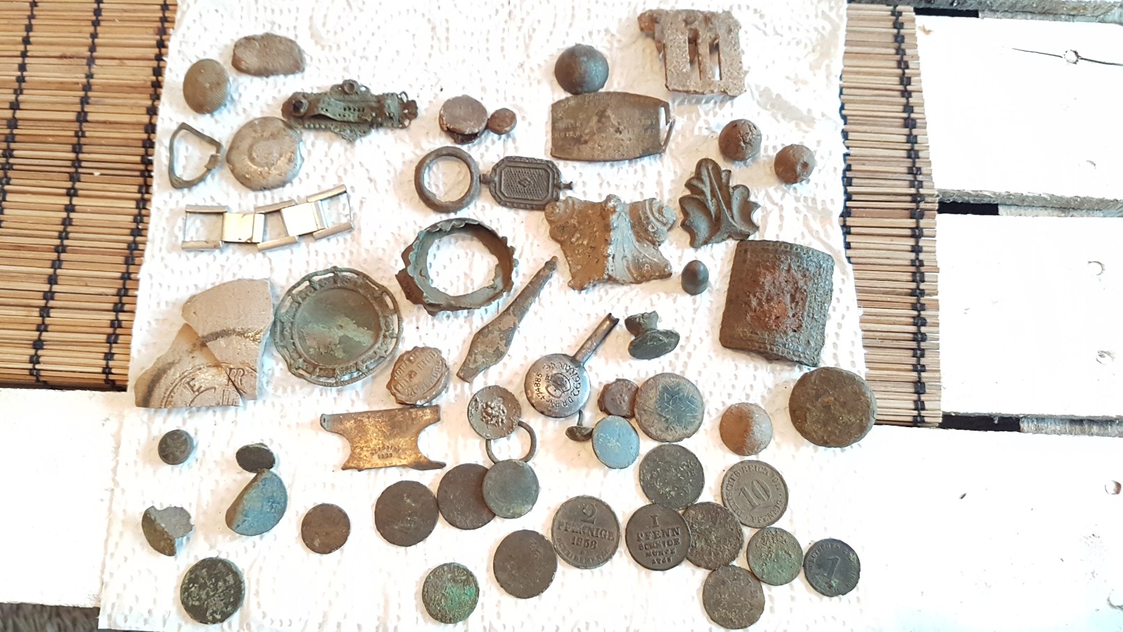 Neben vielen Muenzen und Knoepfen auch diese Funde. Ne Art Brosche mit Stein is mein Highlight diesesmal