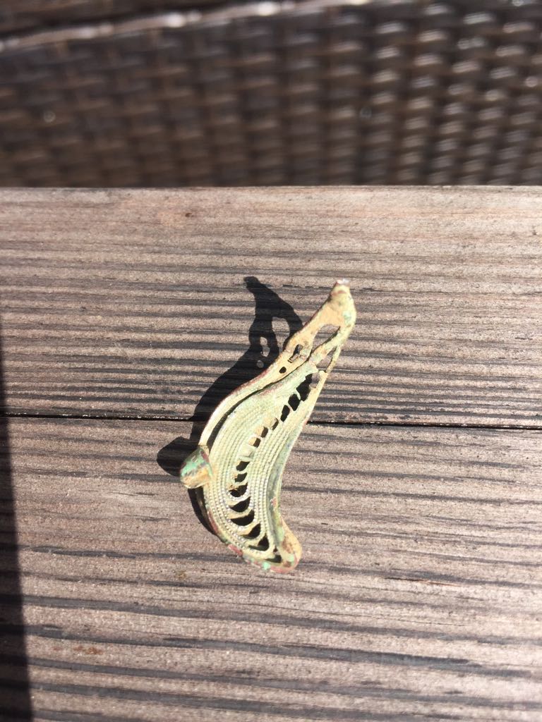 Hey ihr, hier noch mal das gute Stück, habe es vorsichtig in den Ursprung zurück gebogen, bin mir jetzt auch ziemlich sicher daß es sich um Kupfer mit einem teils abgeblatzen Goldüberzug handelt. Von der Öse zu Urteilen eine Kette, das Symbol sagt mir nichts, vl. Federn oder Flügel?! Fakt ist es lässt mir keine Ruhe ich habe nun schon Stunden mit der Recherche verbracht und nichts brauchbares gefunden.