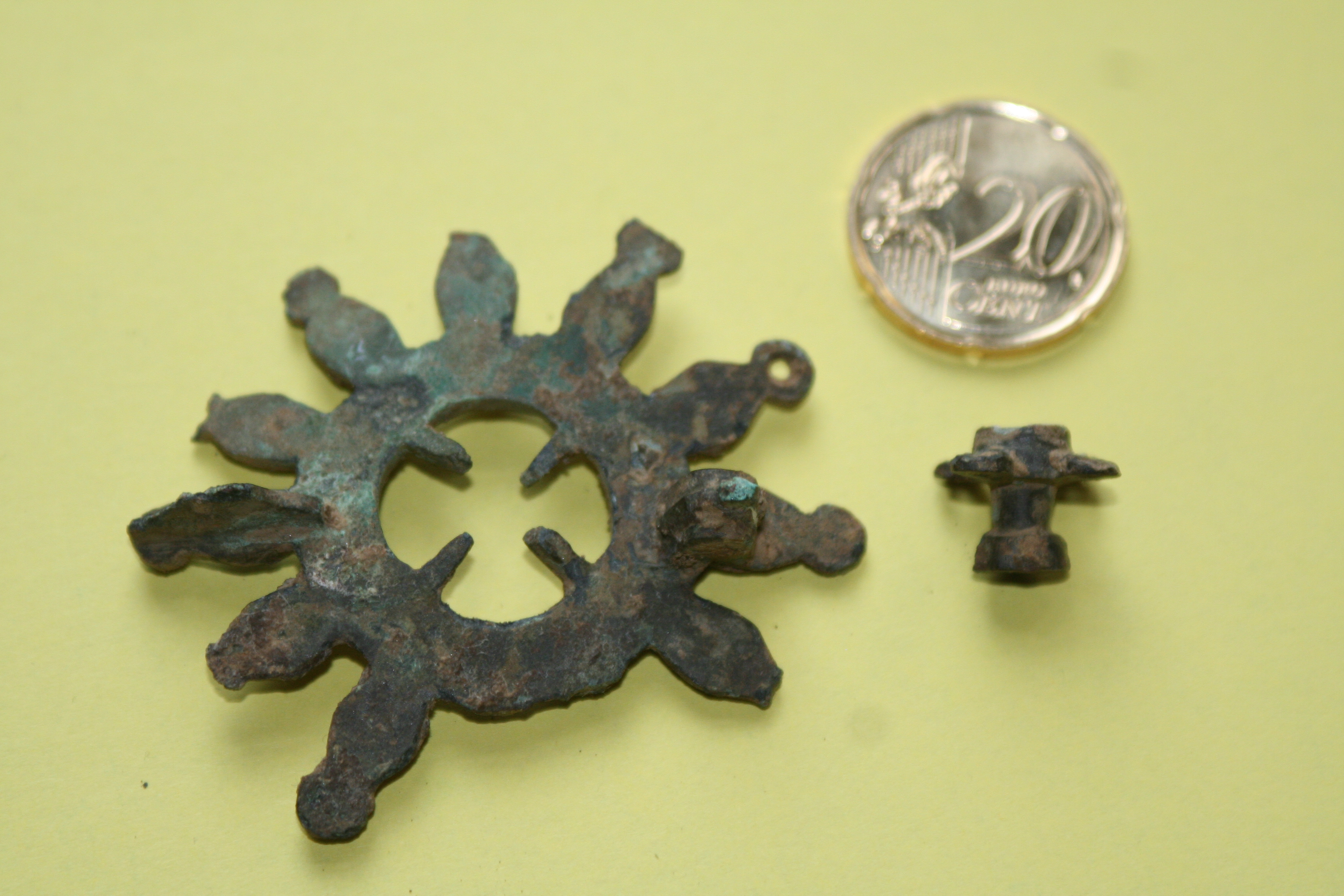 Gefunden habe ich diese Fibel östlich des Städtchens Margate in der Grafschaft Kent (GB) nicht sehr weit vom Kärmelkanal entfernt auf dem Feld eines befreundeten Grundbesitzer. Der zuständige Archäologe datierte diese römische Scheibenfibel auf das 1. JH.