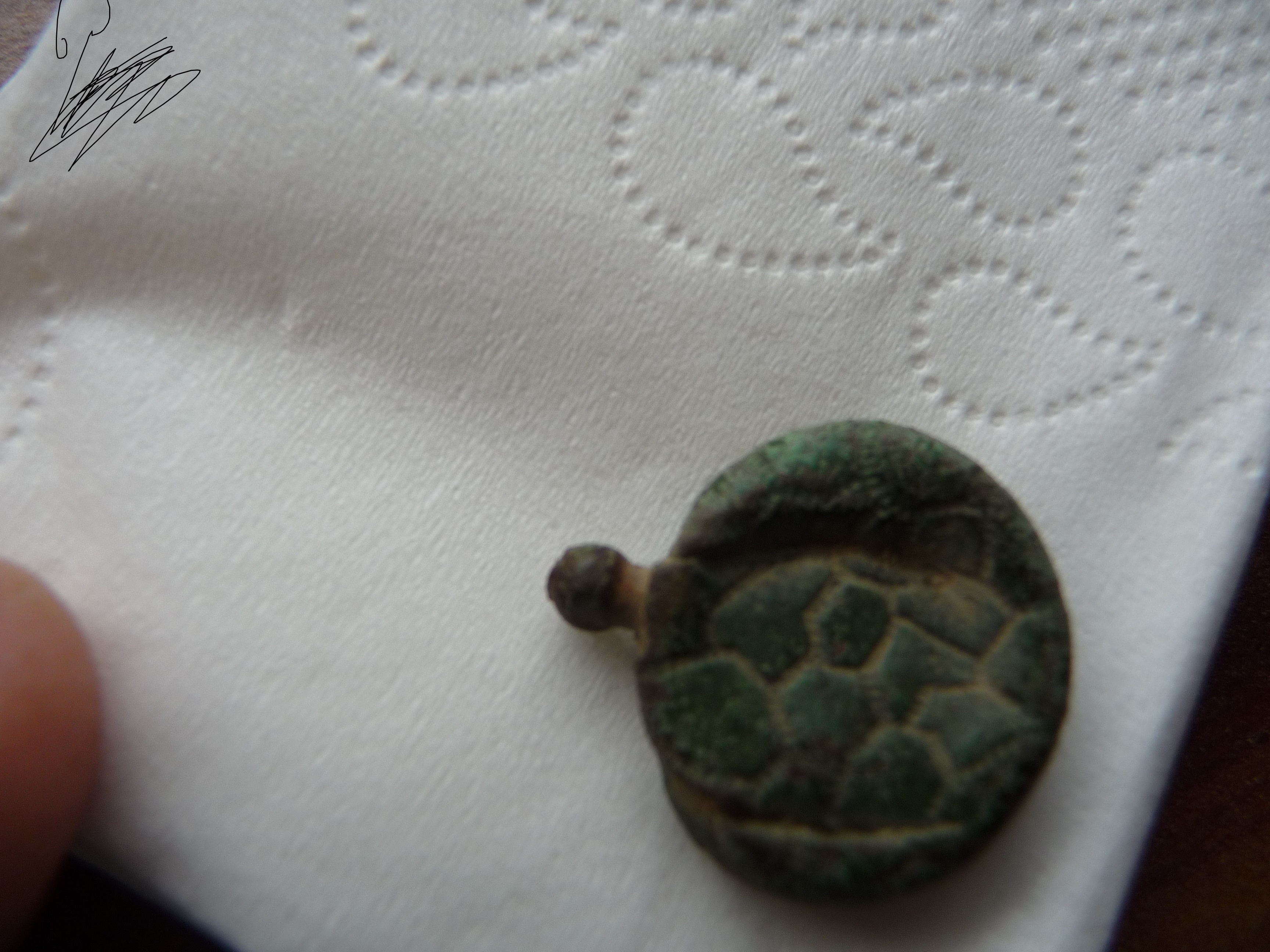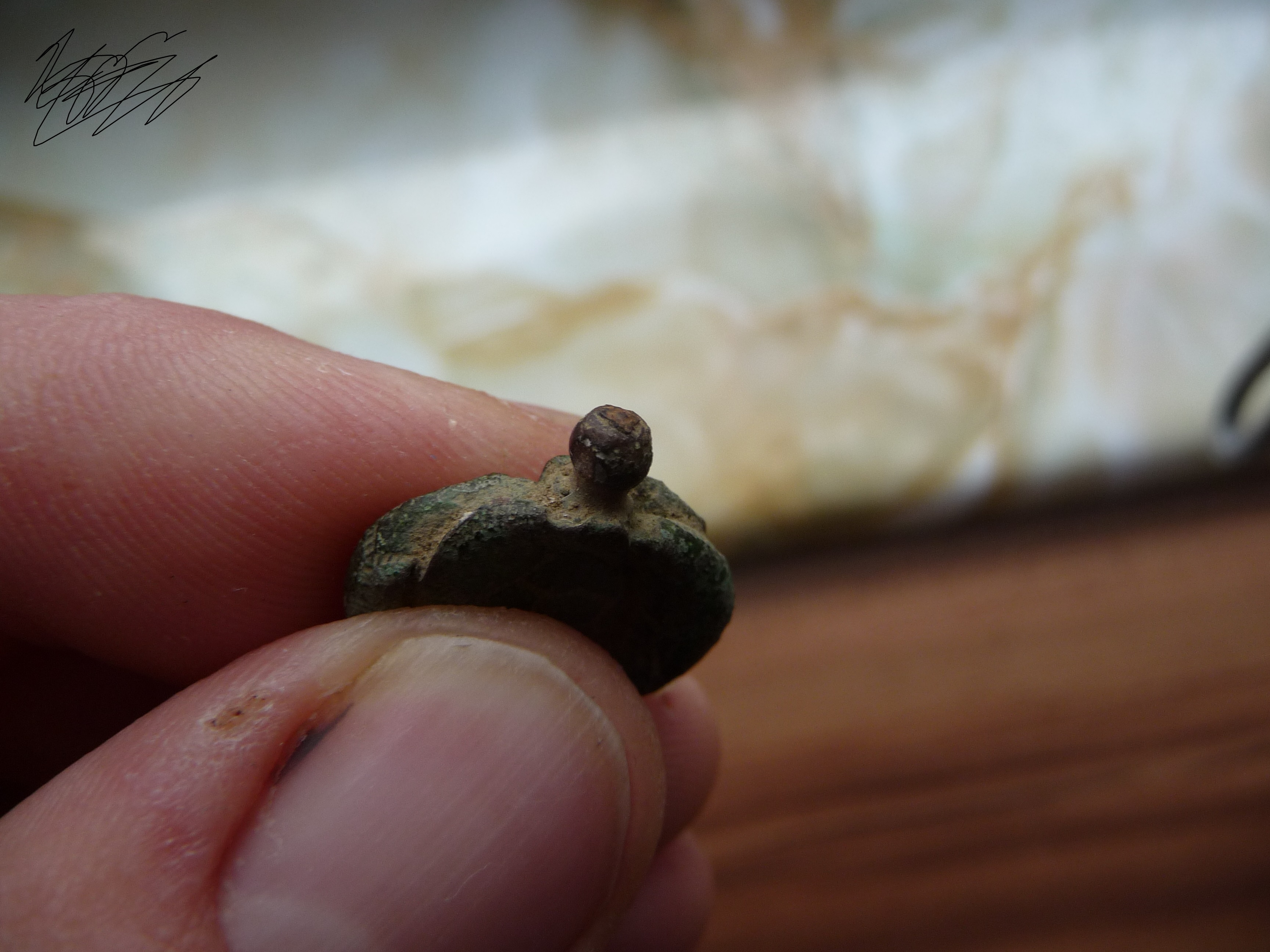 Denke auch eventuell das es ne Art Anhänger/ Medaillon ist. Er war ganz schön grün angelaufen. Ist aber durch das einlegen weggegangen großteils.