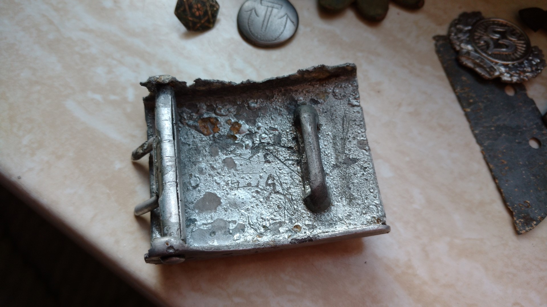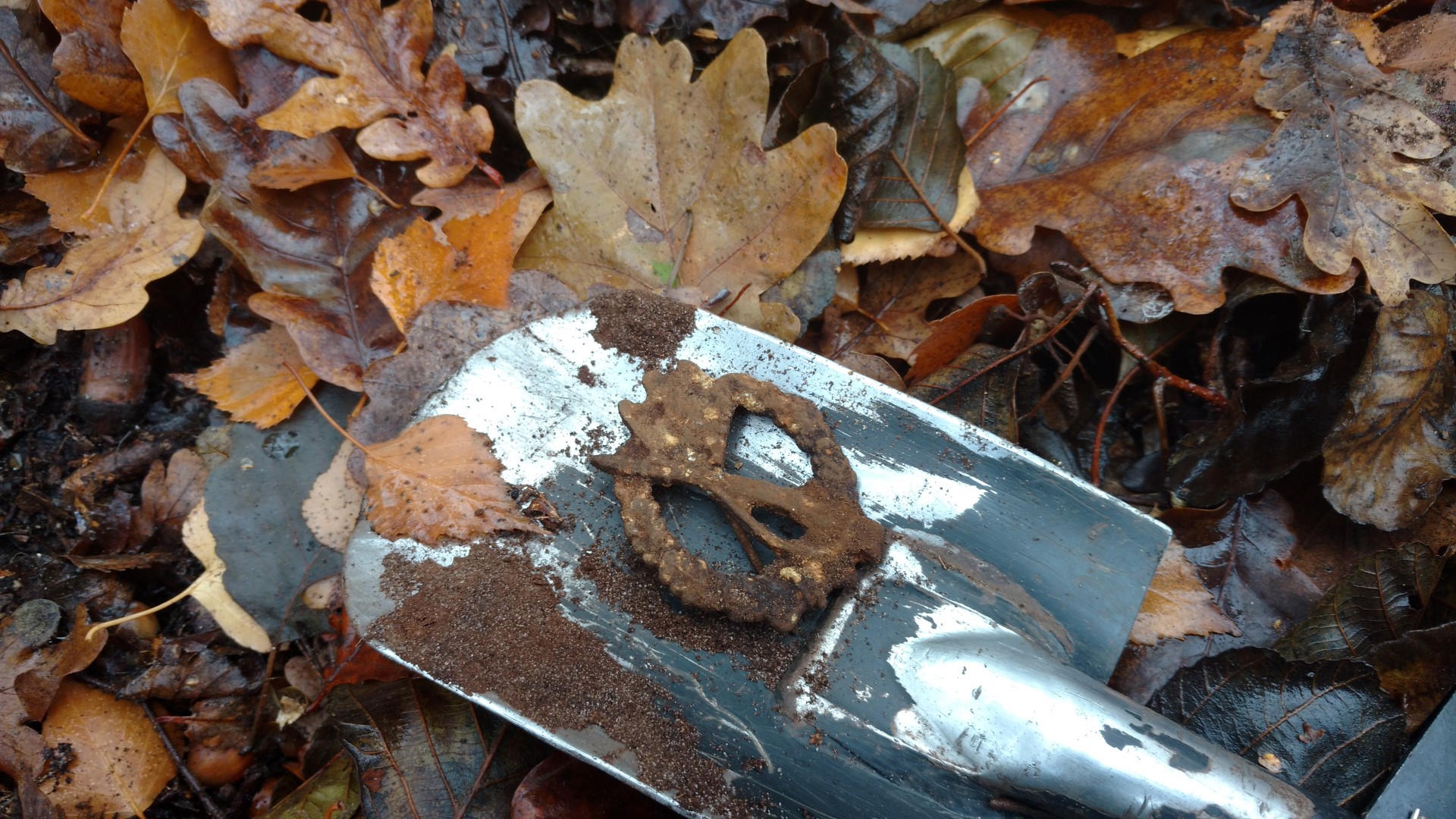 Auf dem Rückweg, bin ich dann nochmal zu der Stelle, von der ich glaubte sie komplett abgesucht zu haben und nen Schritt von meinem letzten Loch entfernt, kam dann tatsächlich noch ein Koppelschloss, wieder samt Lederriemen.