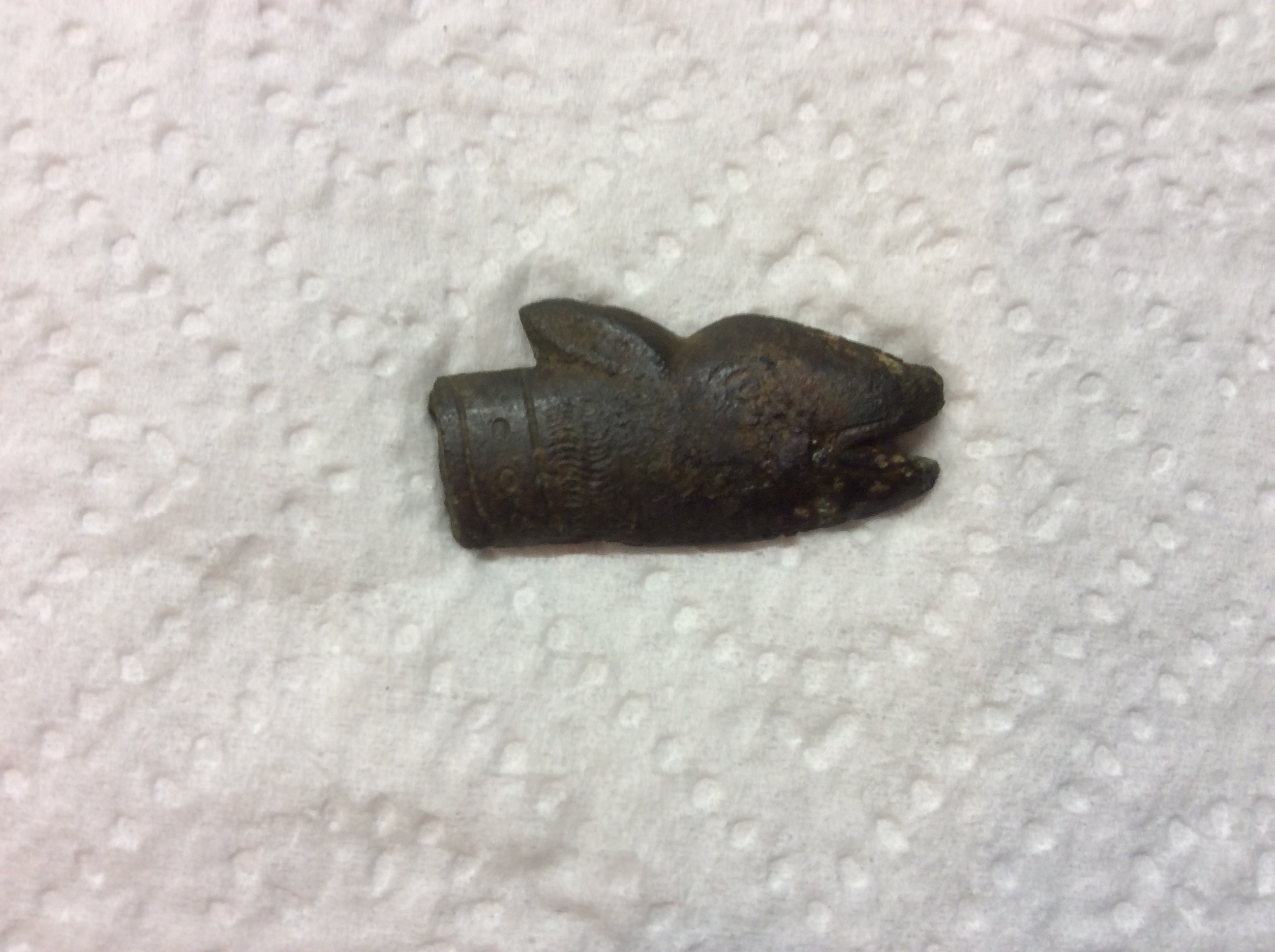 Das ausgehöhlte Dings ist aus dem selben Material wie all meine (insgesamt etwa 50) Musketenkugeln, welche ich in den letzten 2 Saisonen aus dem Wienerwald geholt habe --> ziemlich sicher BLEI