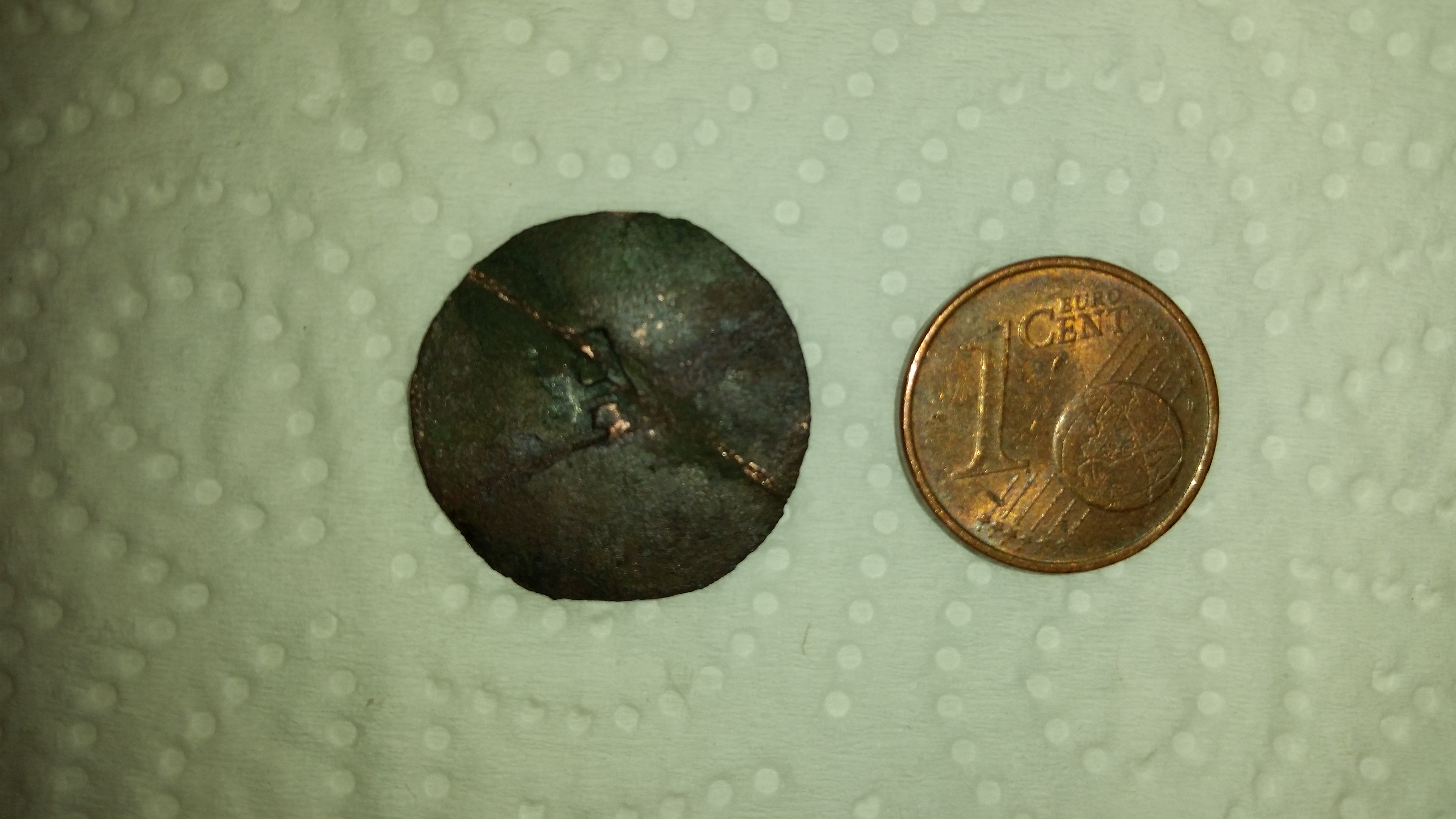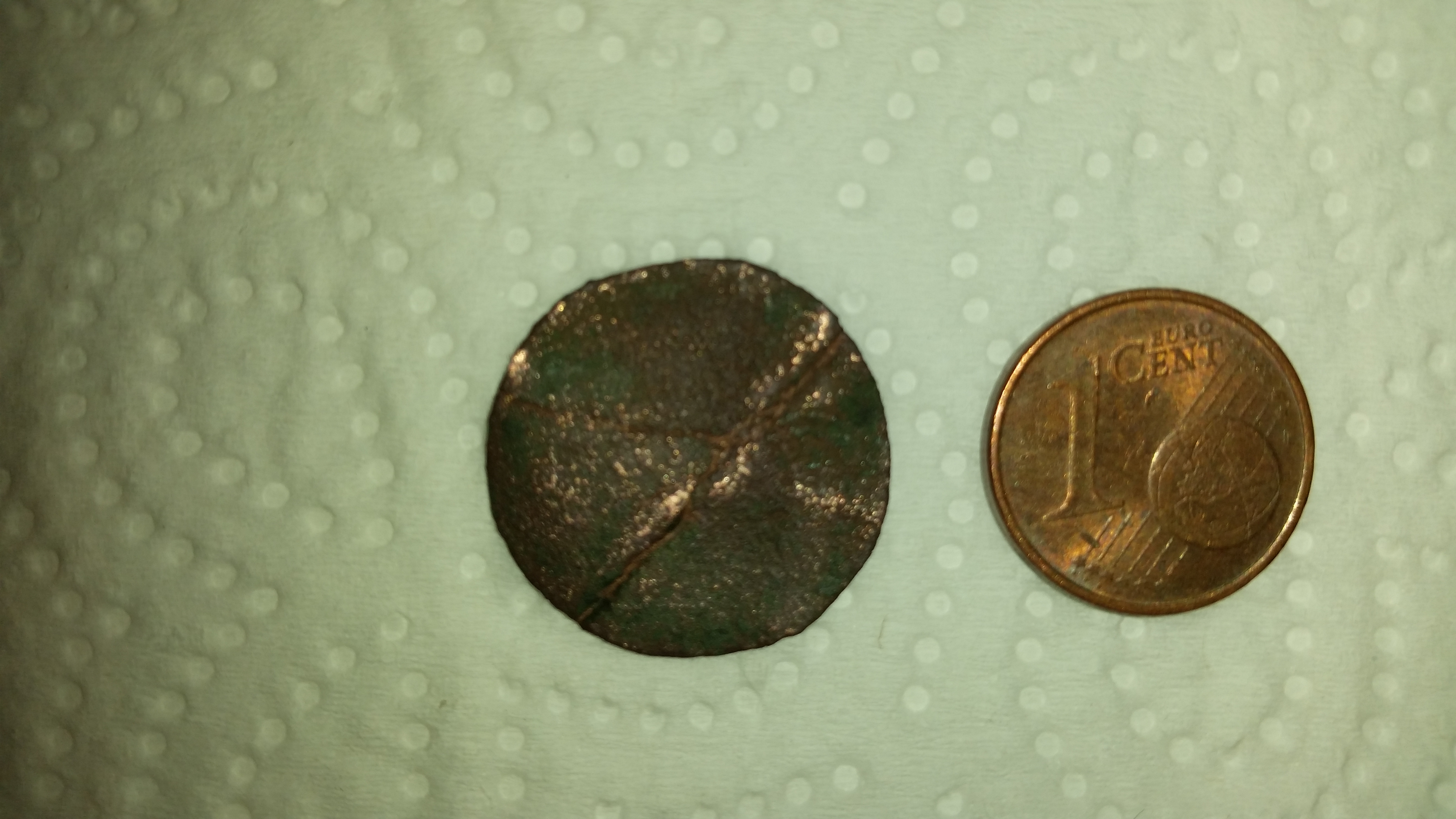 Hab heute auf dem Feld diese Scheibe aus Kupfer gefunden. Ich dachte erst es könnte sich um einen Scheidepfennig handeln. Aber nach dem reinigen konnte ich nichts darauf feststellen, außer das da ein A drauf ist.