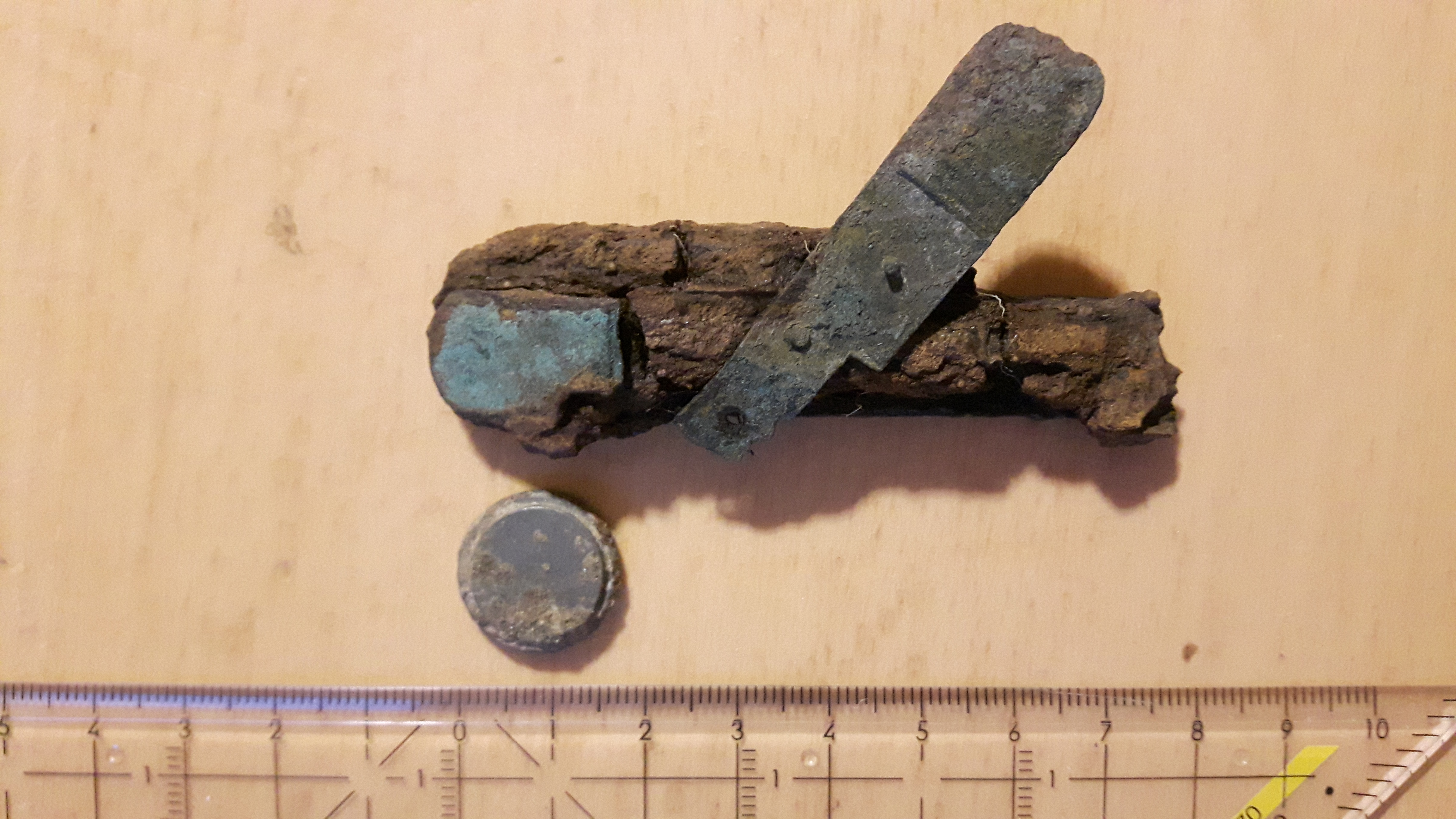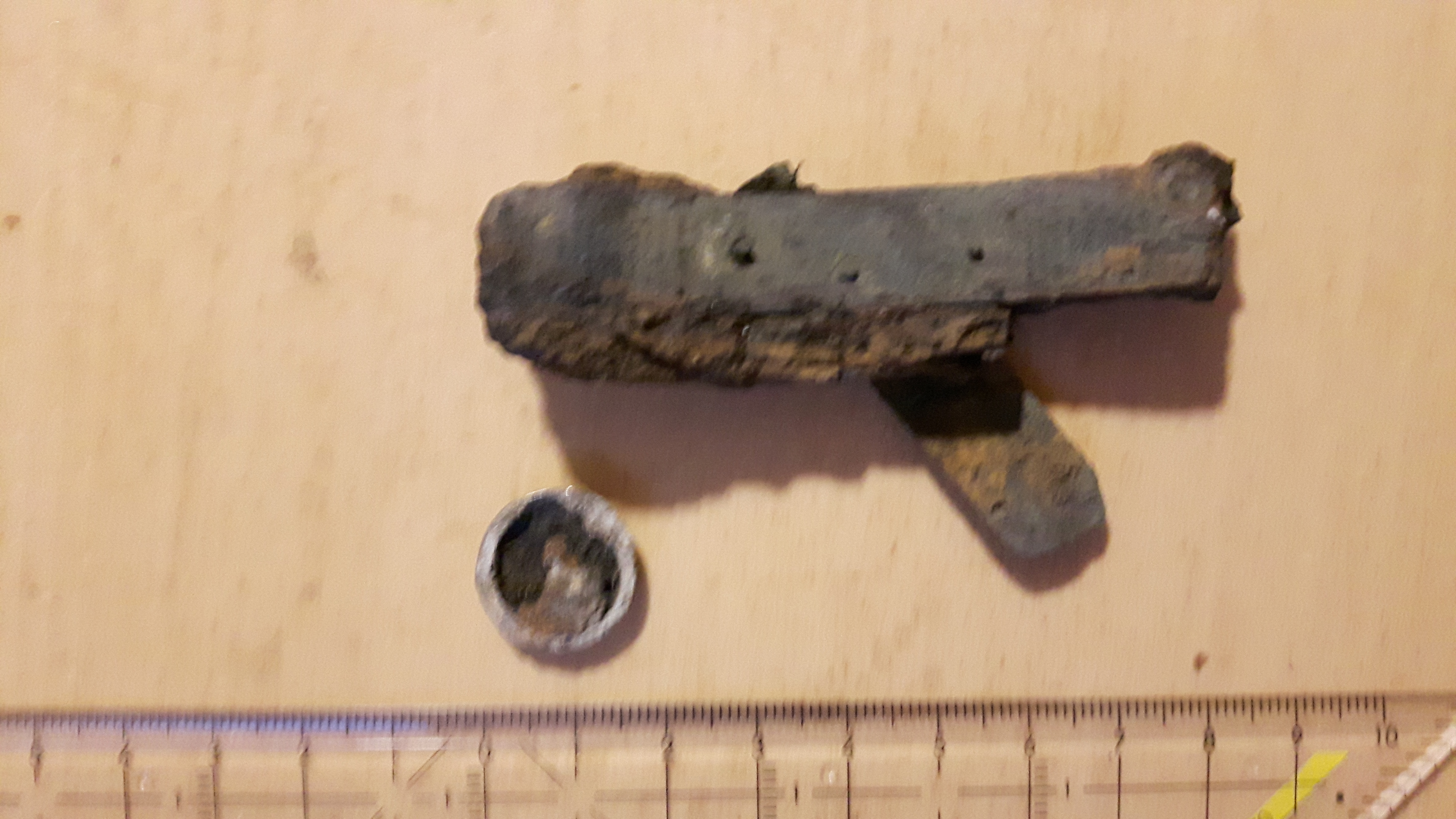 War heute wieder mal am Feld und habe zwei interessante Sachen gefunden allerdings habe ich keine Ahnung. Nur so als Anmerkung : Die Teile wurden auf einem Feld gefunden wo viele Musketenkugeln lagen also könnten sie älter sein.