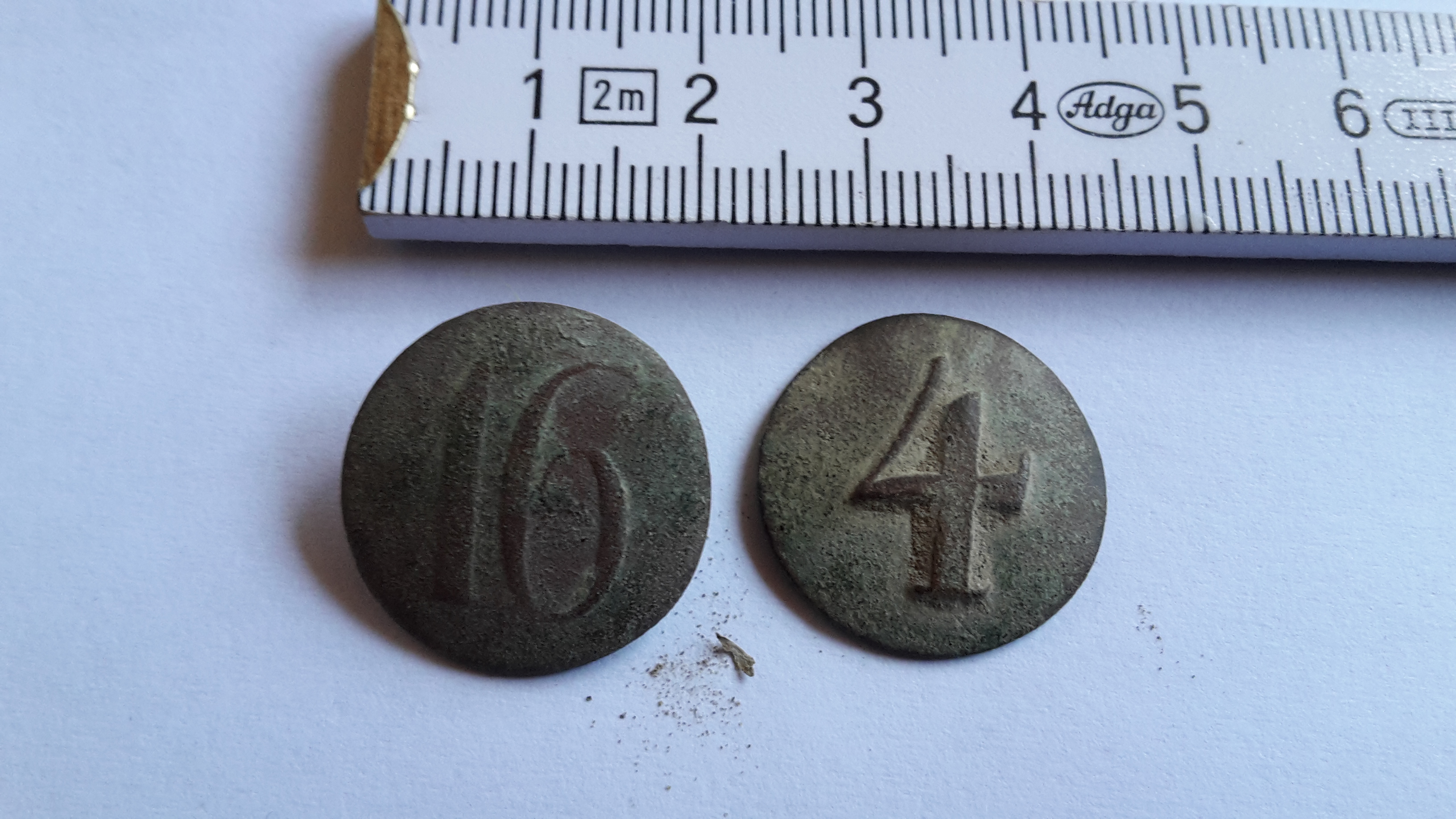 kann mir jemand was zu meinen Funden sagen...? Alle 4 Funde am Rand eines Feldes... sind die Zahlen auf den Knöpfen Regimentszahlen...?
