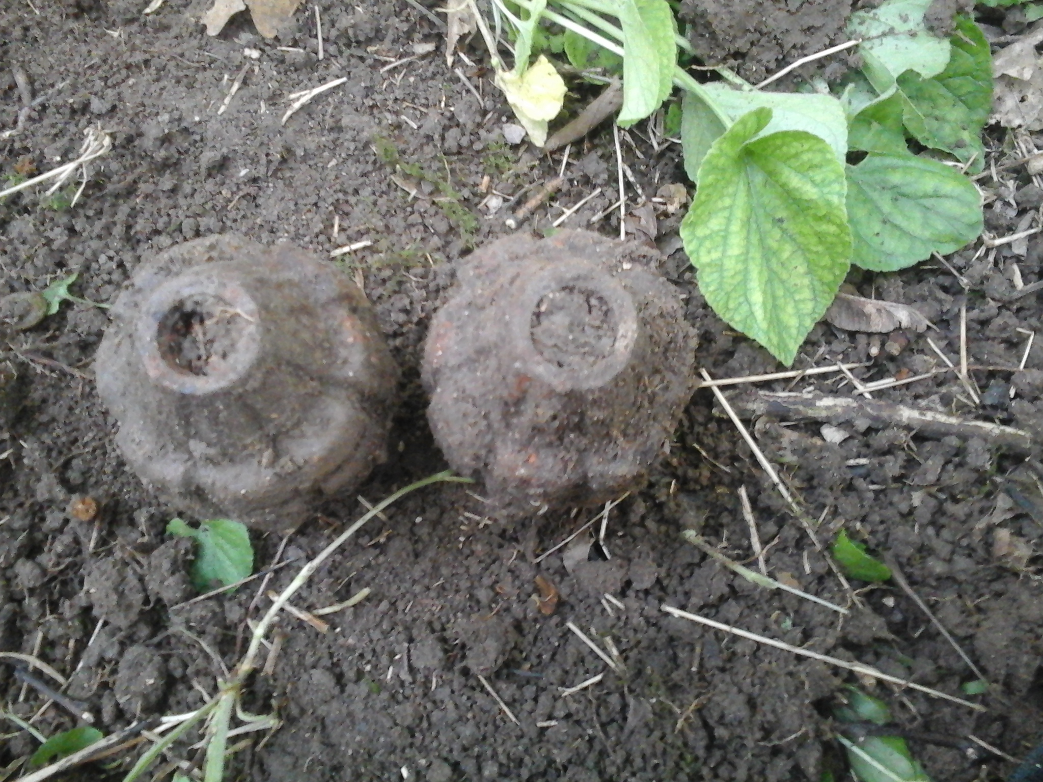 Vermutlich Mörsergranaten und zwei nicht gefüllte Handgranaten...