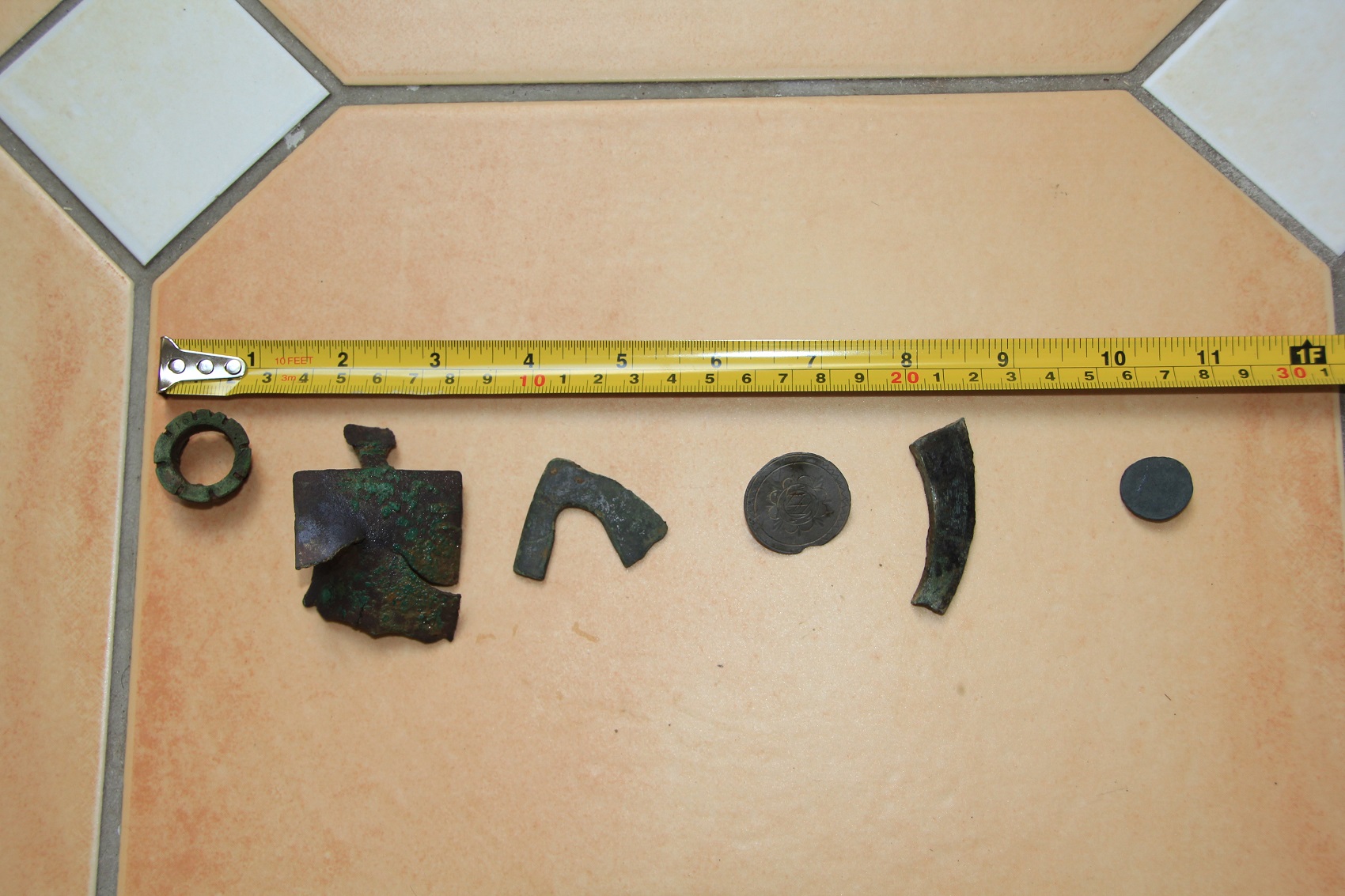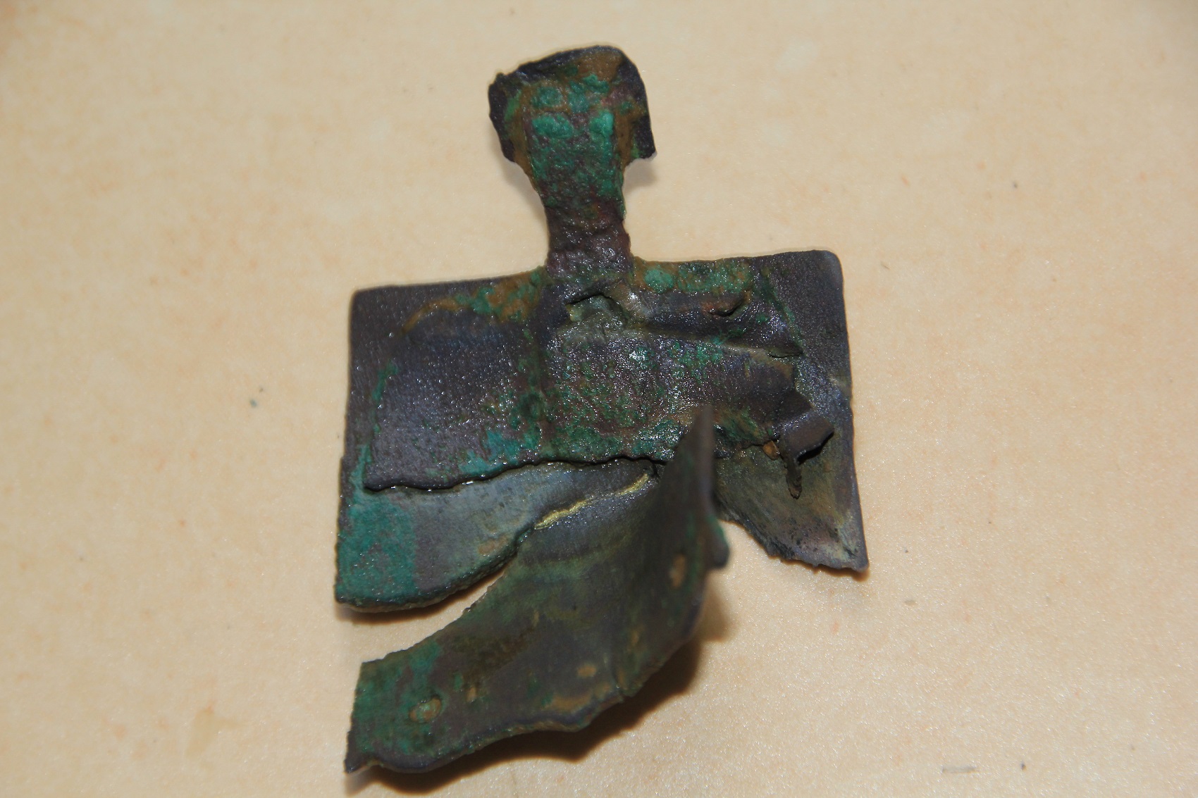 Ist alles aus Kupfer/Bronze bis auf der silberne Knopf/Anhänger (natürlich) der ist Nickel laut Detektor.