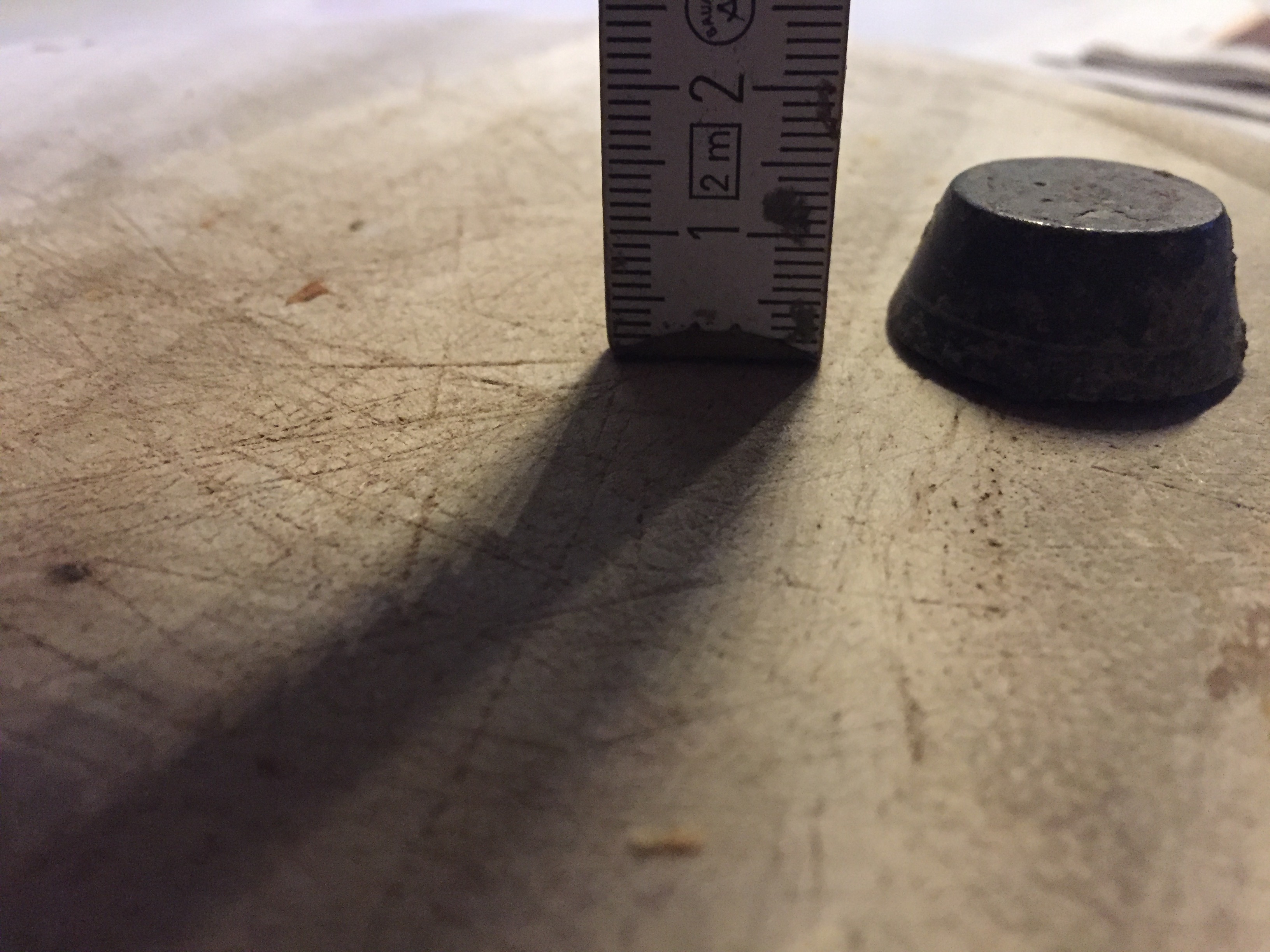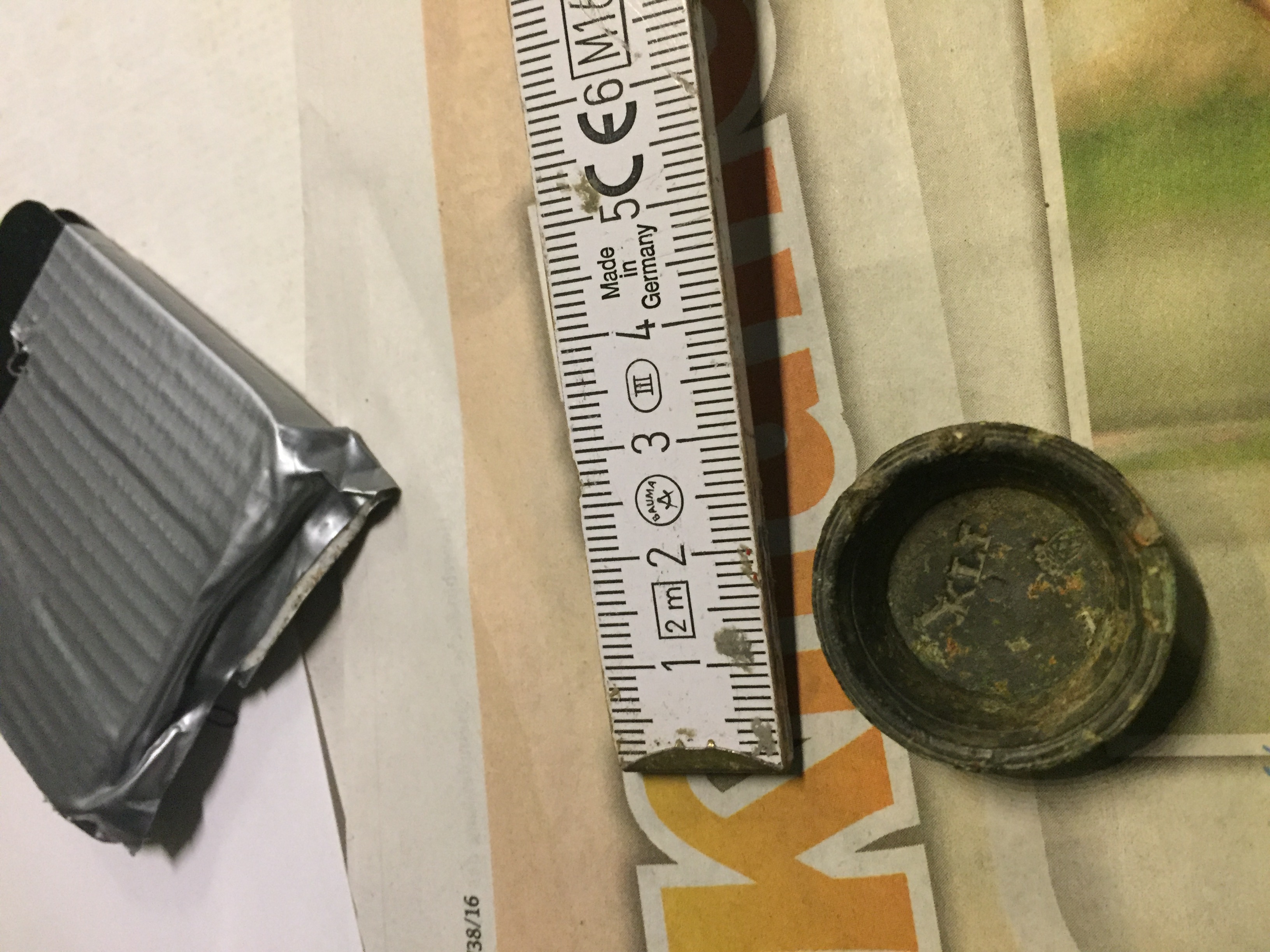 ich habe die Tage beil. Teil gefunden. Es ist nicht groß, hat aber ein beachtliches Gewicht. Für einen Fingerhut viel schwer. Hat von Euch jemand eine Ahnung?