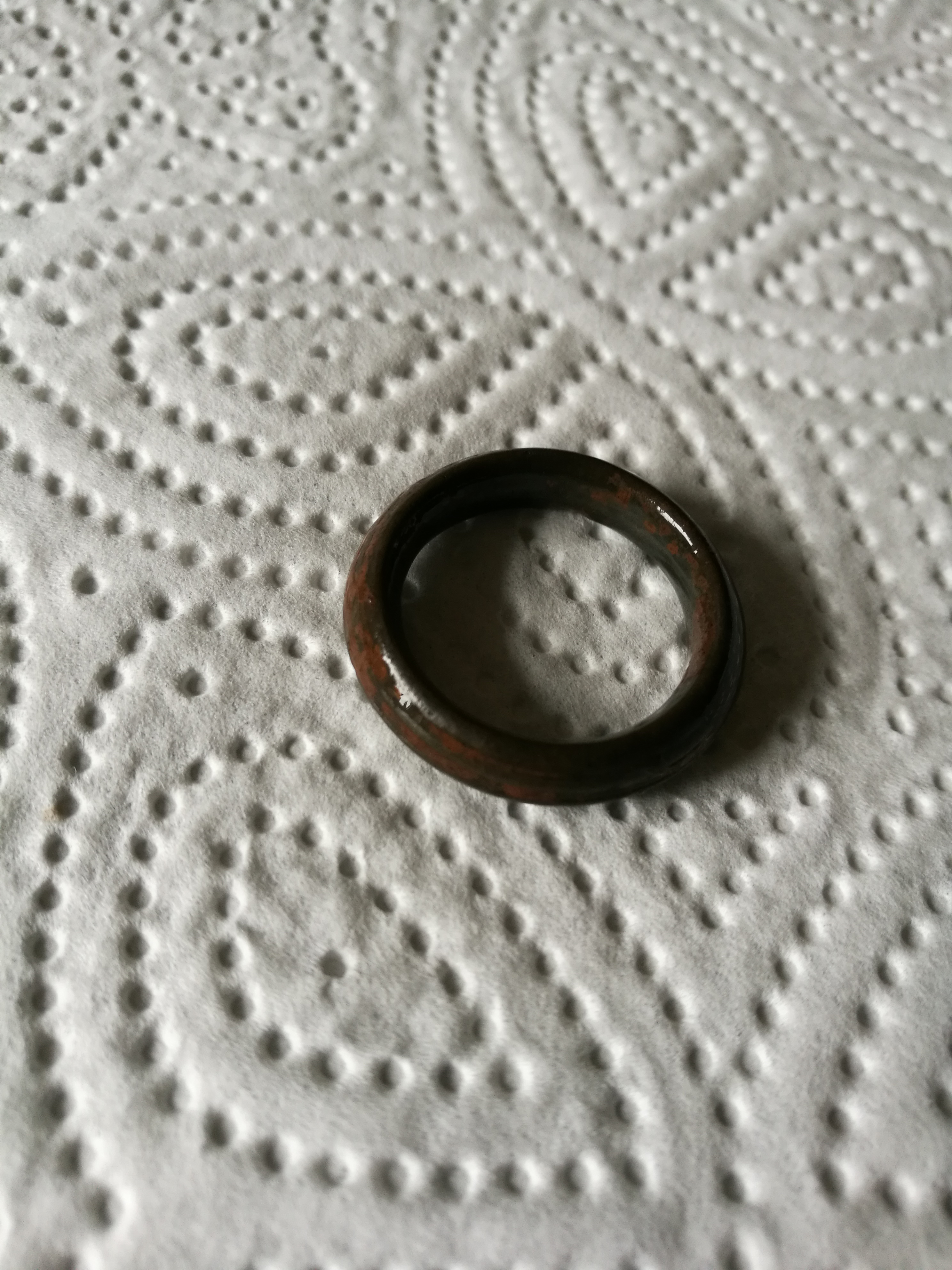 ich hab auch zwei Kupferringe,bin aber nicht an einer Fundbestimmung intressiert da sie um Armlängen häßlicher sind als seiner.