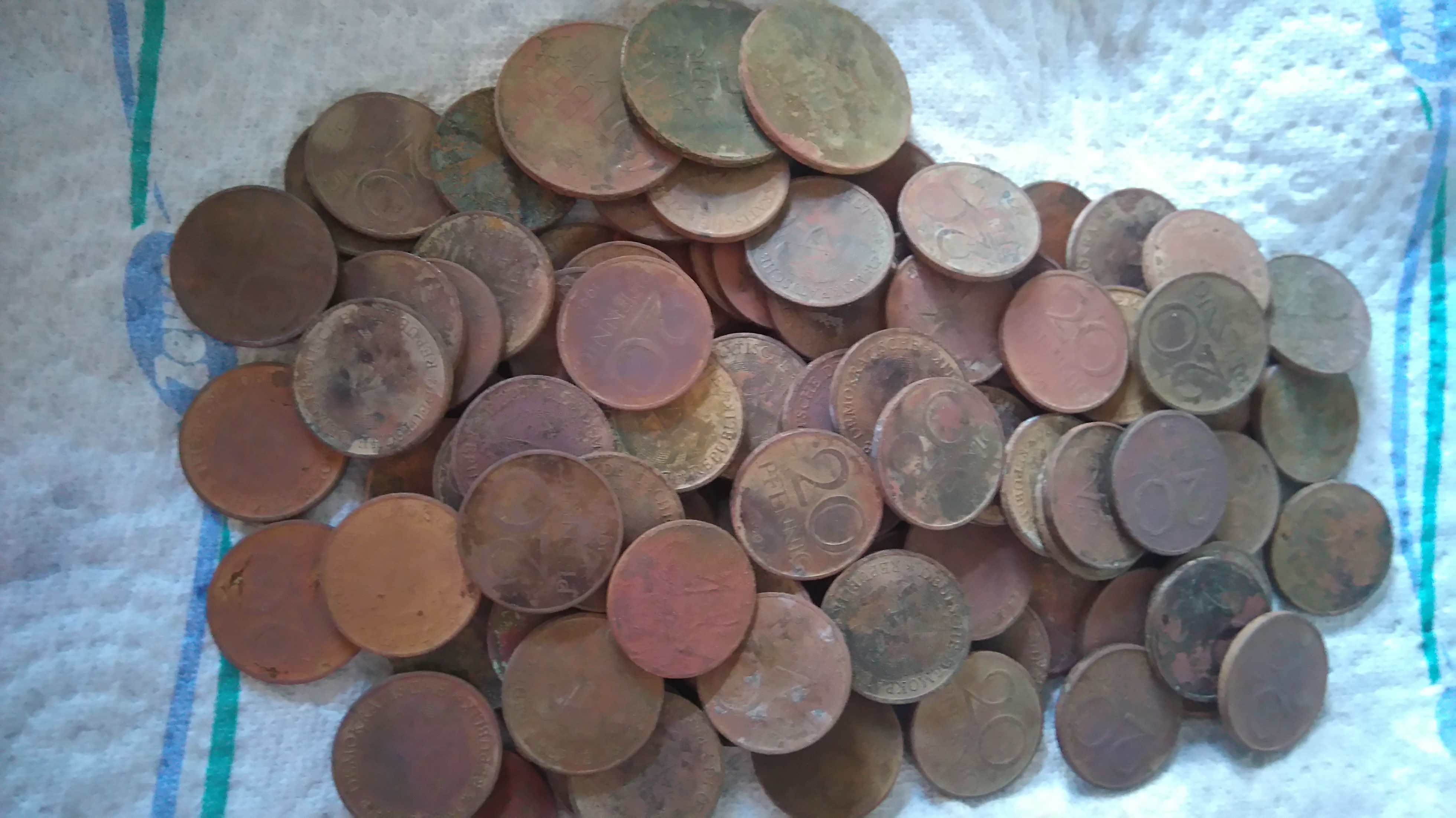 Aber mal was zur Bewandnis der 20 Pfennigstücke. Die Dinger hatte jeder einstecken. Erstens kostete ein Telefonat 20 Pfennige und man konnte die zweitens bestens als Überbrückung von kaputten Sicherungen verwenden. Und drittens hoben sich die 20iger von dem Rest der Münzen ab und glänzten so schön golden. Deshalb wurden die dann auch noch von jedem Kind gesammelt.