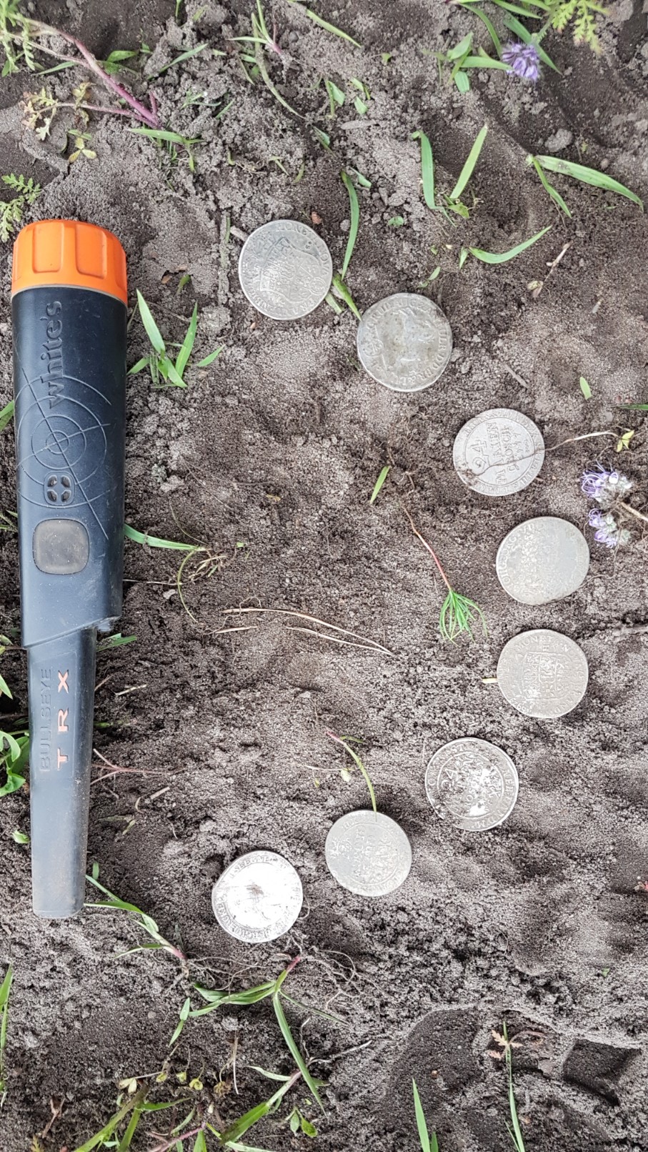 Die 8 Taler habe ich ausgebuddelt :-) Nah am Waldesrand verstreut auf nem Blumenwiesenacker. Der Sondelgott meint es gut mit mir. :thanks