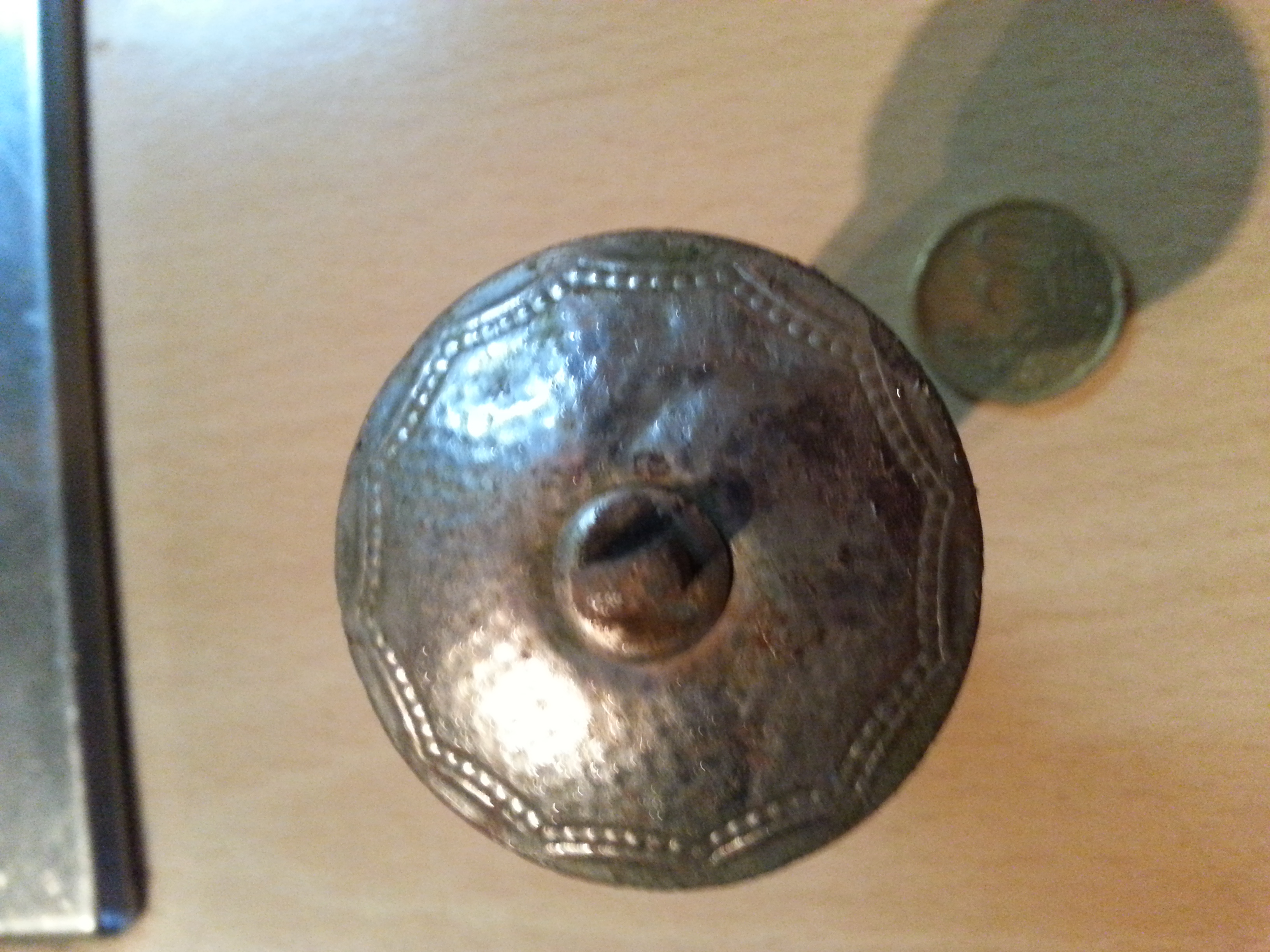 vielleicht kann jemand etwas zu Bild 1 - 3 sagen. Es ist oben schön verziert und hat einen einen freien Ring. Material denk ich etwas in der Richtung Blech.
