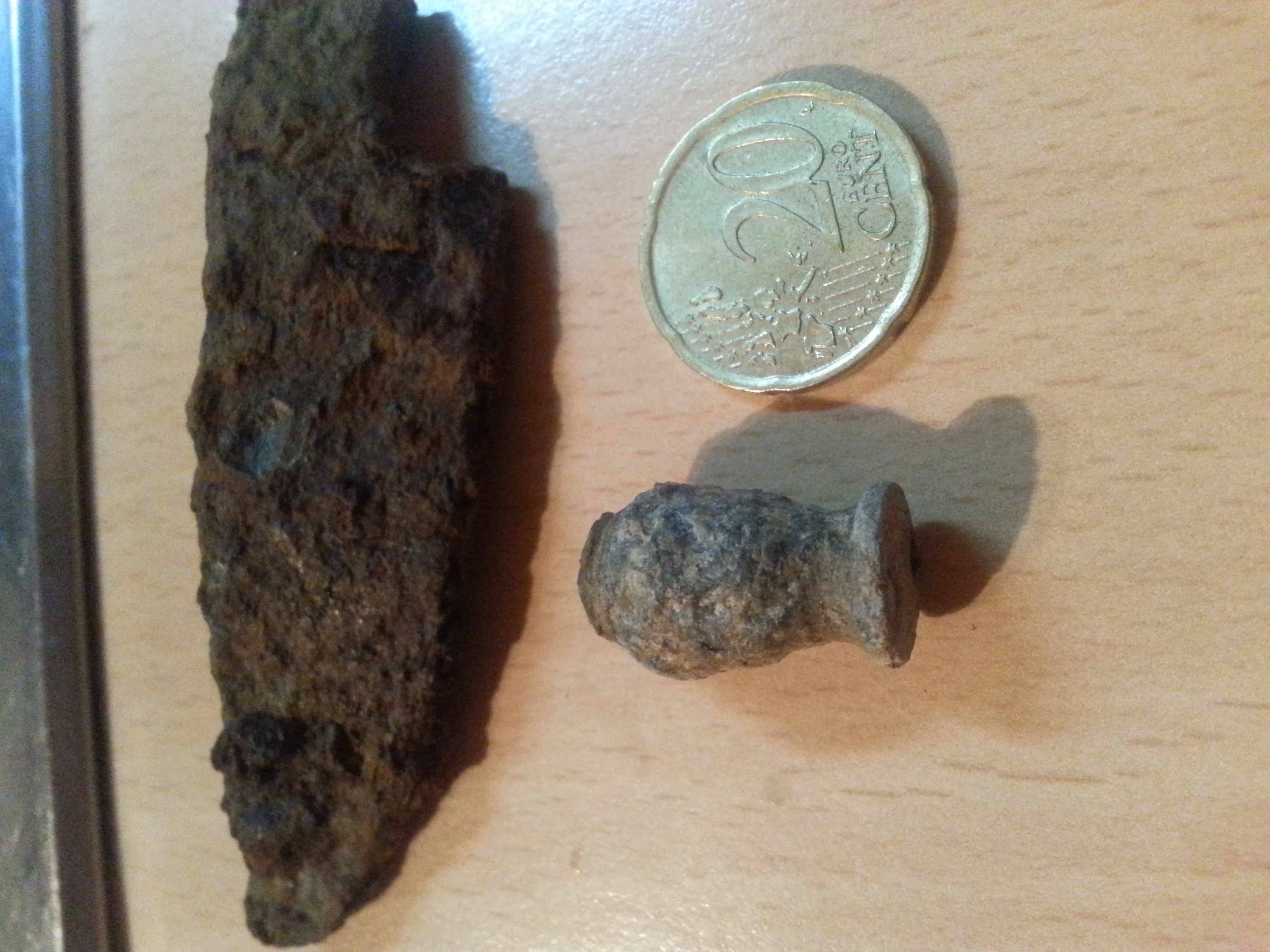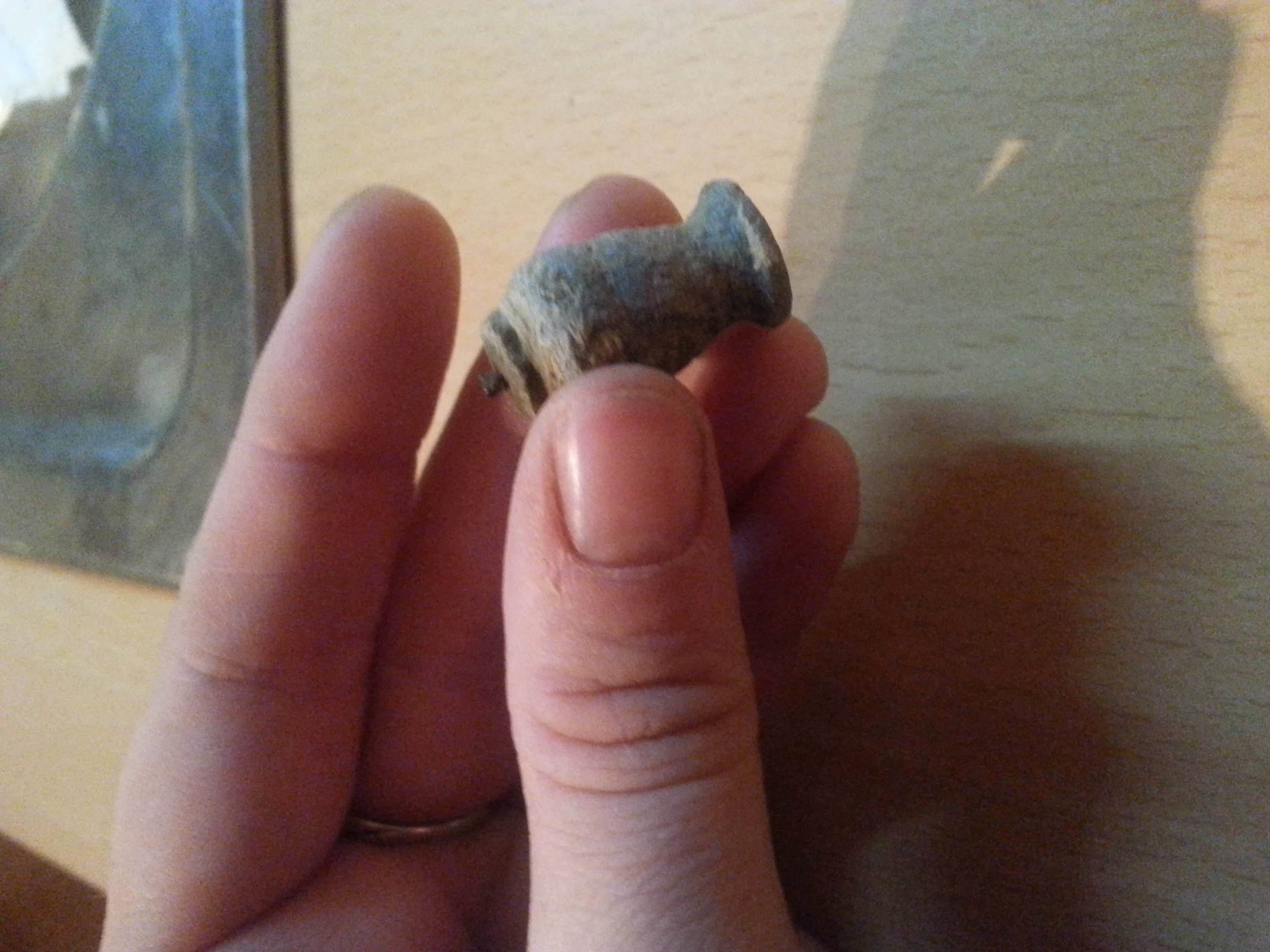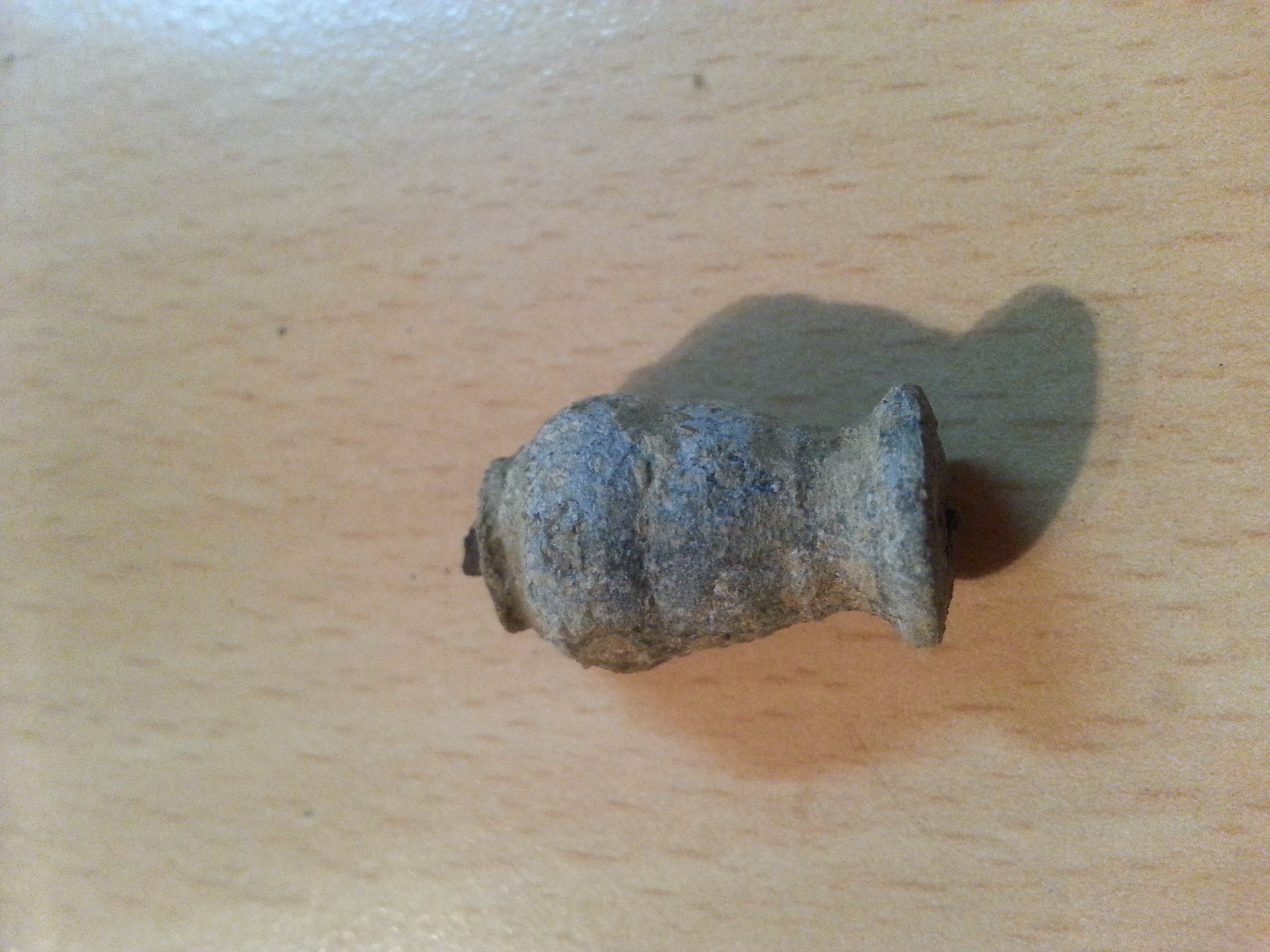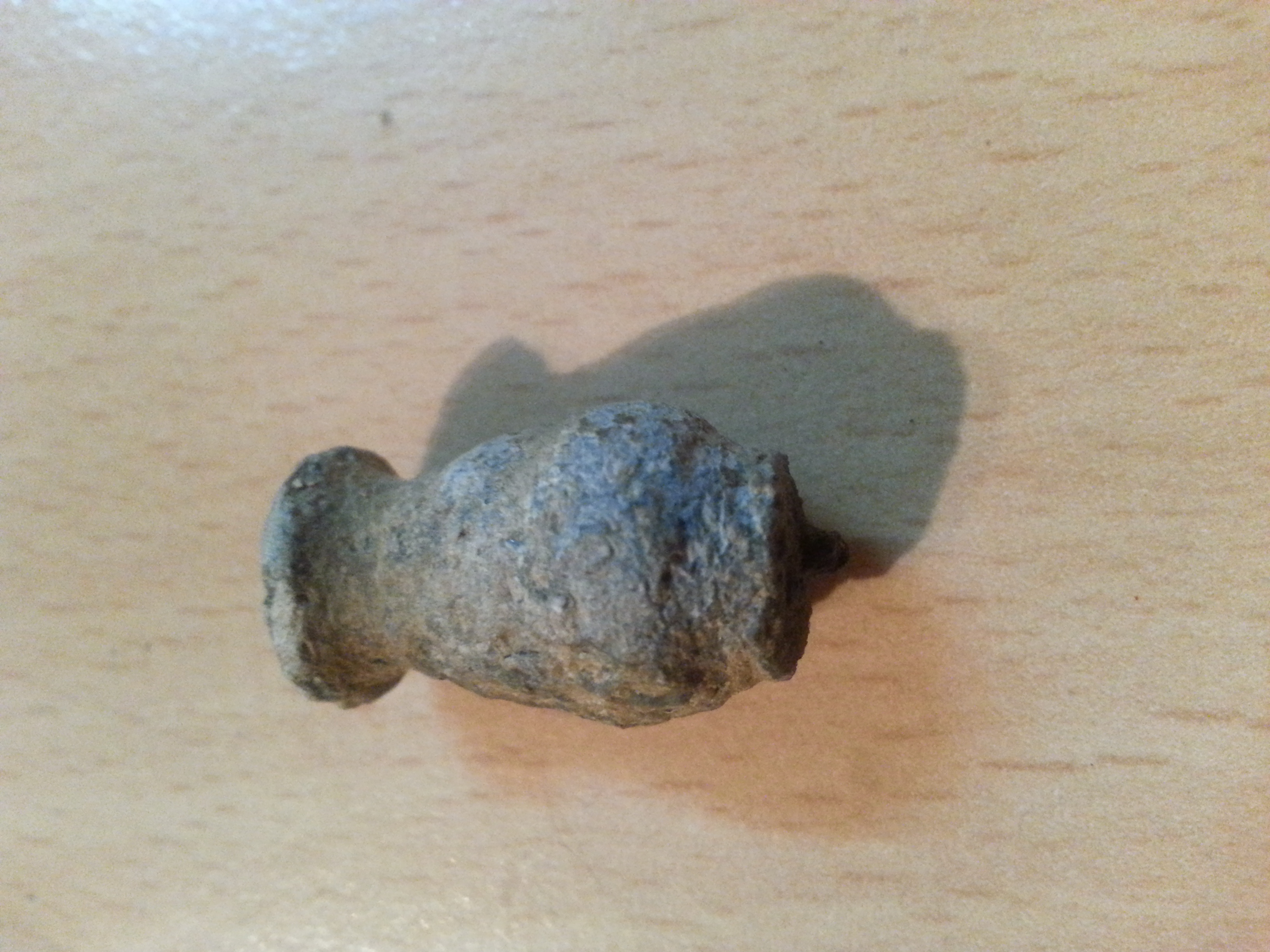 heute das einzige Teil, was ich nicht bestimmen kann. Es scheint aus Blei zu sein? Vielleicht ein Spinnwirtel? Die Löcher scheinen "verlegt" durch Rost vom Eisen.