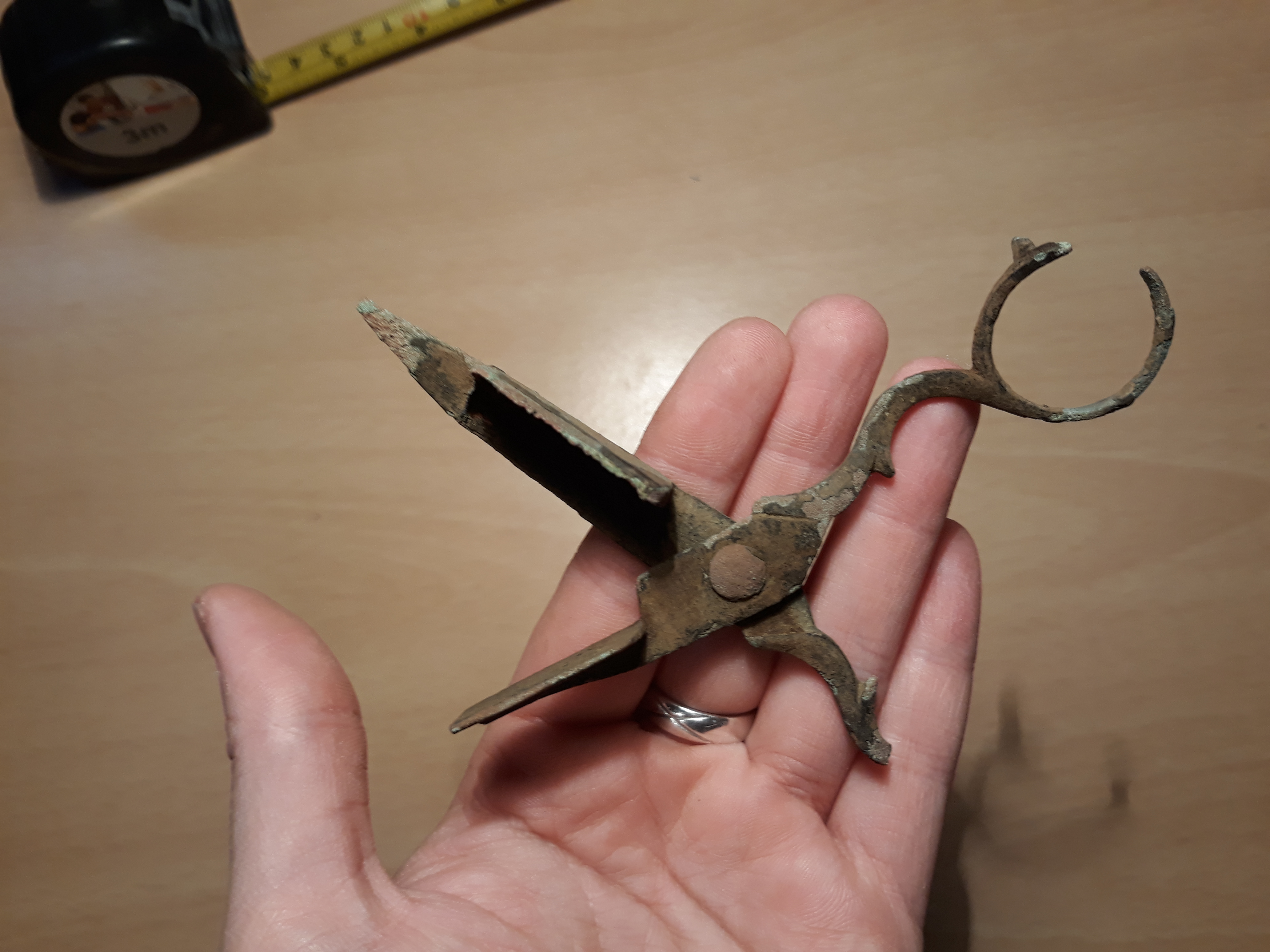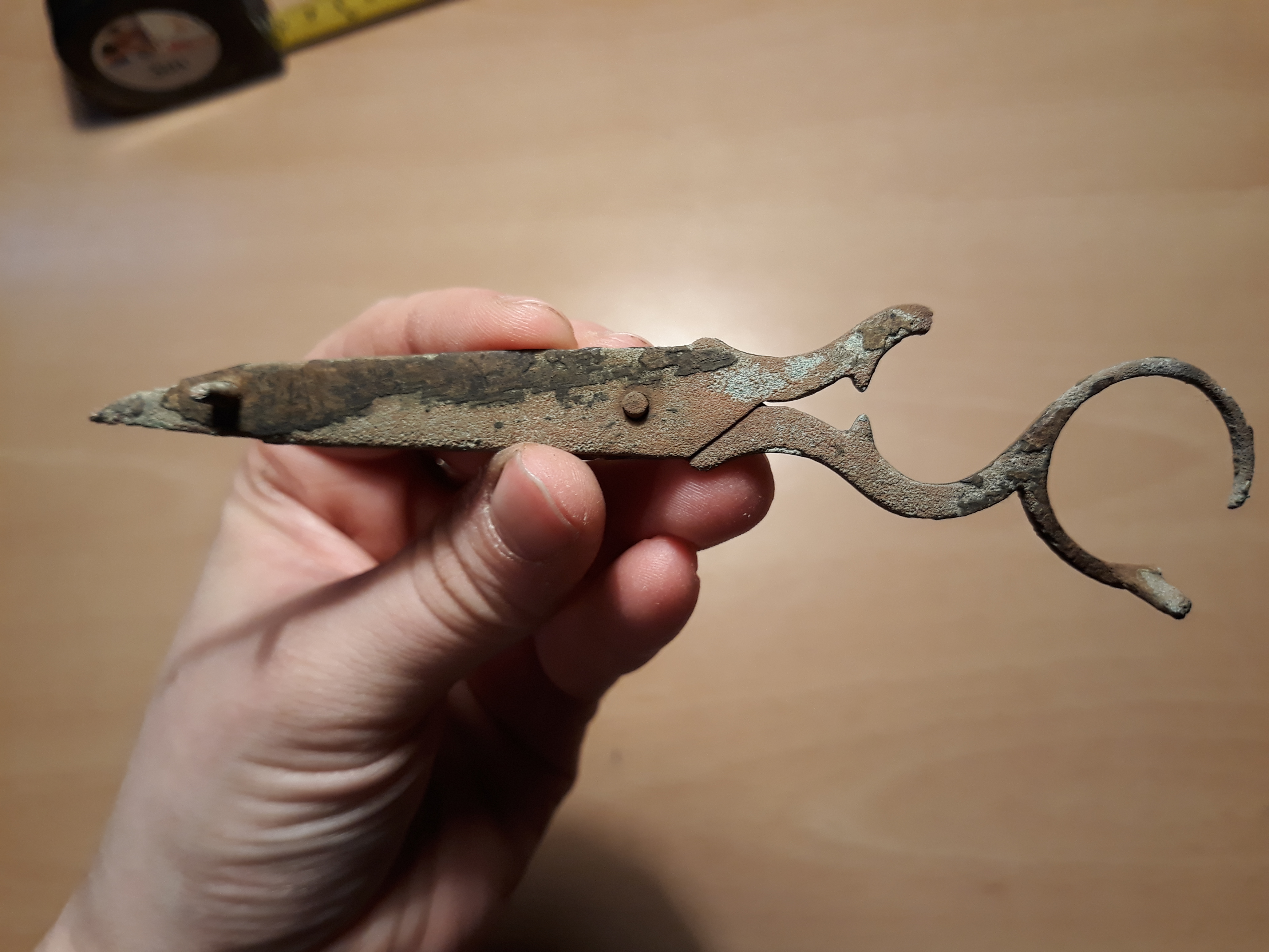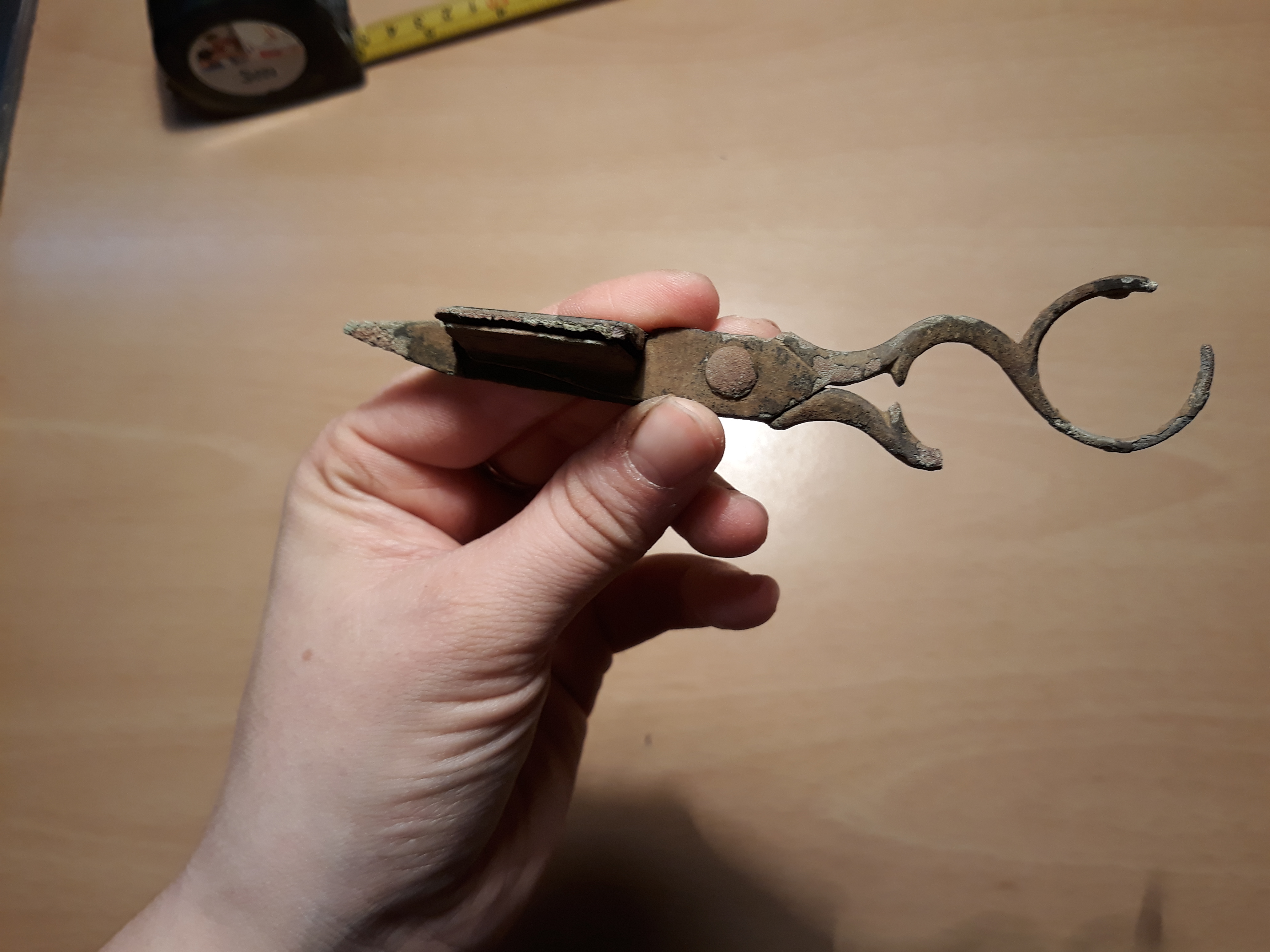 Das ist eine Dochtschere. Material wird Messing sein.