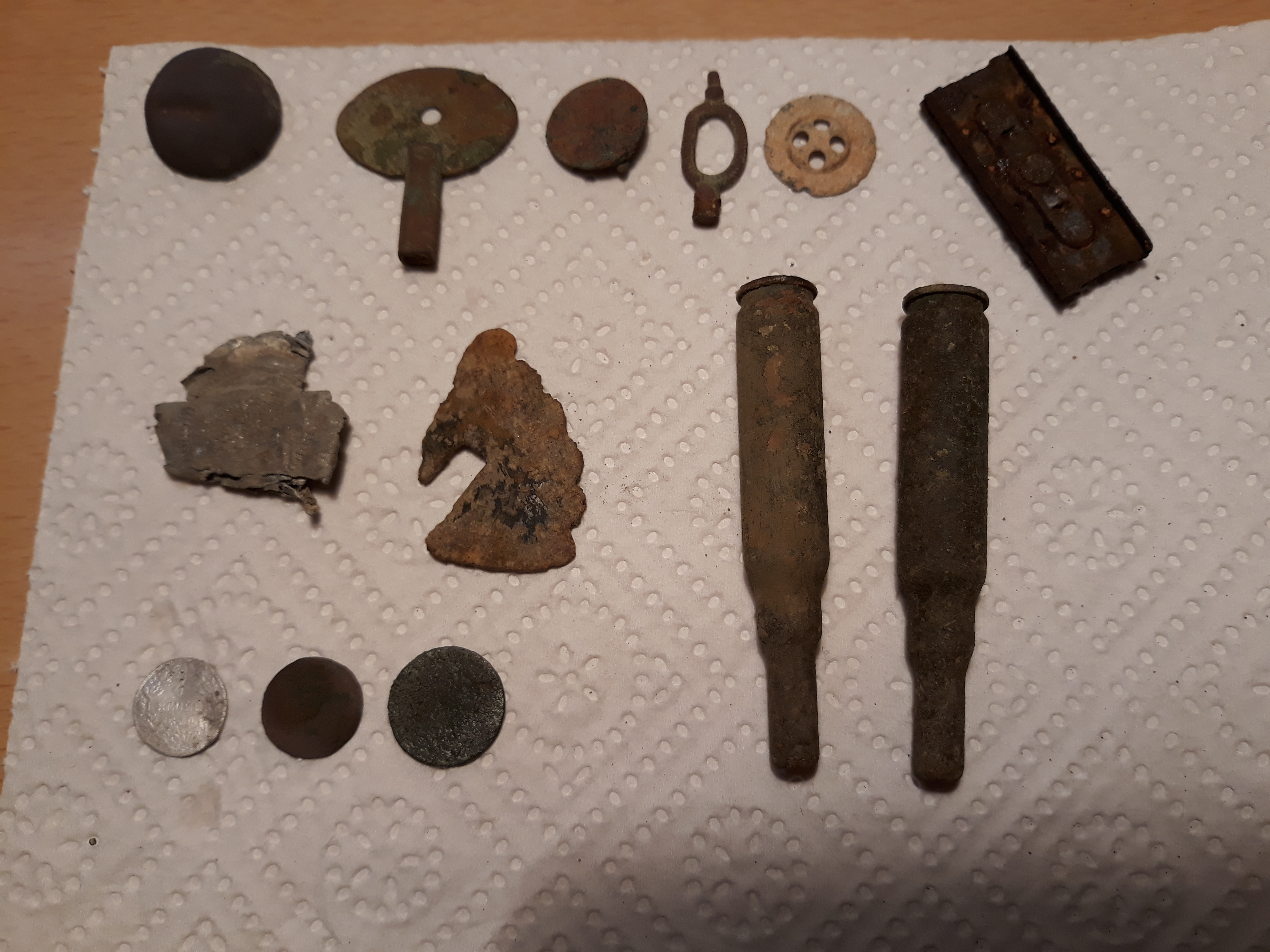 Schöne funde. Aber bei den patronen handelt es sich um übungsmunition, die hatten keine projektile.