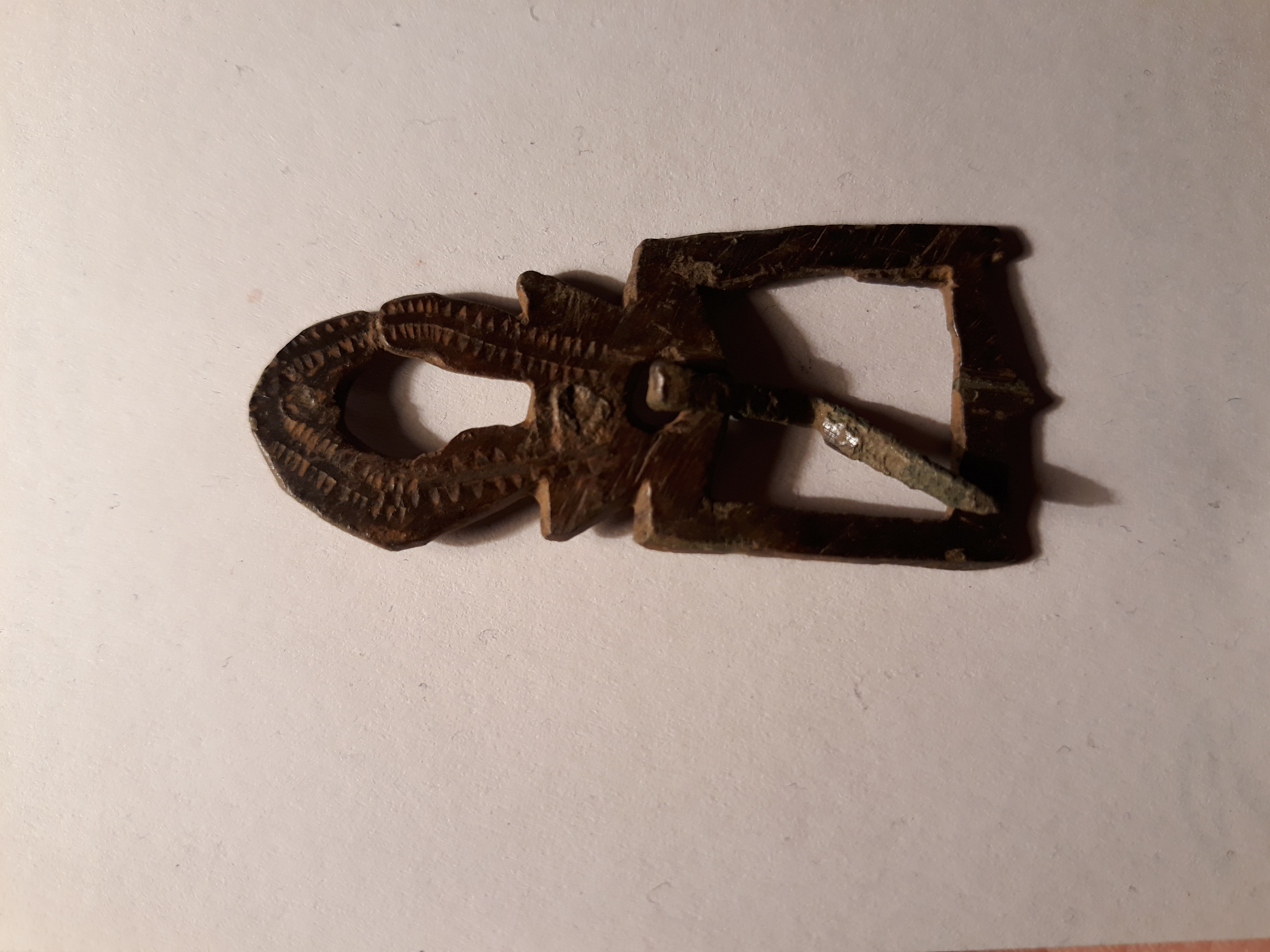 Jemand eine Ahnung wie alt diese Schuhschnalle sein könnte. Länge ca. 8 cm und Breite 1,5 cm. Buntmetall, ob Bronze oder Kupfer kann ich nicht sicher sagen.