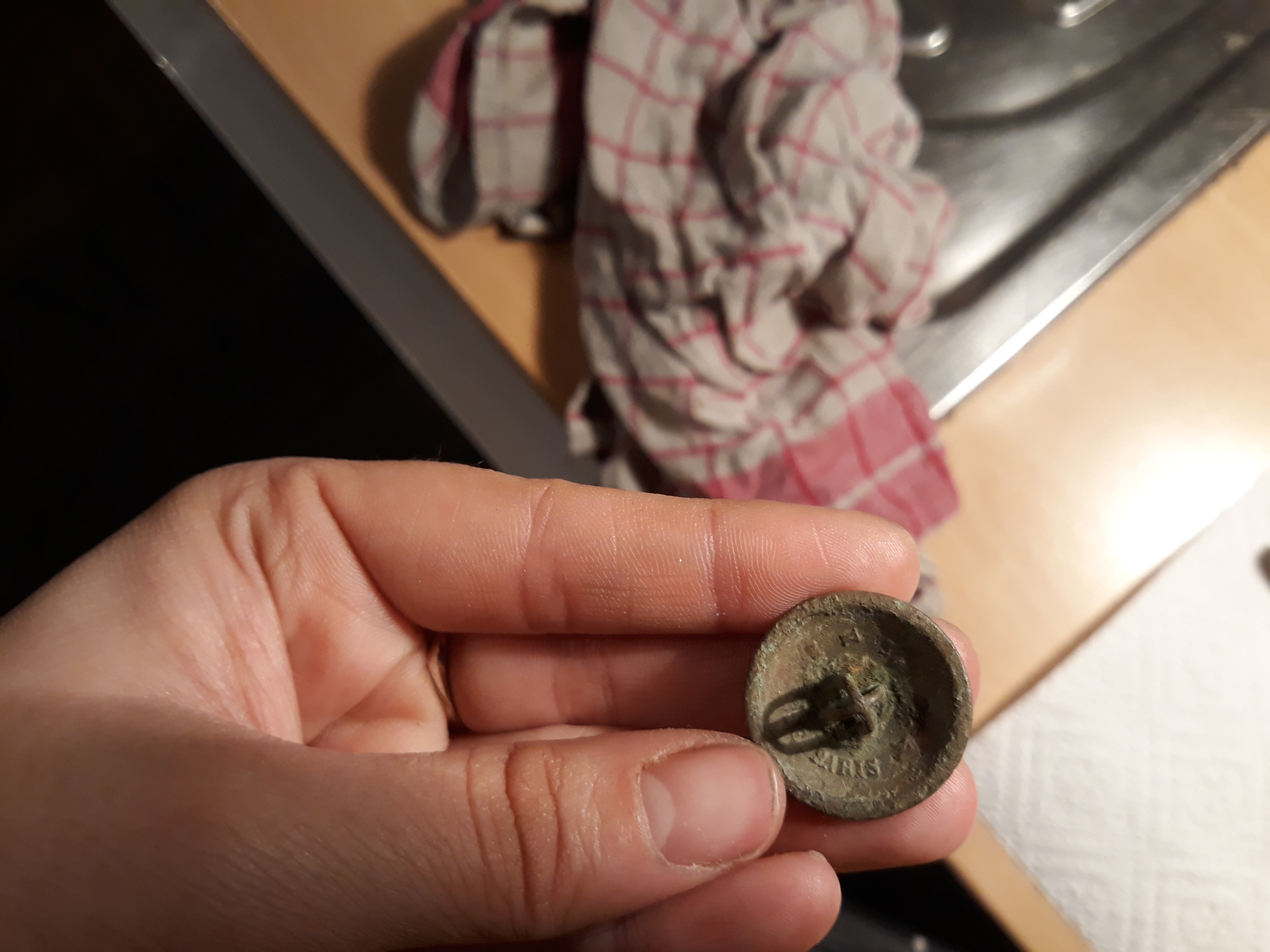 5 Silbermünzen, Schuhschnalle, Armeeknöpfe usw.
