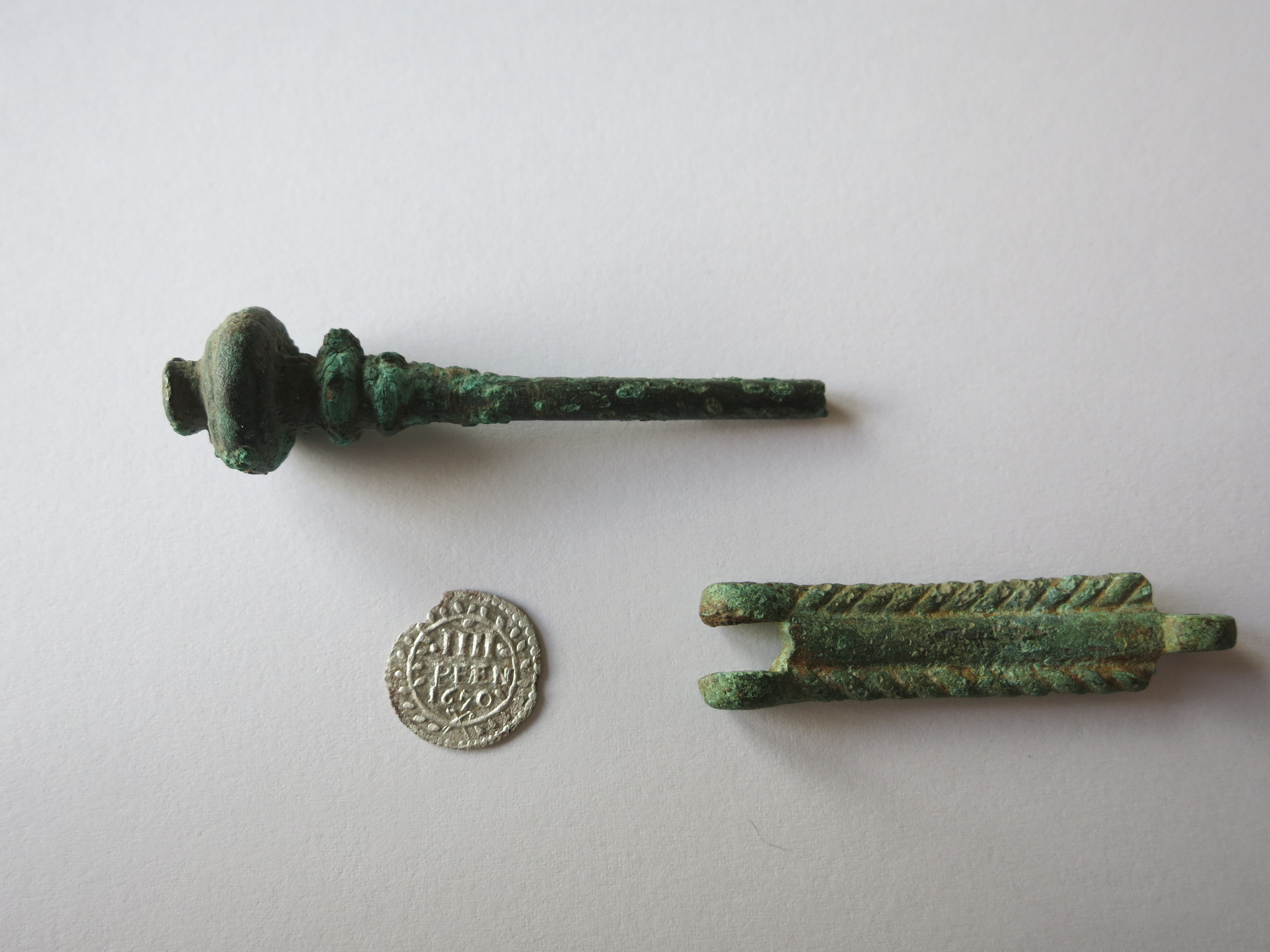 habe es nach einiger Zeit mal wieder geschafft auf den Acker zu gehen. Hier die schönsten Fundstücke der letzten Tage. Vielleicht kann mir ja jemand sagen aus welcher Zeit die Haarnadel stammt und was das andere Objekt ist. Vielen Dank für eure Hilfe.