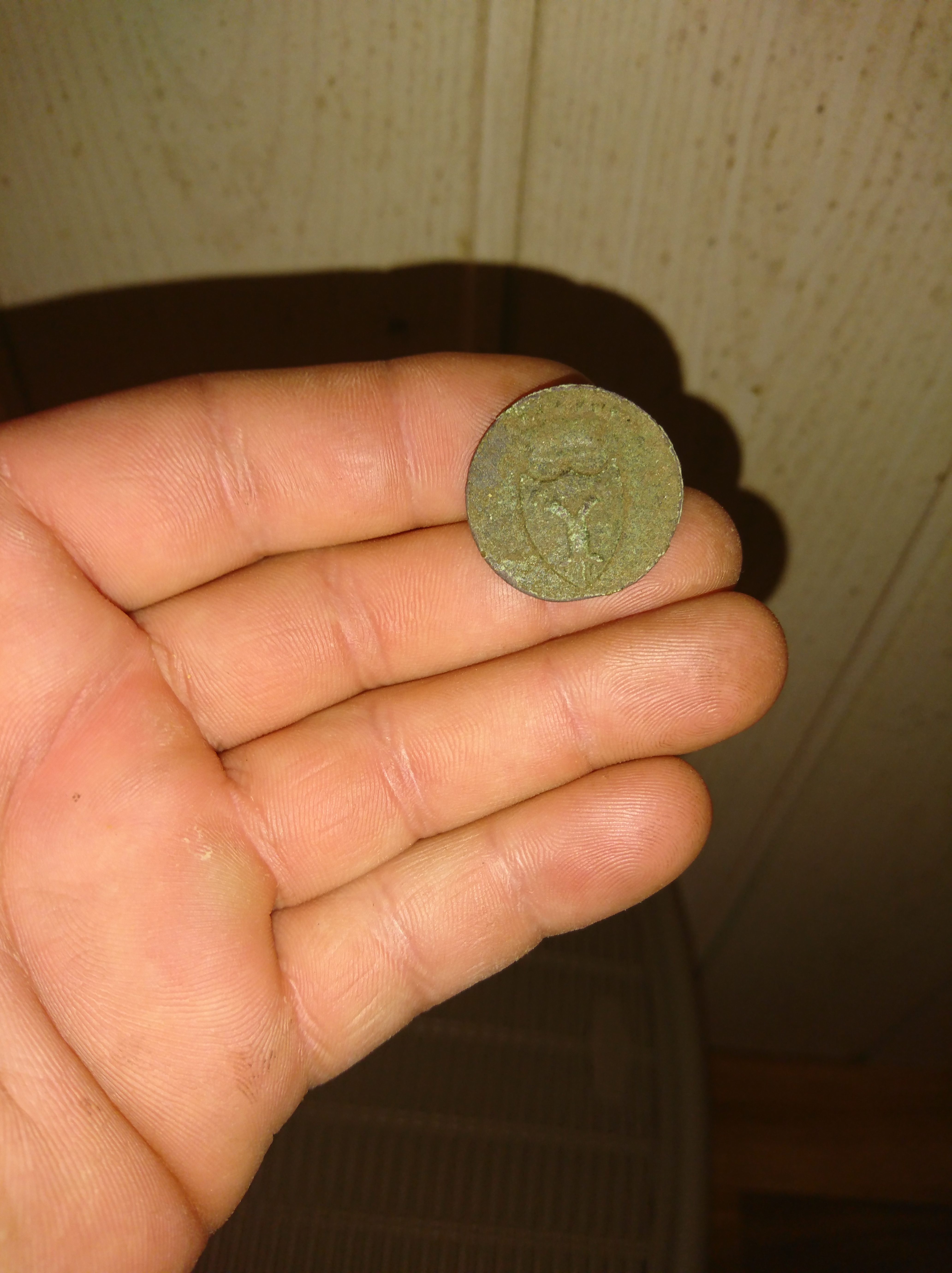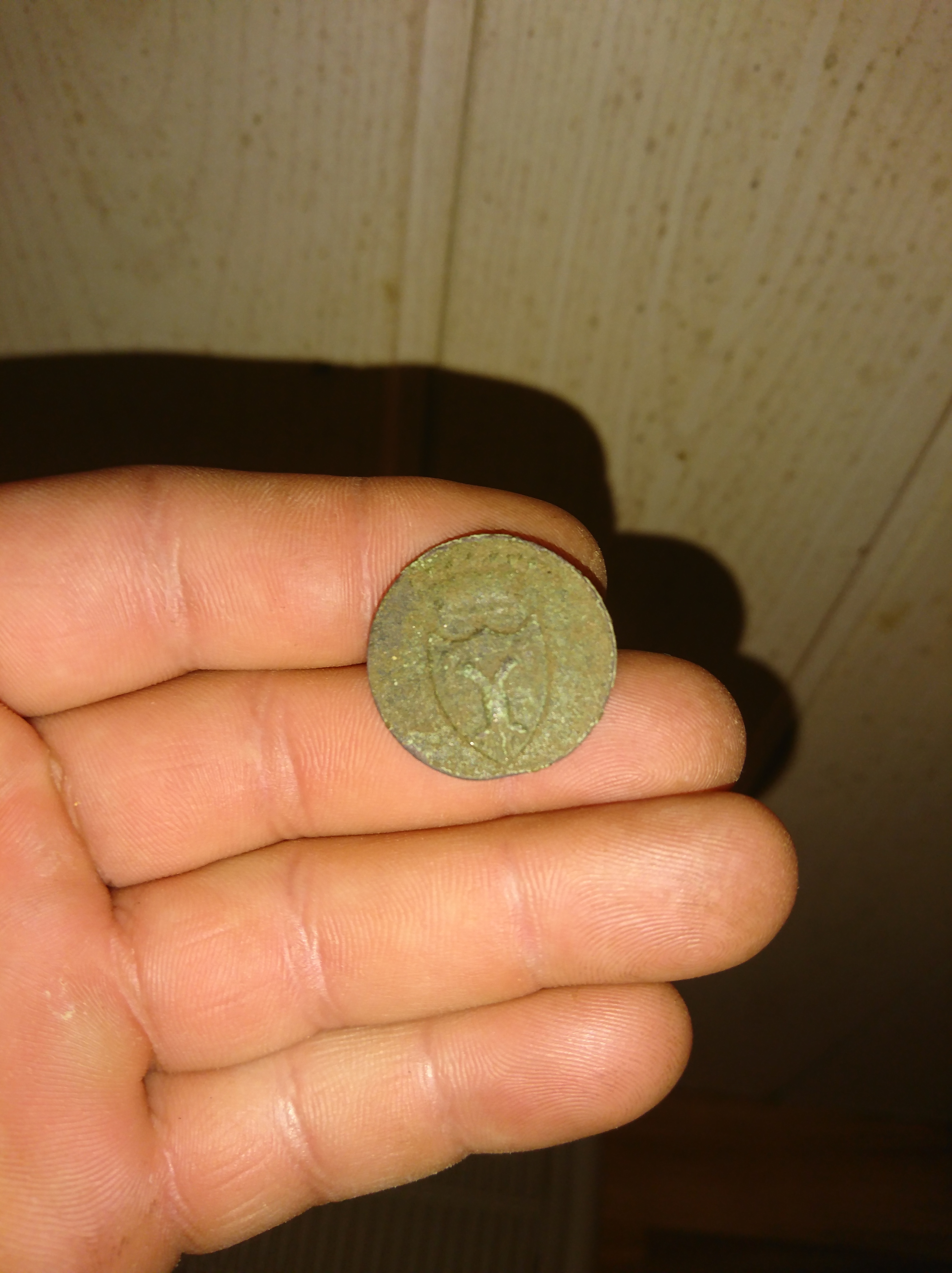 es ist ein knopf aus vermutlich bronze könnte mir jemand sagen won was oder wem der is ....