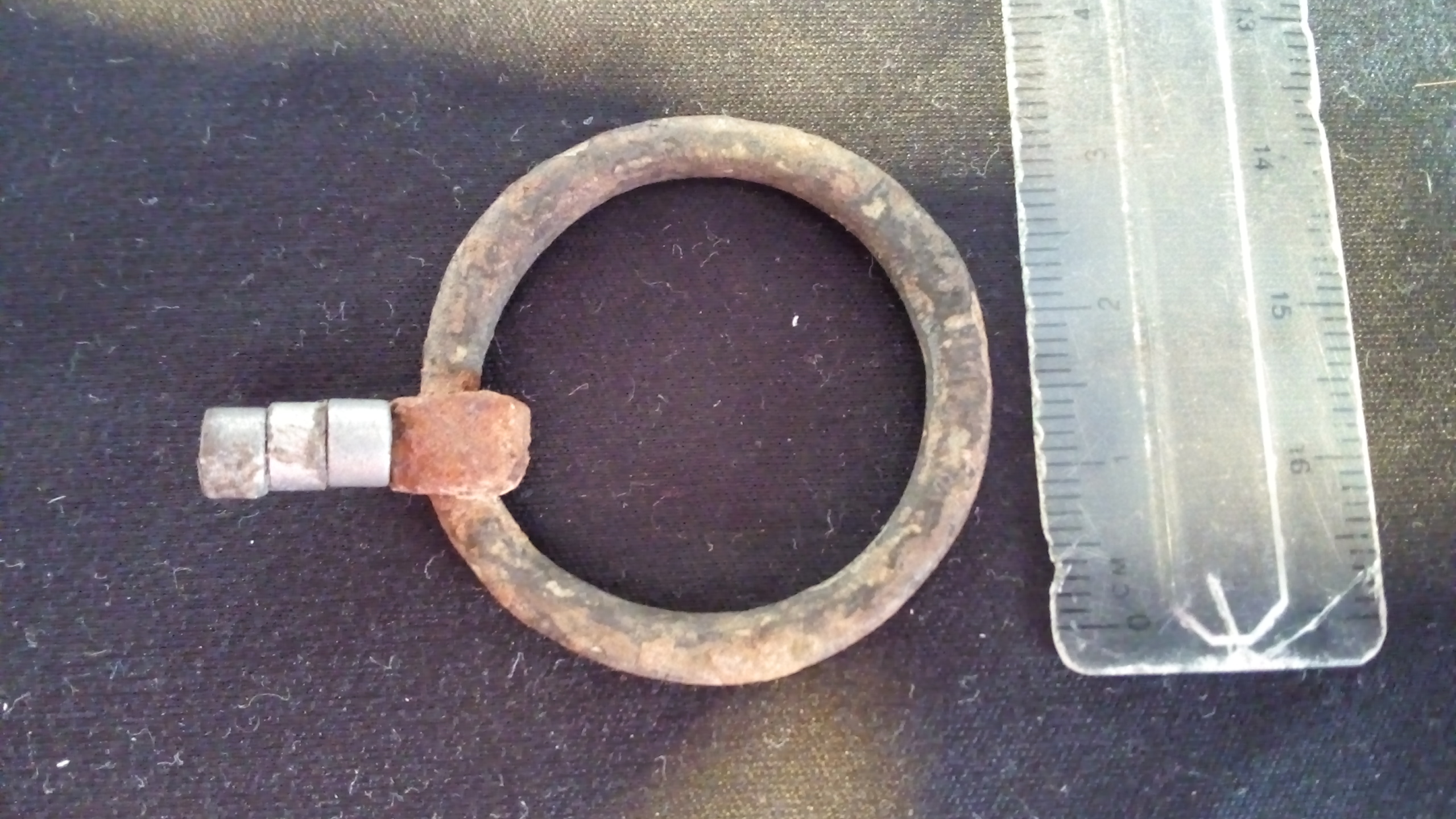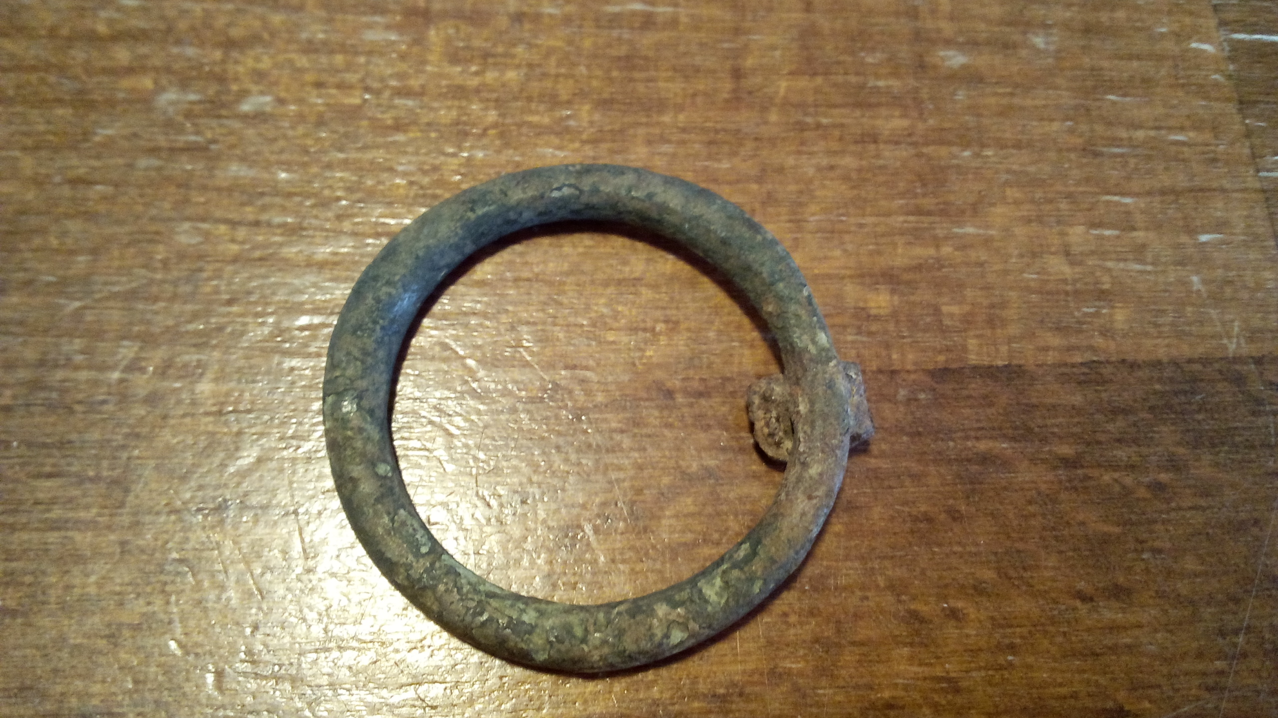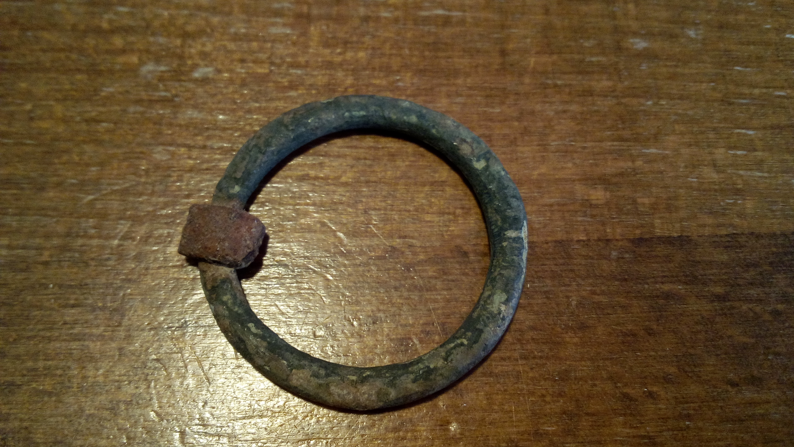 Der Ring besteht aus Bronze, das kleinere Überbleibsel aus Eisen und ist fest.
