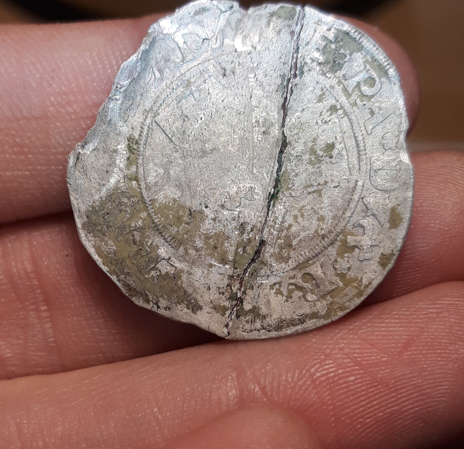 Diese Münze war gefaltet, da die Leute damals, wenn sie eine Fälschung erkannt haben, diese dann quasi entwertet haben indem sie diese gefaltet haben.