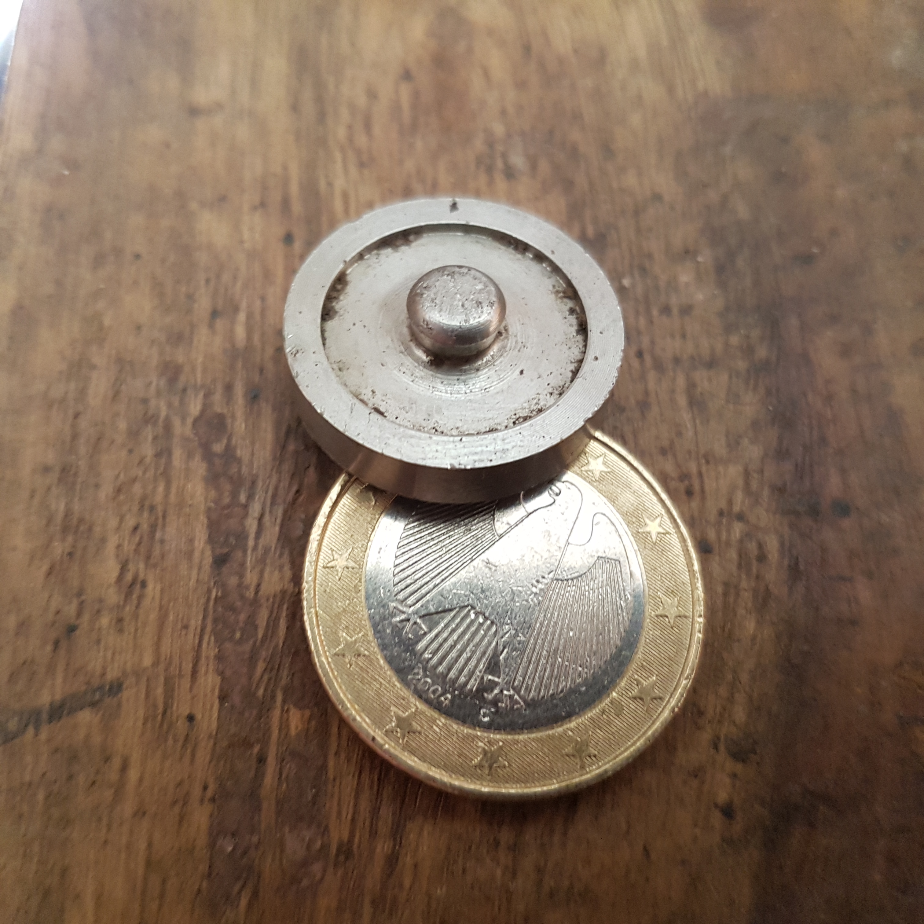 habe eitwas gefunden, dass ich für einen Druckknop halte. die Forderseite ist mit