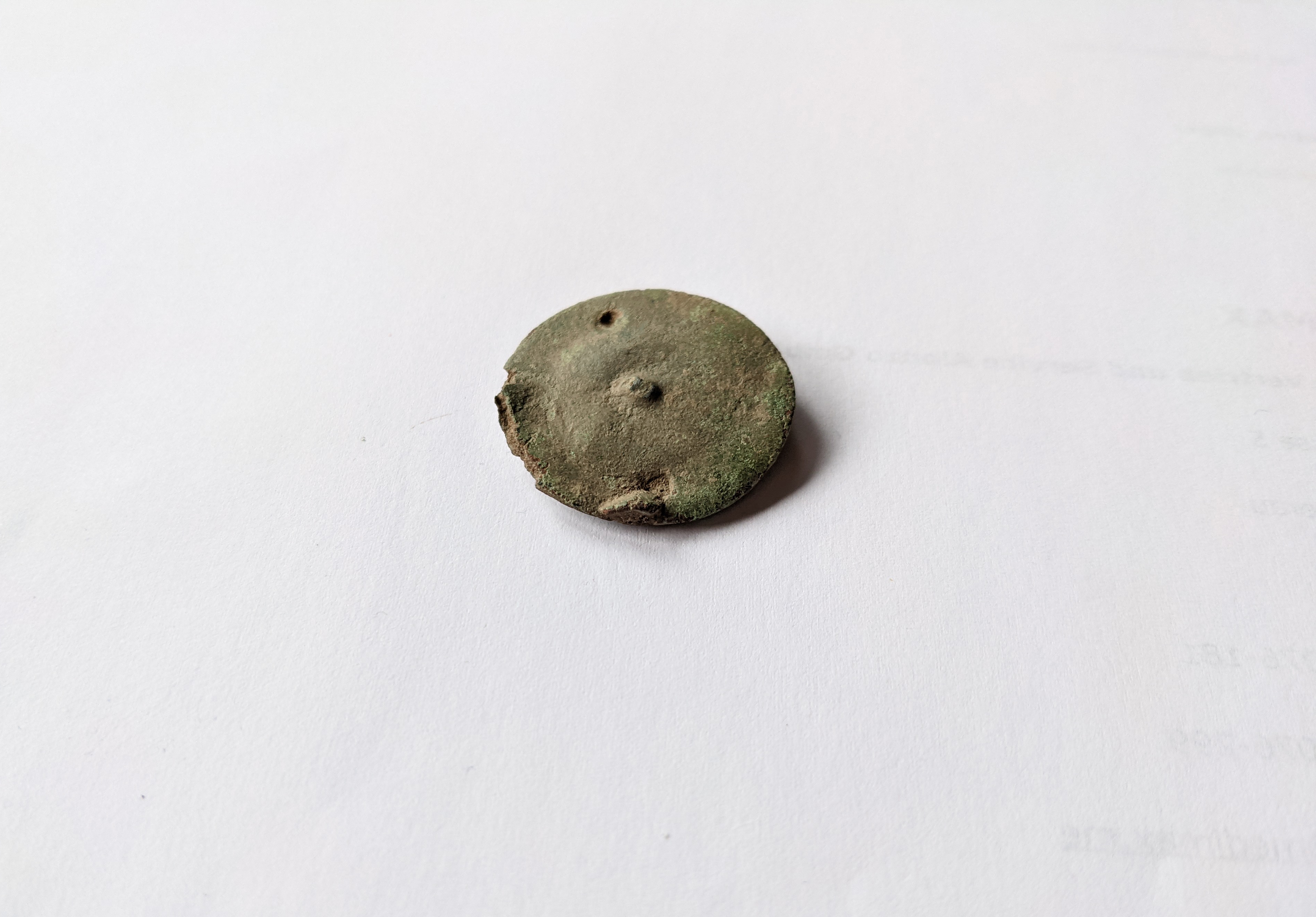Mach bitte nochmal Einzelfoto von der vermuteten Scheibenfibel. Siehst du Reste von Emaillie?