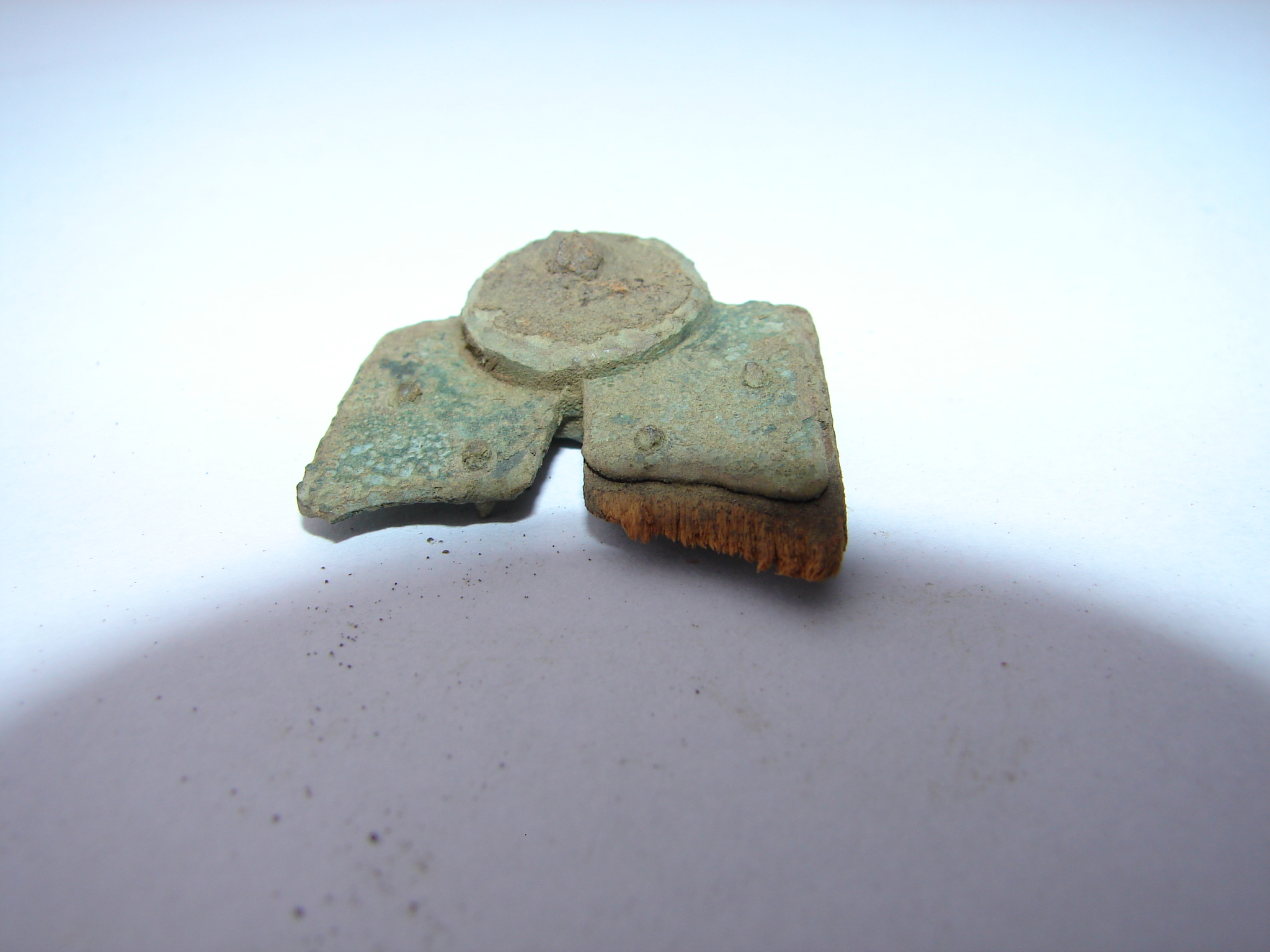 zwei Metallplättchen Holz eingearbeitet.