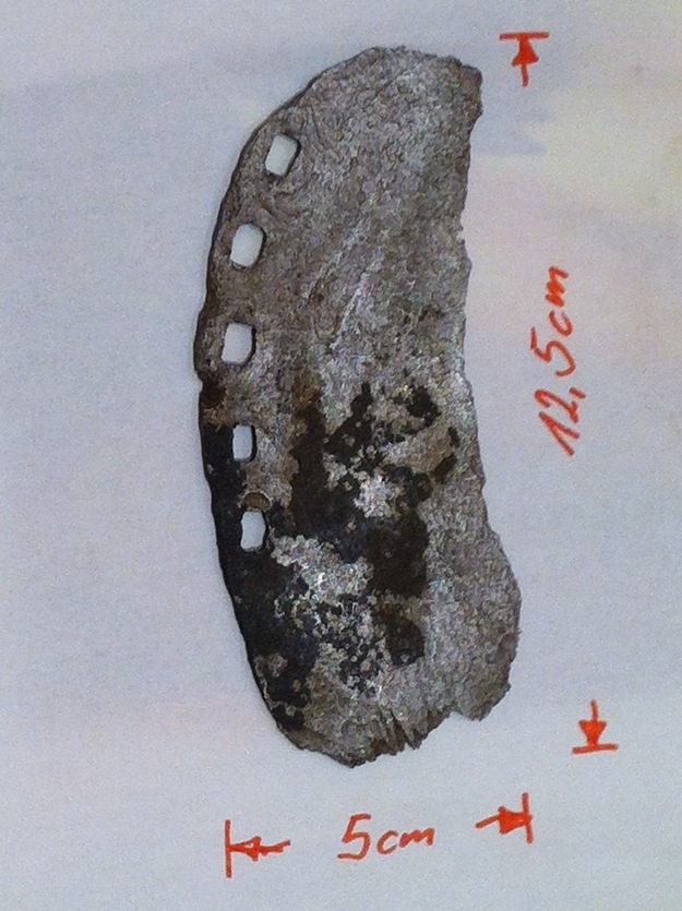 nach internen Information aus dem Forstamt über ein Teistück eines alten Handelsweges nach Böhmen, fand ich in diesem Hohlweg diese nichtrostende Eisenteil. Ist das vielleicht eine Sichelwaffe. Die Stärke ist 3 mm und unten scharfkantig geschmiedet. Die Löcher sind auf einer Seite eingesenkt. Kann mir dazu jemand was schreiben auch bezgl. welches Jahrhundert(15.16 ?)