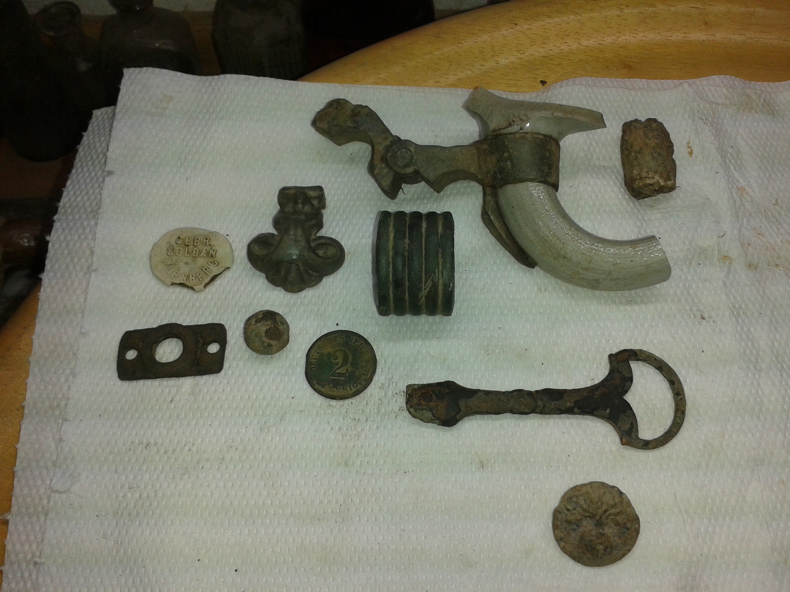 Hallo matt, schöne Sachen. Der alte Knopf gefällt mir sehr gut. Sag mal einen ahnungslosen, die fünf zusammengesetzten Ringe unterhalb des Bierkrugteils was das ist? Hatte ich letztens auch. Mr.Kite