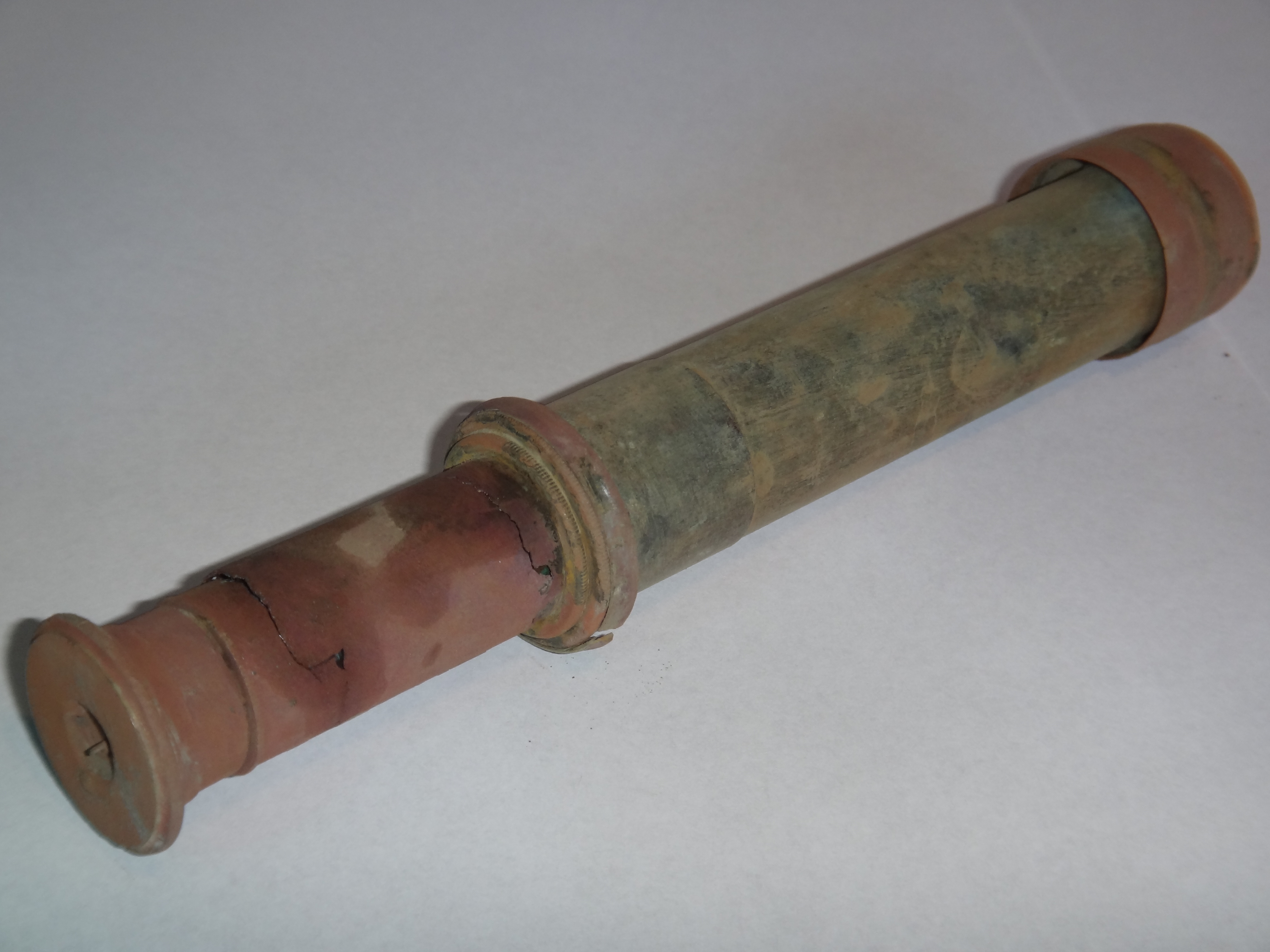 Das Fernrohr lag scheinbar sehr lange in der Erde, ca. 26 cm tief, auf einer sehr Lehmigen Wiese die, wie der Landwirt erzählte, nie Gepflügt wurde. Es ist schon sehr in Mitleidenschaft gezogen, leider.