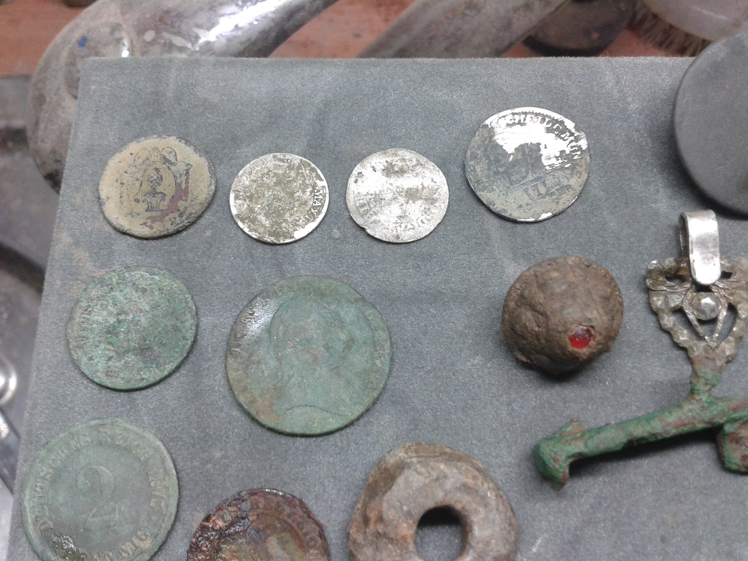 Mit der Grabehacke können Fundstücke schnell und trotzdem schonend geborgen werden. Der Detektor muß während des Ausgrabevorgangs nicht abgelegt werden, denn die Gewichtsverteilung der kleinen Spitzhacke ermöglicht ein zügiges einhändiges Ausgraben des Fundstücks.