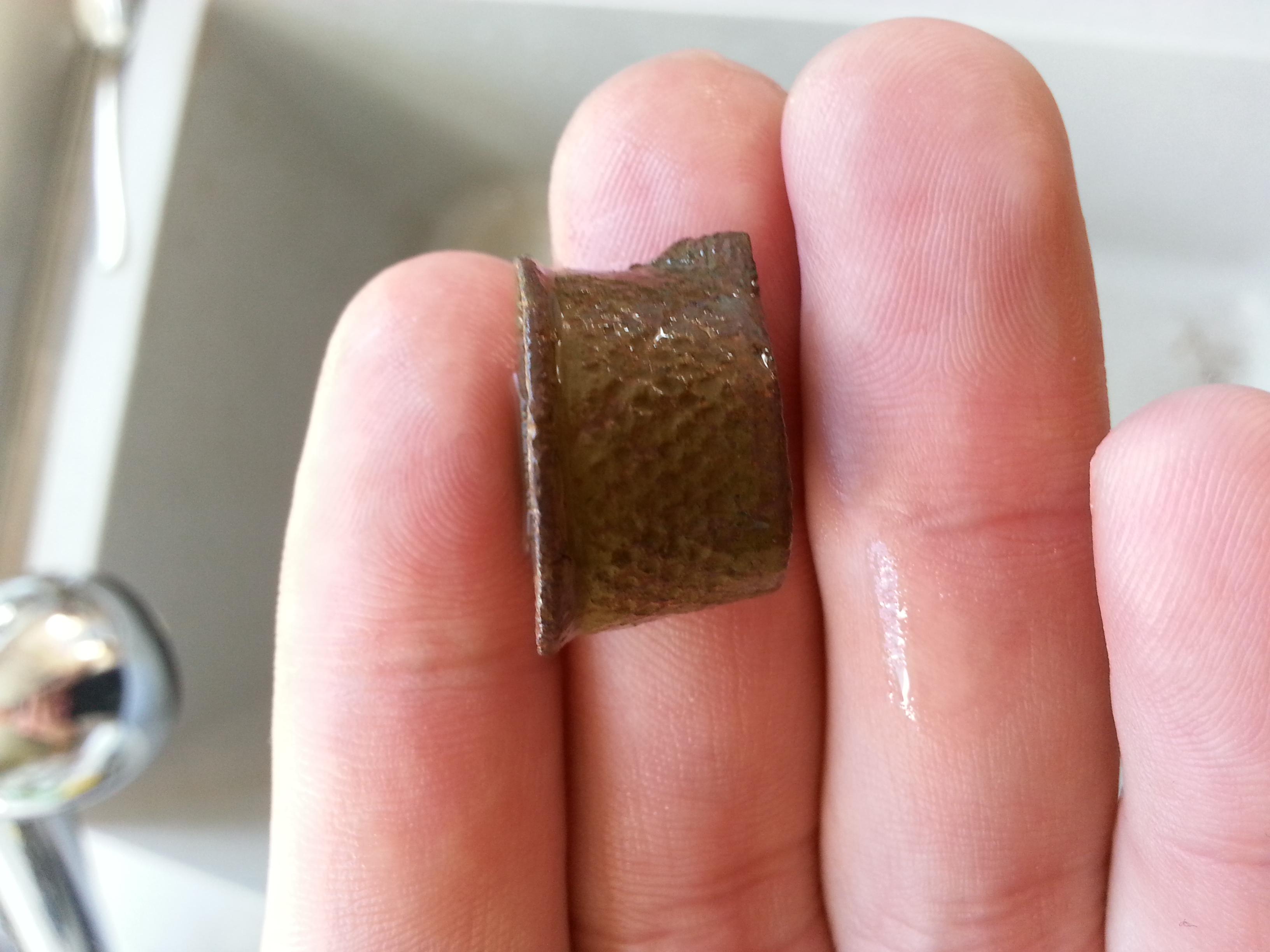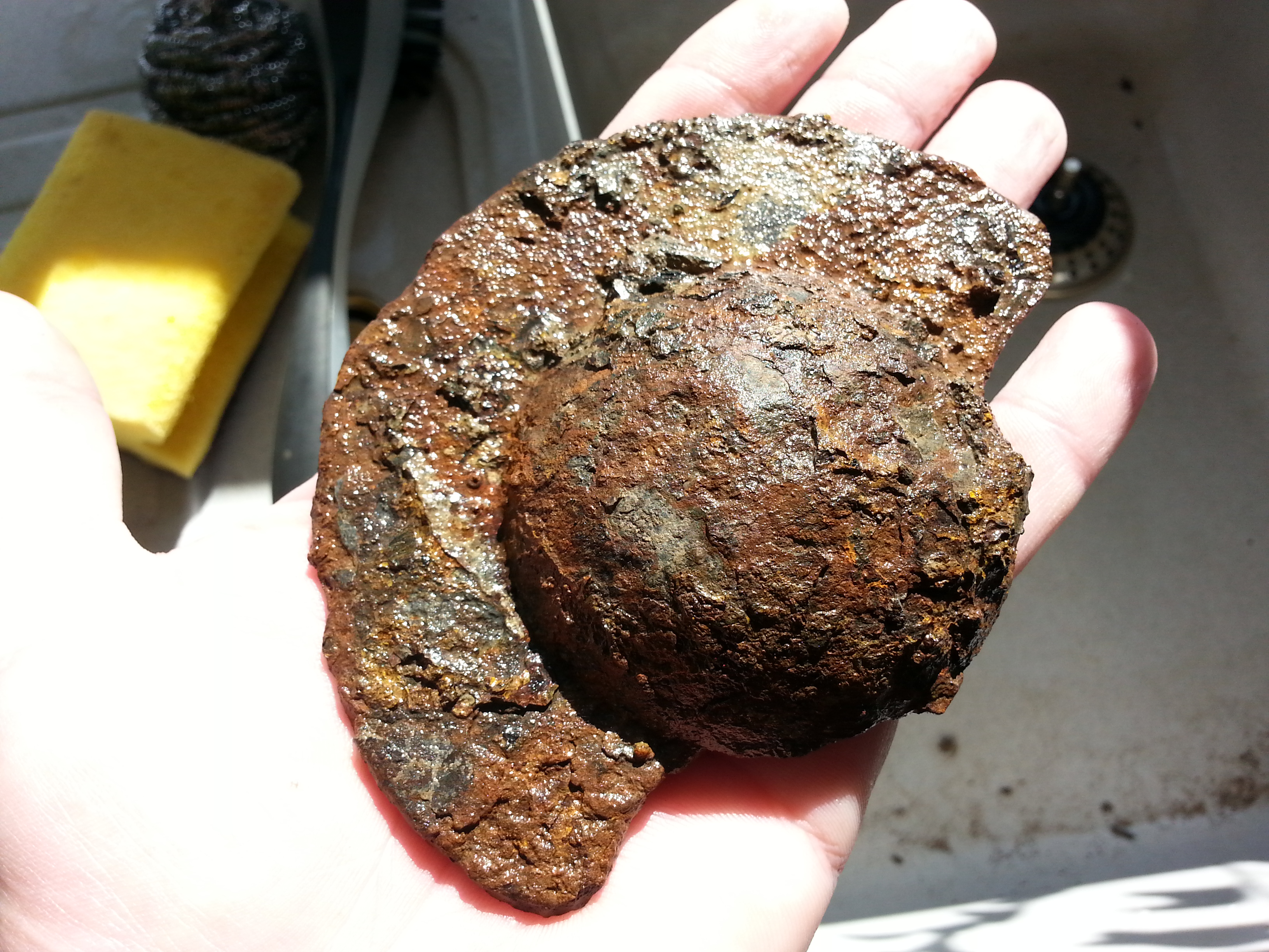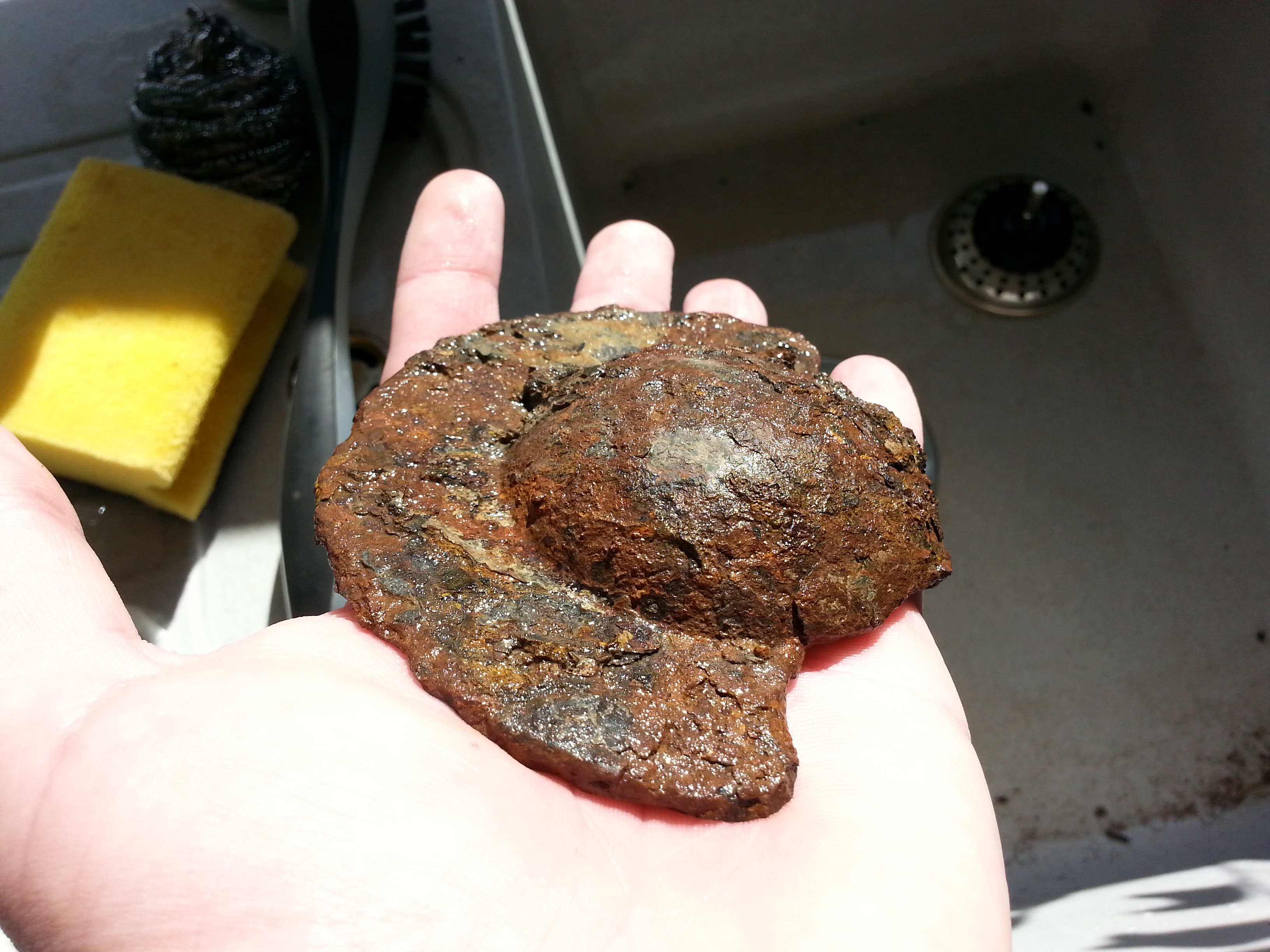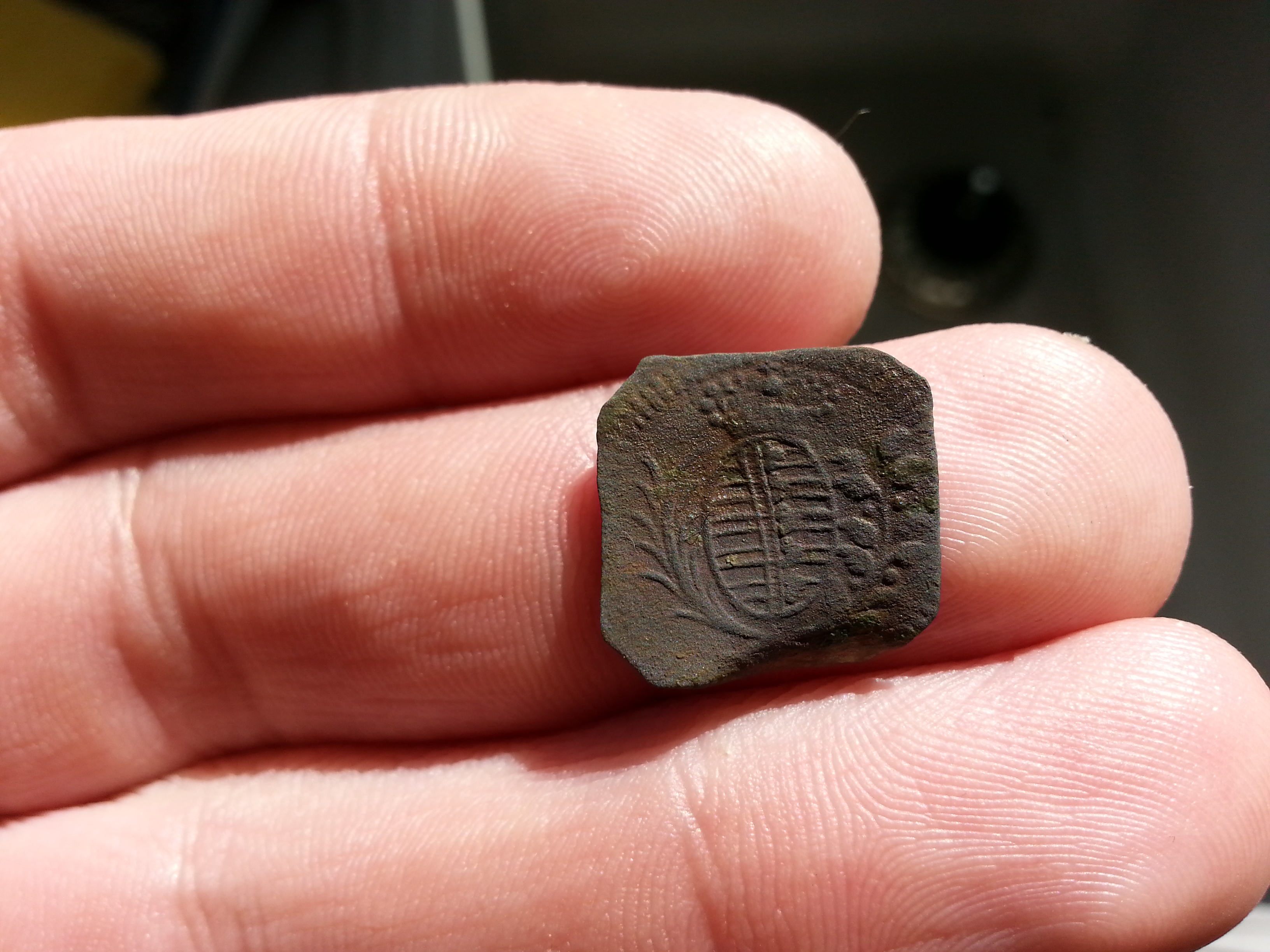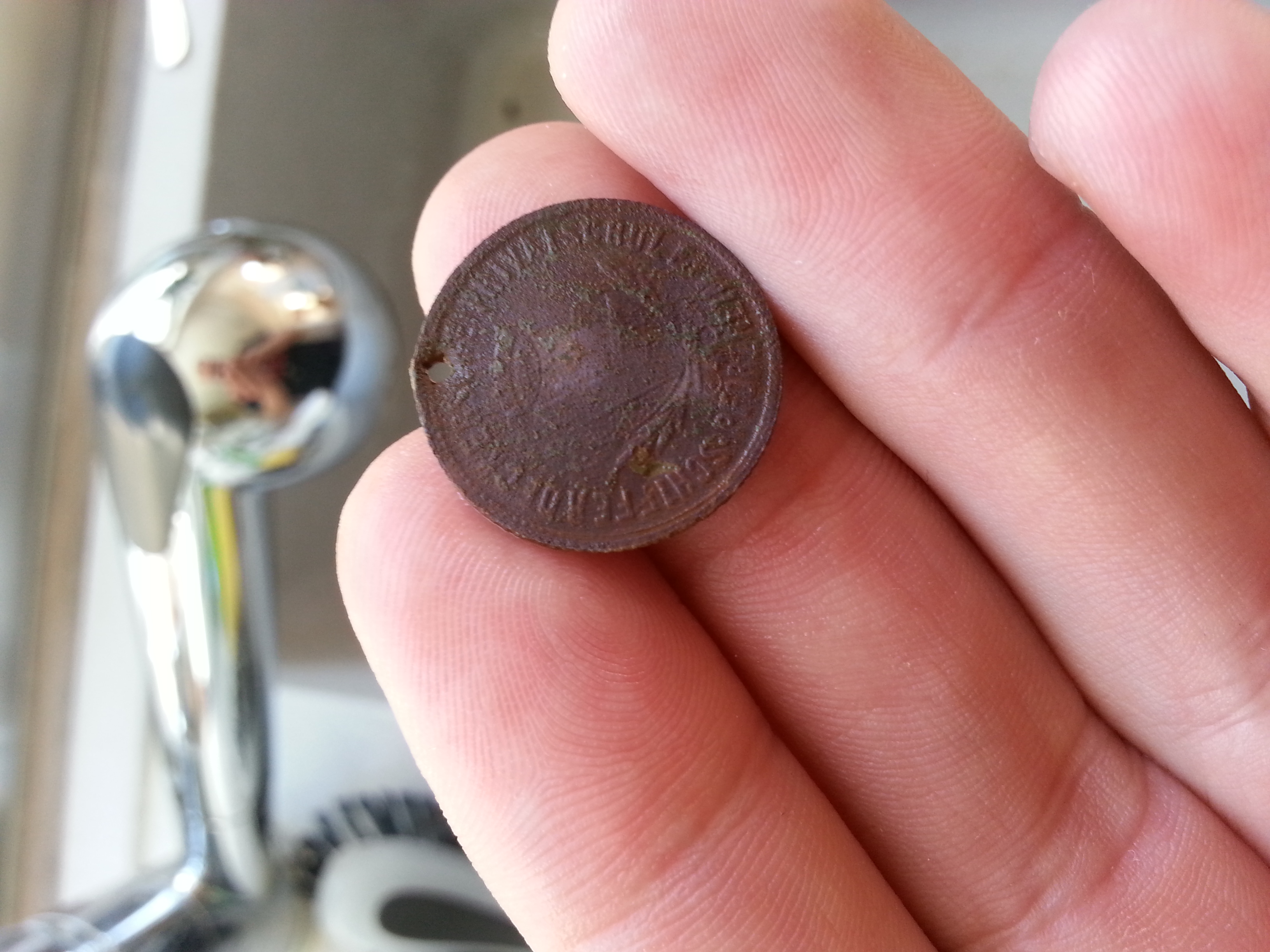 4.) Jezt wirds interessant! Das Teil sieht aus wie ein Kleiner Schild "Schildbuckel". Hinten war im Loch noch ein Steg... Ist mir leider weggebrochen Bzw. der Rost hat sich in Luft aufgelöst :roll: