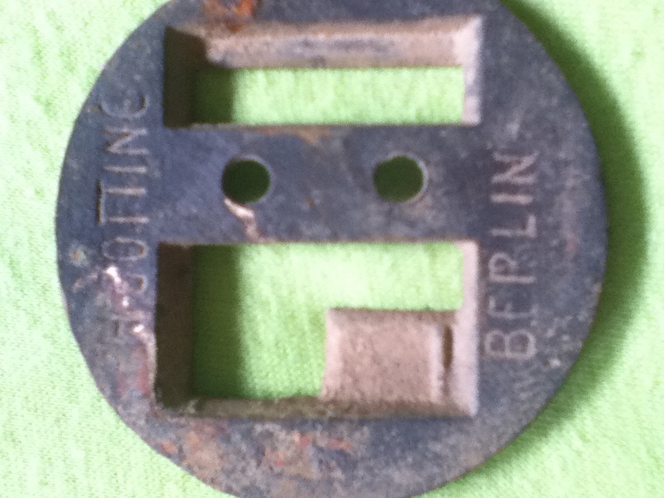 Davineu hat geschrieben:Hi habe dieses Teil gefunden.Auf der einen Seite steht DRP und auf der anderen Berlin und h otting den zweiten Buchstaben kann man nicht lesen diese 1 war da mal reingeklemmt.