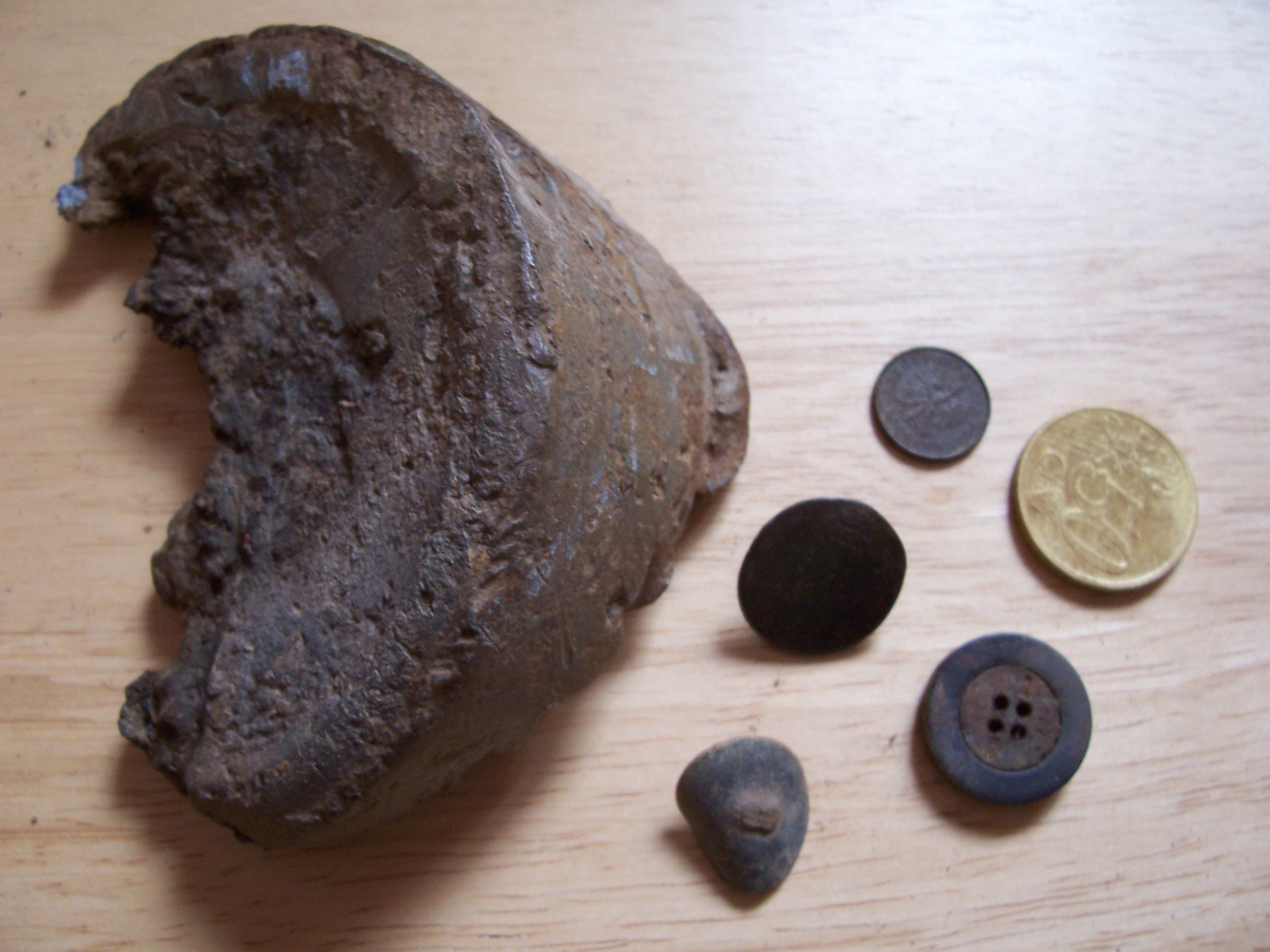 der große klumpen ist 2-300g schwer, sehr weich(blei), warscheinlich wohl rest eines größeren knallkörpers?