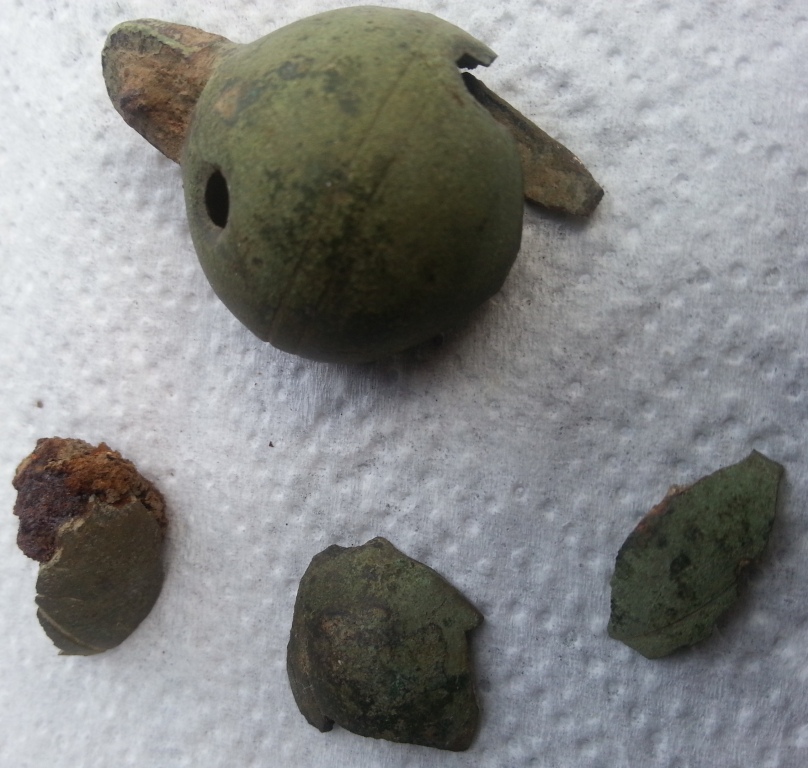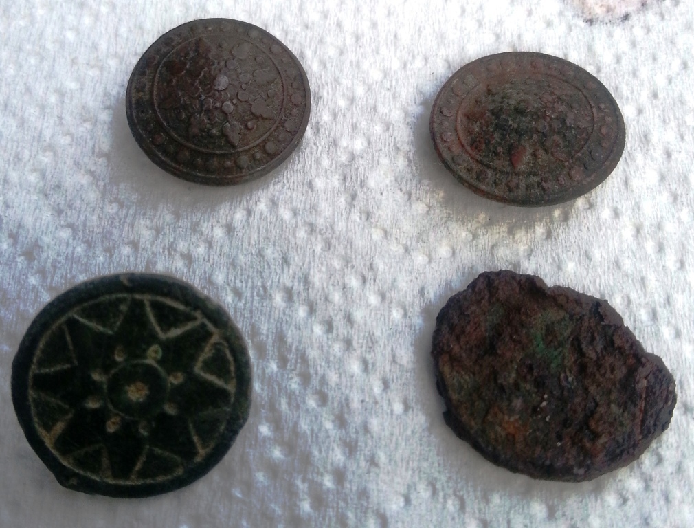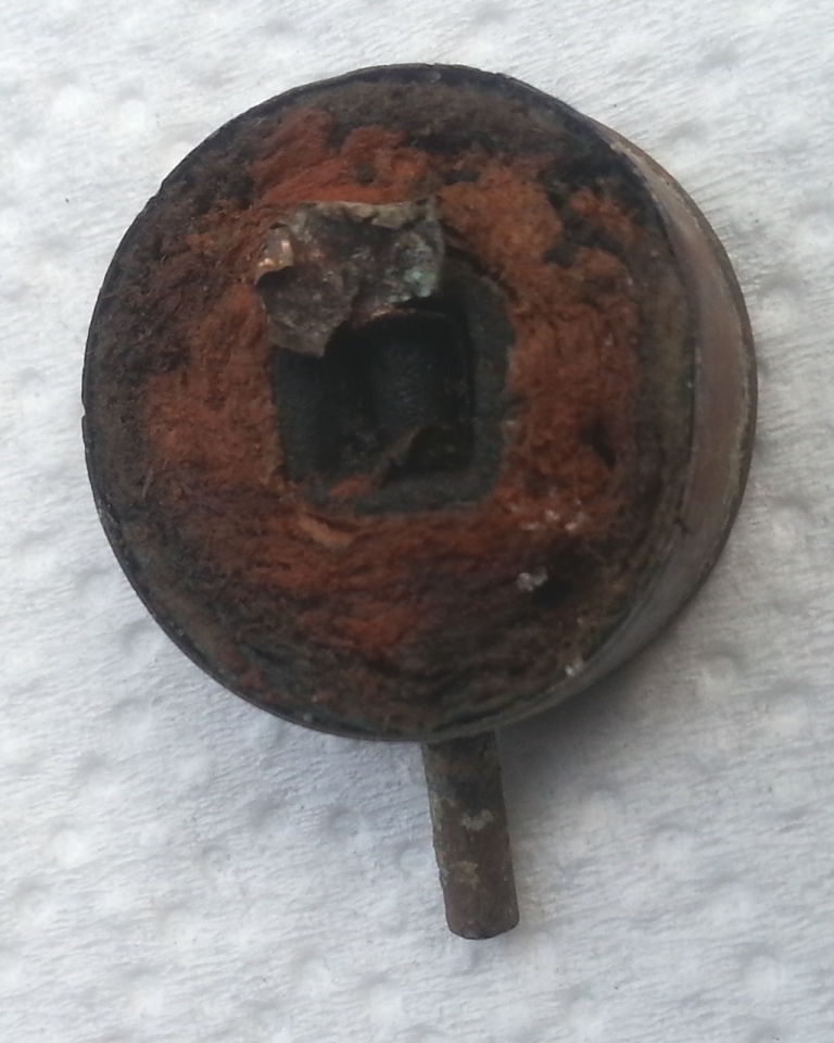 Neben dem Scheibenknopf ist eine Münze aber ist nichts mehr zu erkennen.