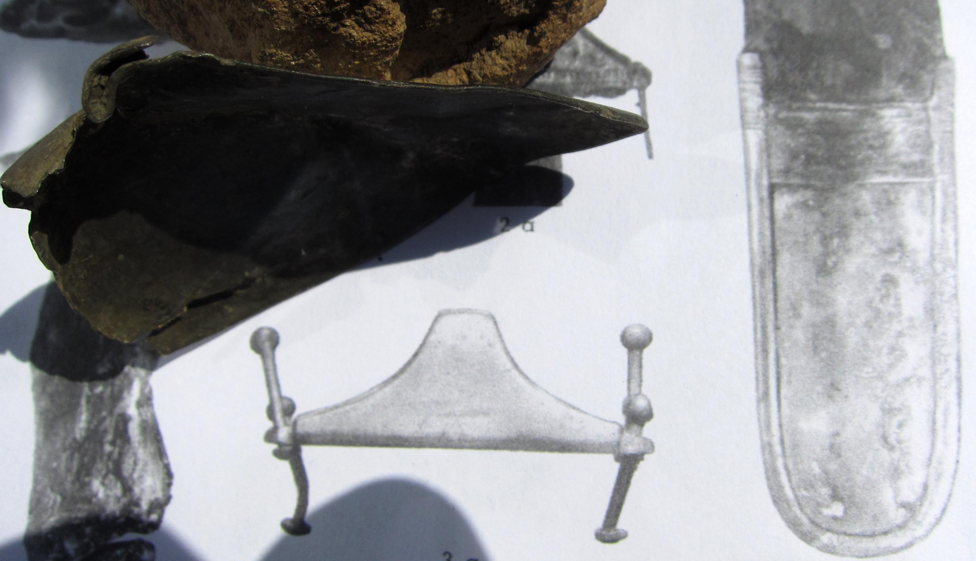 dünne gehämmerte Silberzunge die als Testobjekt im Probebeet offensichtlich unbemerkt verschüttet wurde