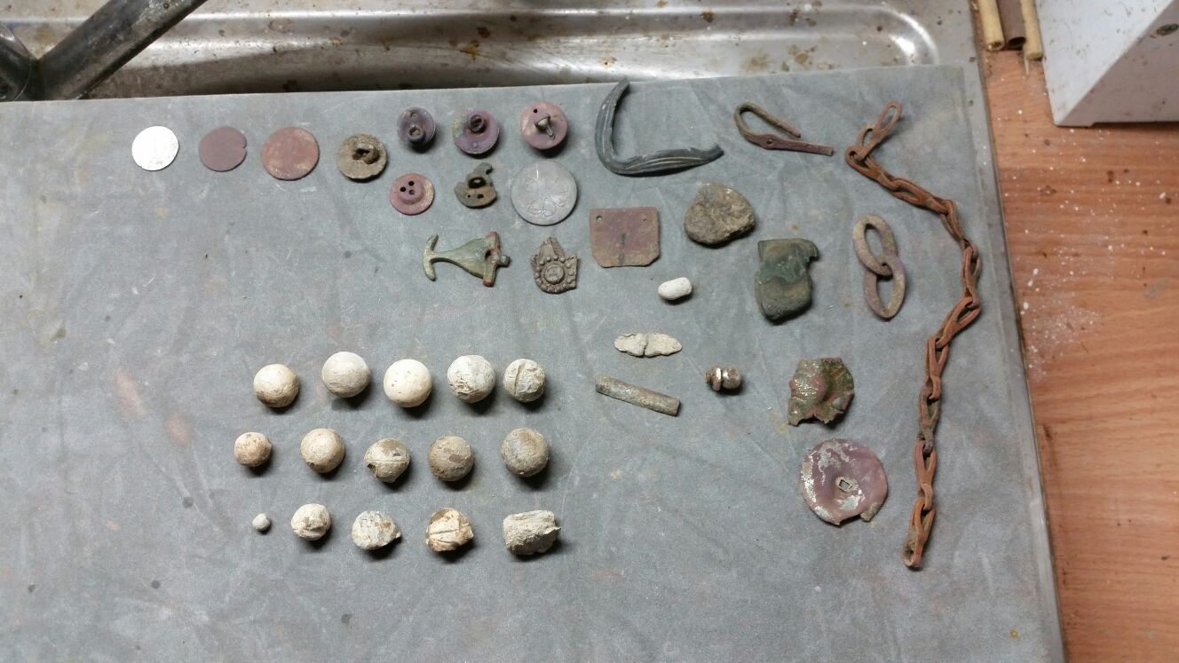 auf Bild 3 bei dem Teil links neben den 2 Kettengliedern kaum zu erkennen ob identifizierbares Fragment von iwas o nur Schrott.........o Bronzeschmelz der auf Stück Schnallenrahmen liegt ...o sonstwas.....