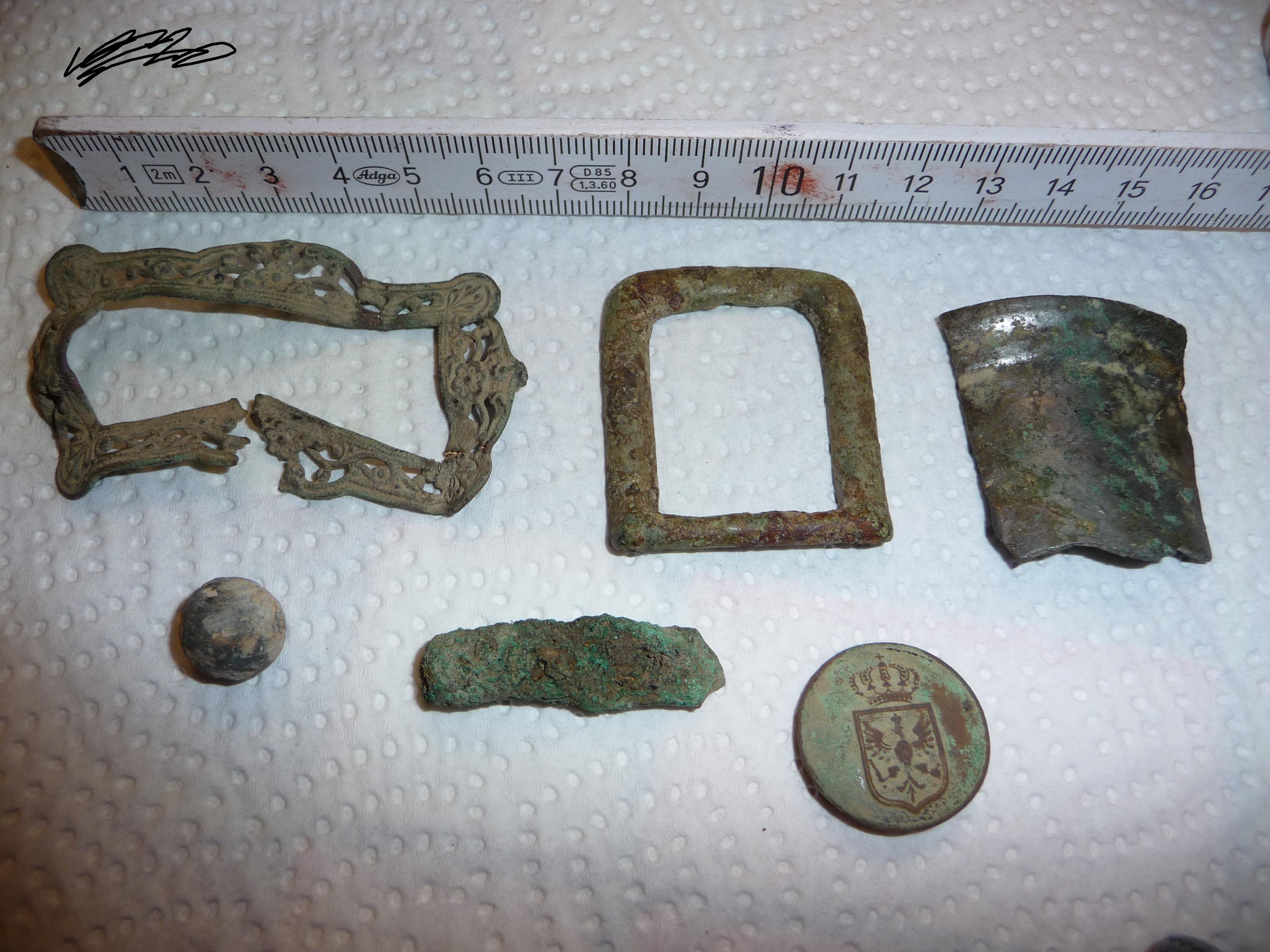 Dann so ein Spitzes Ding. Es ist sehr leicht. Und nen Metallteil. Denke vielleicht von ner Glocke oder Trinkbecher.