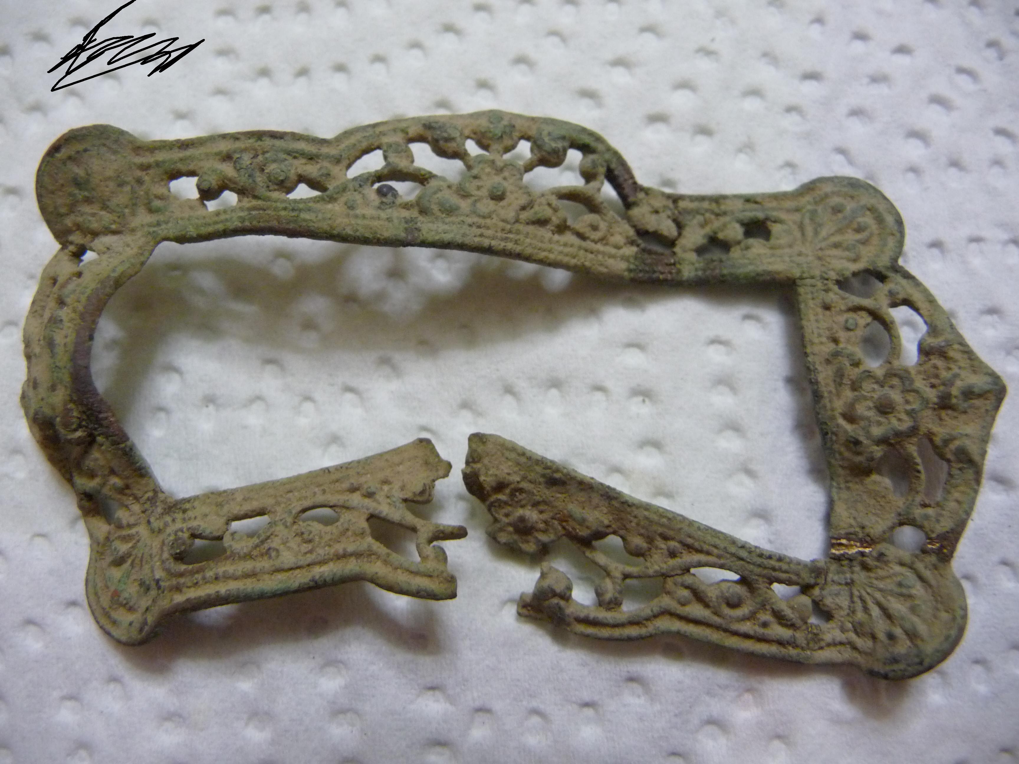 Hab paar komische Teile gefunden.Könnte das eine eine Art Brosche sein??? Sieht bald aus wie nen Namensschild für die Haustür.