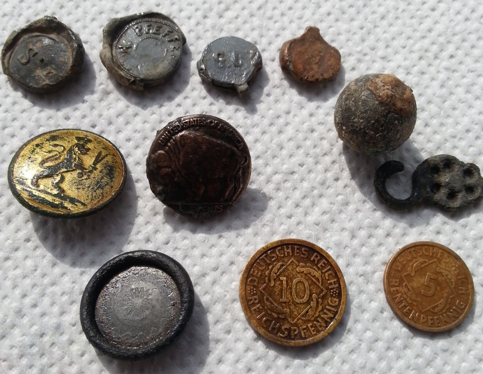 hier meine letzten Knopf und Plombenfunde und ein Miederhaken?