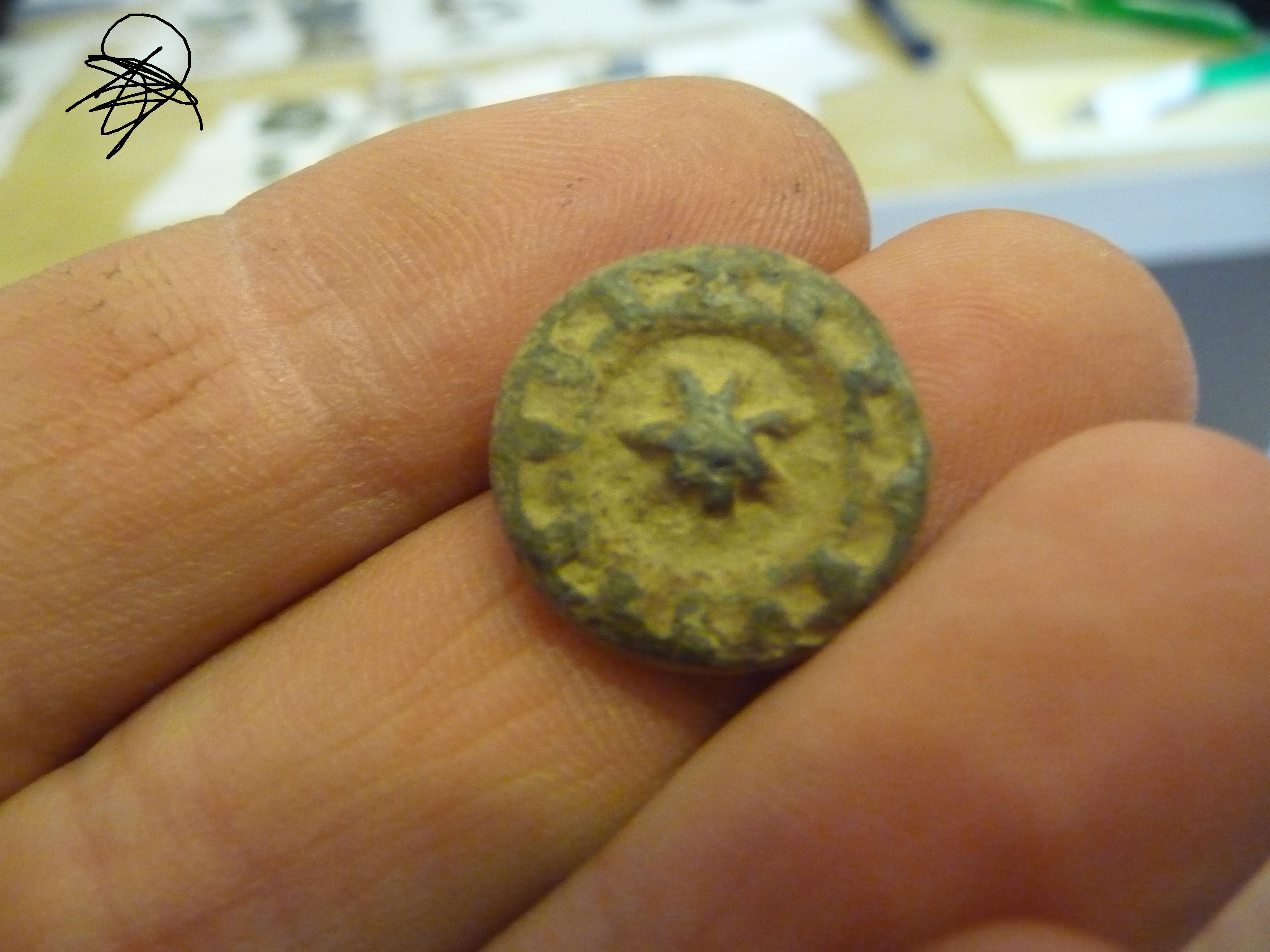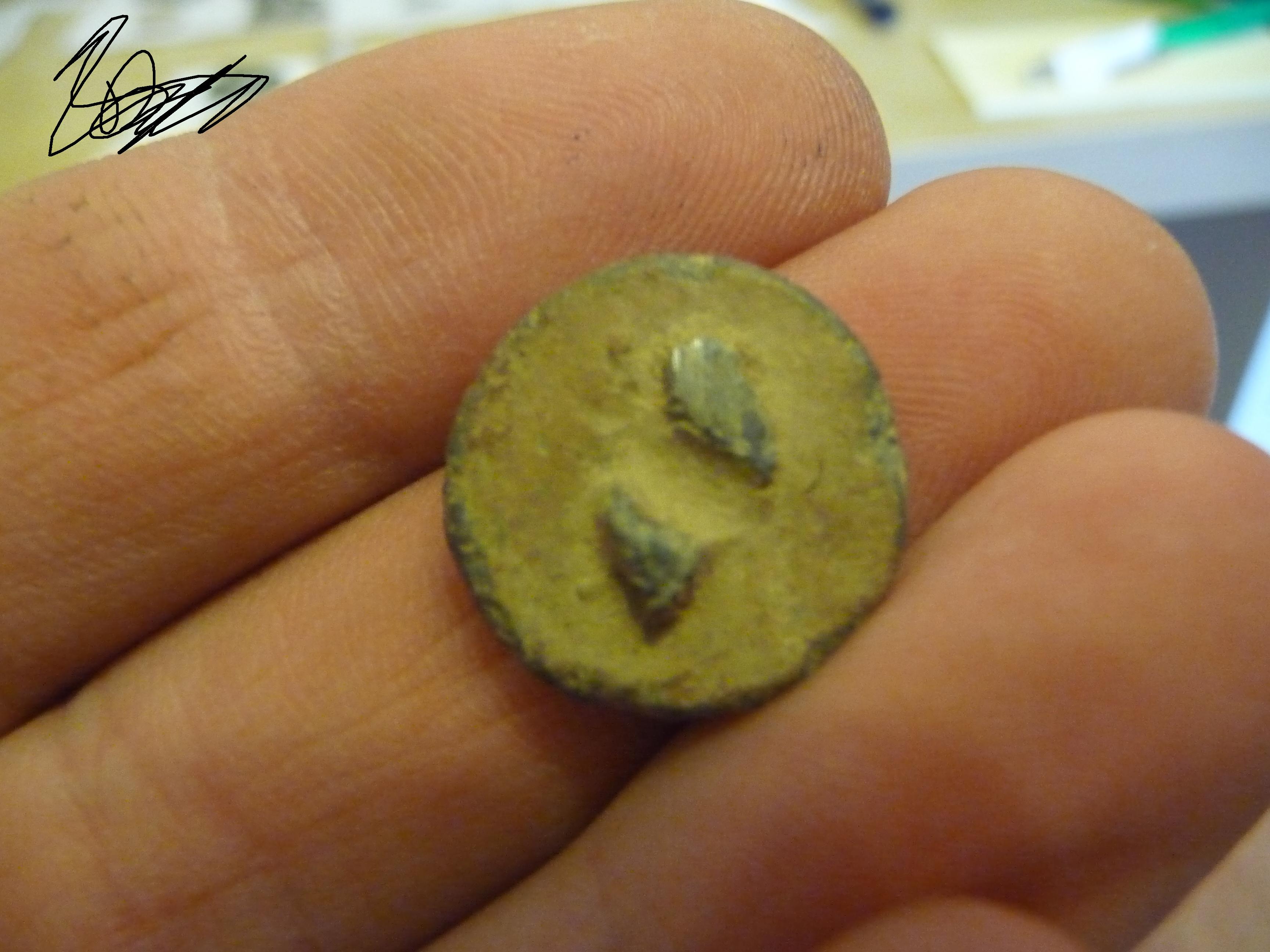 Ein Bleiknopf aus einem Stück gegossen. Von wann könnten die Sachen sein?
