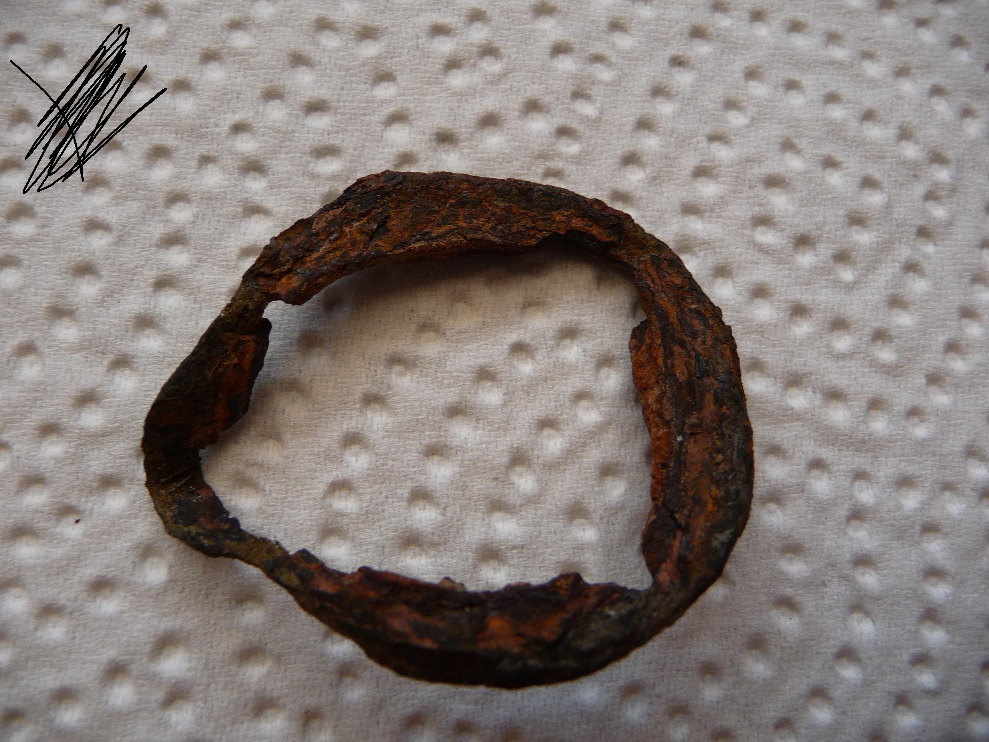 Ist das eine Ding ne Schnalle? Ist bisschen rostig. Andere Schnallen die ich gefunden hatte waren in besseren Zustand. Die scheint ja aus Eisen zu sein.