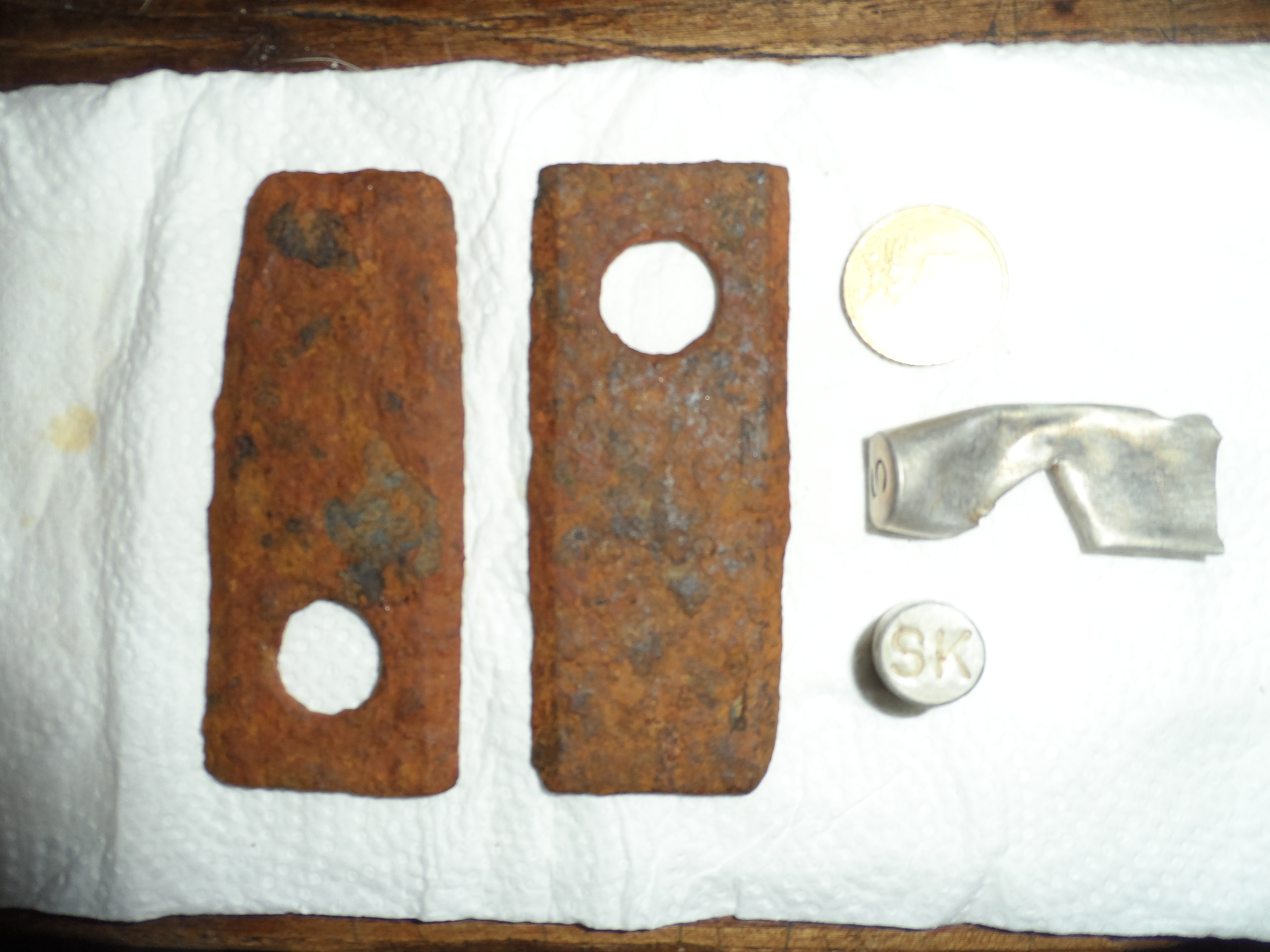 Ich fand diese 2 Metallischen identischen Gegenstände und 2 (evt Patronenhülsen) ?
